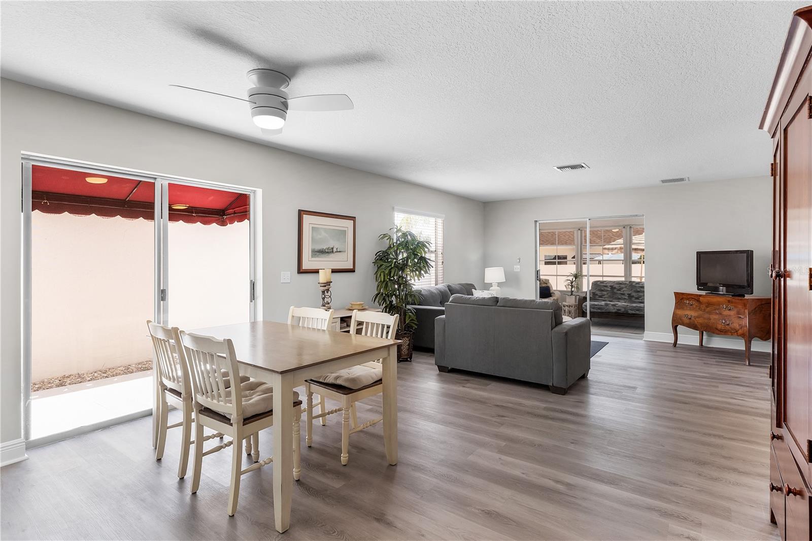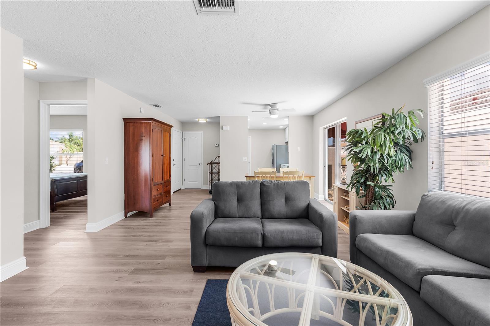 Atualmente sendo usado como AirBnB, trazendo US$ 38.000 por ano. TÍTULO PAGO!!!! Bem-vindo à vila de De La Vista South - Não perca esta oportunidade de possuir uma Villa Courtyard "El Dorado" acessível em uma localização fantástica. Oferecida em regime turnkey, esta vila está situada a menos de 1 1/2 milhas do LAKE SUMTER LANDING e a 1 1/2 milhas da Praça da Cidade de SPANISH SPRINGS, fica a apenas alguns minutos de carro de golfe para desfrutar de entretenimento noturno 365 dias por ano, bem como variedade de ótimos restaurantes e muitas lojas. Esta casa de bloco e estuque foi completamente renovada por comerciantes profissionais em 2024 e será a residência ou propriedade de investimento perfeita a tempo parcial ou a tempo inteiro. O exterior apresenta uma paisagem rígida de baixa manutenção, exterior recentemente pintado, pátio e passarelas. *O amplo pátio é perfeito para ANIMAIS DE ESTIMAÇÃO e entretenimento, com muito espaço para uma PISCINA, PÁSSARO OU ADIÇÃO! Não há nada que precise ser feito nesta linda casa aberta e arejada! Um novo HVAC de 2,5 toneladas (garantia de 10 anos) foi instalado em 2024. Todos os tetos de pipoca foram removidos e a casa recém-pintada, todos os novos ventiladores de teto remotos sem fio, rodapé de 5 1/4 polegadas em toda a casa, todas as portas internas substituídas, novas janelas de varanda e telas, piso de pranchas de vinil de luxo (LVP) por toda parte, cozinha moderna toda branca com armário de despensa, novos armários de madeira com fechamento suave de 42 "de altura com lindas bancadas de quartzo e quartzo espelhado backsplash. Todos os novos eletrodomésticos de aço inoxidável remodelados com combinação de banheira/chuveiro, pia, vaso sanitário e garagem anexa 18x23 recém-pintada. mistura perfeita de tranquilidade e vida comunitária para sua experiência no Villages.