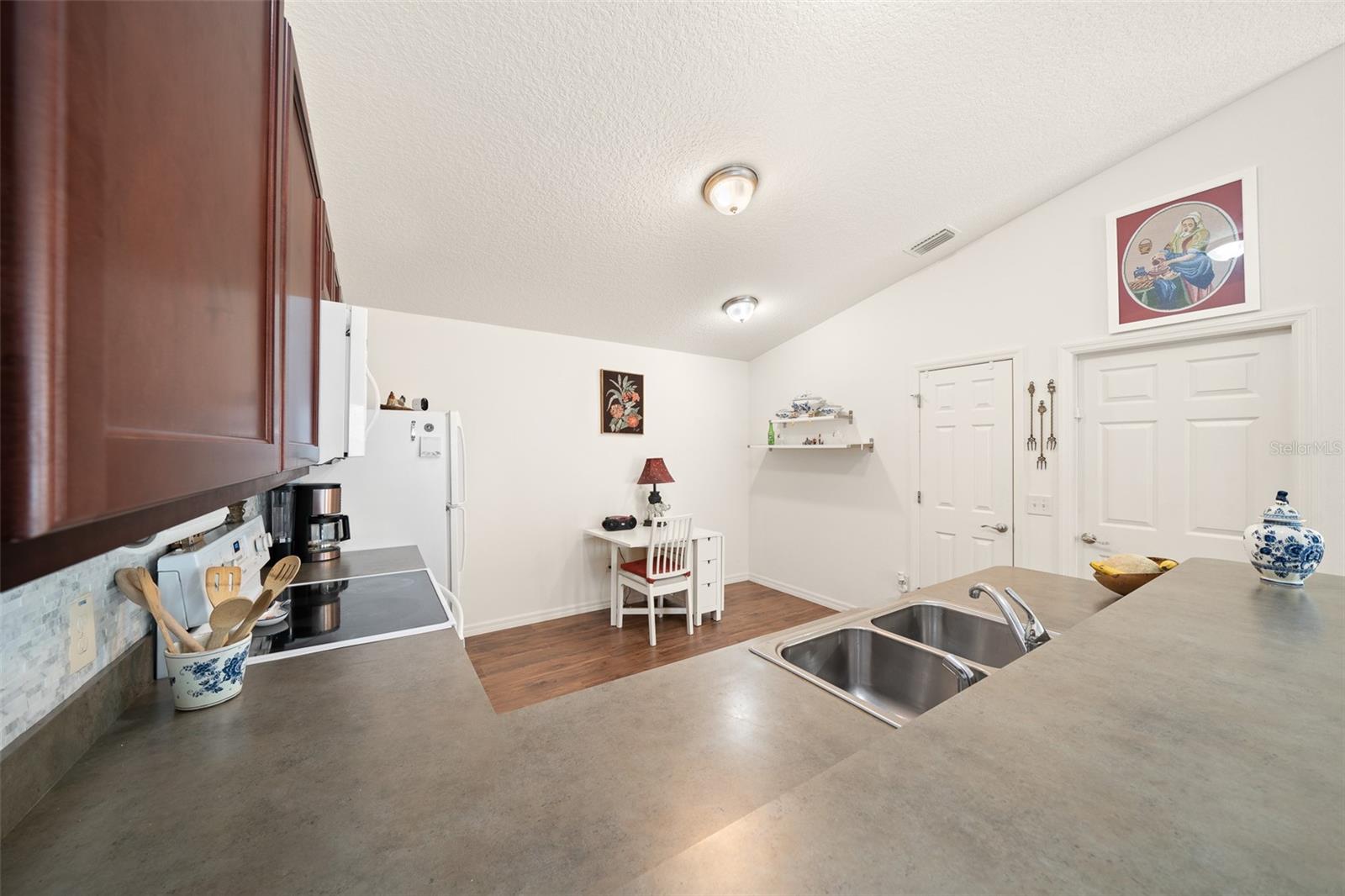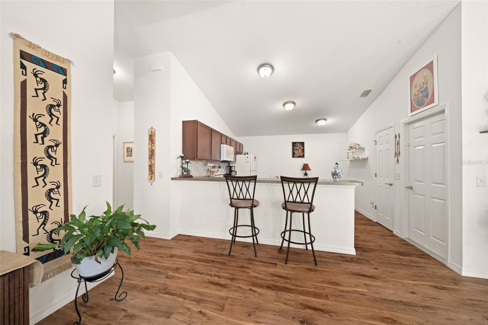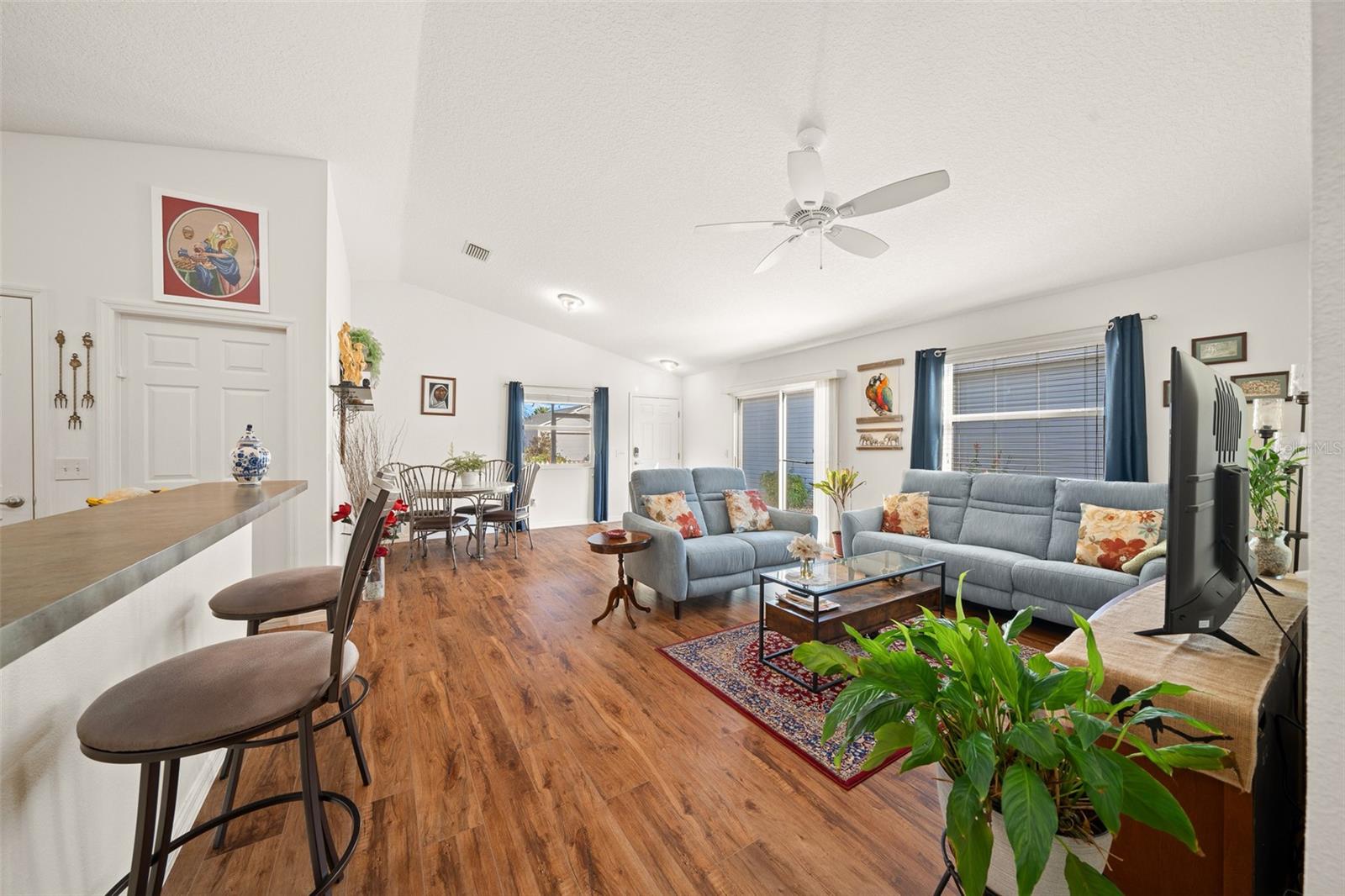 Descubra o charme desta vila meticulosamente mantida, mobiliada e perfeitamente situada perto da piscina do bairro de Dunedin e do Serene Lake Deaton nas aldeias. A partir do momento em que você chegar, você será cativado pelo pátio frontal expandido - um local ideal para se conectar com os vizinhos e absorver o sol da Flórida. Entre, e você será recebido por tetos altos e uma abundância de luz natural, criando uma atmosfera acolhedora e convidativa. A planta baixa aberta é cuidadosamente projetada para facilitar a vida, com a suíte master e os quartos de hóspedes convenientemente escondidos na parte traseira da casa para maior privacidade. Até o piso da garagem foi tratado com habilidade, mostrando a atenção aos detalhes em toda a propriedade. O melhor de tudo é que esta casa está localizada apenas momentos de todas as atividades e comodidades emocionantes que as aldeias têm a oferecer. Não perca a oportunidade de possuir este retiro excepcional em um local privilegiado!