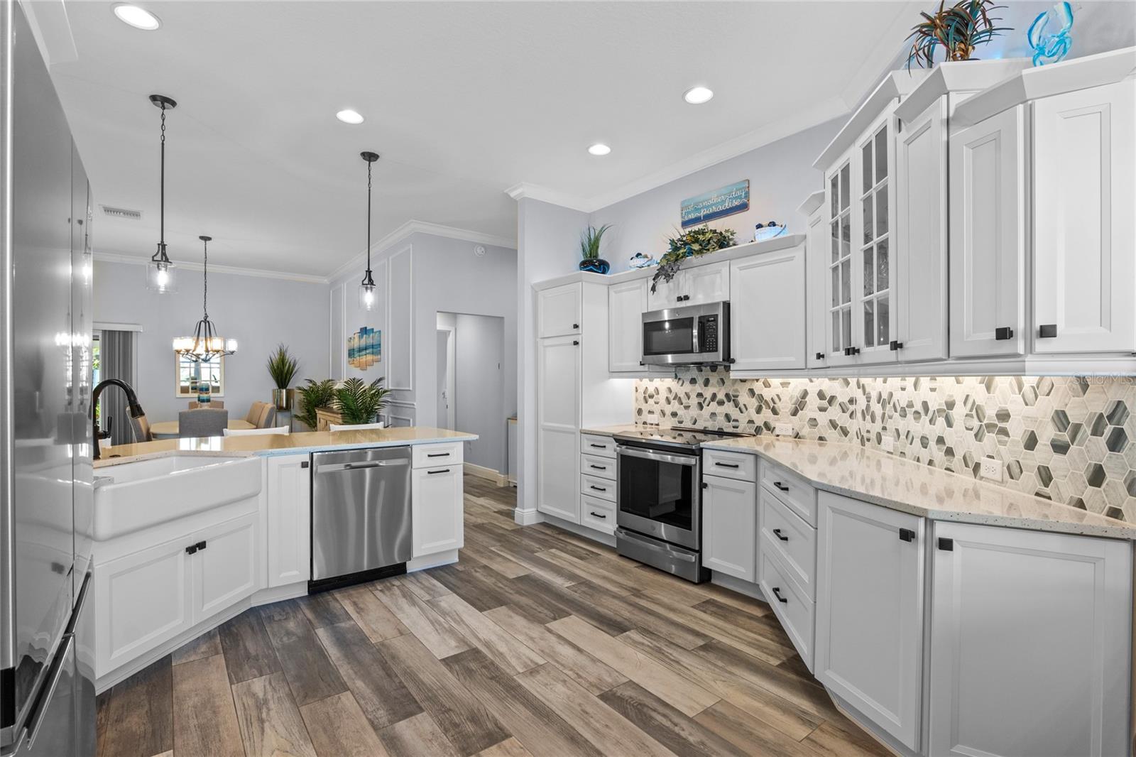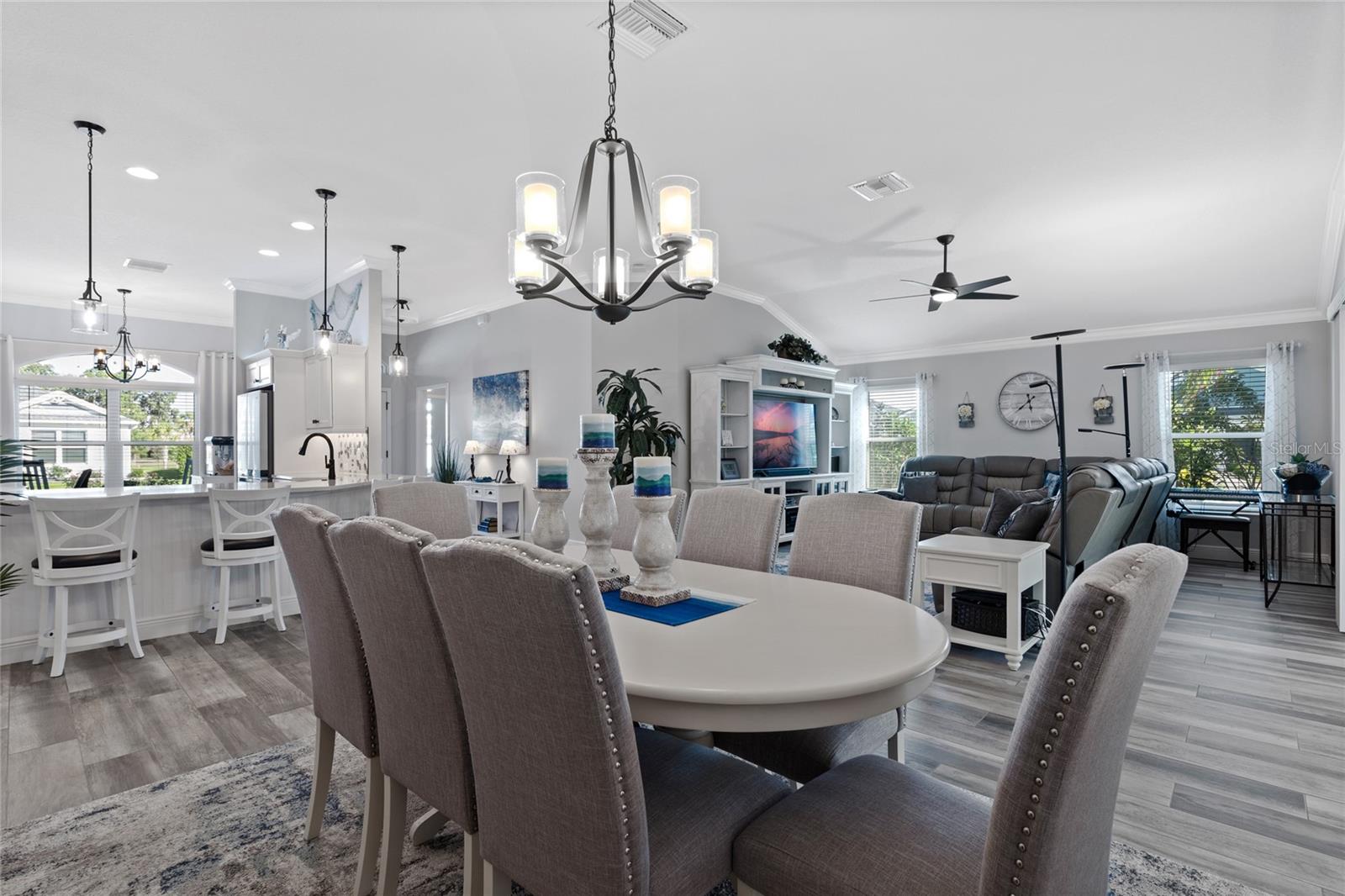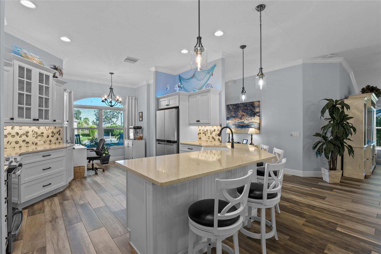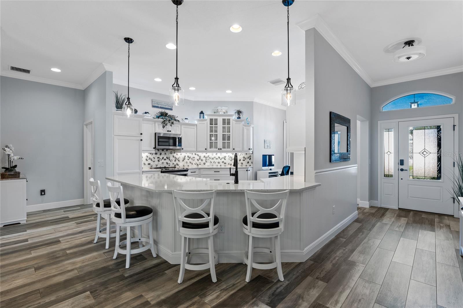 Tour de vídeo disponível! Viva o sonho nas aldeias! Painéis solares possuídos/pagos, garagem de 3 carros de grandes dimensões, escadas majic e elevador para o sótão, lanai fechado com mini-split e espaço para uma piscina são apenas alguns dos recursos exclusivos que esta casa oferece, diferente de qualquer outra na área! Bem-vindo ao seu paraíso praticamente novinho em folha nesta planta da Gardenia, aninhada em um lote de canto em uma das comunidades adultas mais vibrantes e ativas da Flórida. Esta linda casa está transbordando de recursos sofisticados e toques personalizados que elevam a vida cotidiana. Antes mesmo de entrar na casa, você é recebido por uma garagem de grande porte e pintada com um design de ardósia e um círculo de tijolos centrais que causam uma primeira impressão impressionante. No interior, a brilhante ladrilhos de porcelana em forma de madeira corre perfeitamente por toda a casa, oferecendo beleza e baixa manutenção. Tetos crescentes e elegantes salas de molduras da coroa com estilo atemporal. Fora da entrada, você encontrará dois quartos de hóspedes generosamente grandes e um banheiro completo, perfeito para família ou visitantes. O coração da casa possui uma cozinha inspirada no chef com bancadas de quartzo, iluminação sobre e sub-cabinetes, prateleiras deslizantes e utensílios de aço inoxidável de primeira linha, todos incluídos! O layout de conceito aberto flui para a espaçosa sala da Flórida, mostrando portas de vidro deslizantes de pilha dupla com 4 painéis e janelas de imagens amplas com vidro reflexivo, baixo e duplo e temperado. A sala da Flórida é controlada pelo clima com seu próprio sistema de mini-split, oferecendo um retiro durante todo o ano para relaxar ou divertir. Esta casa está repleta de atualizações de primeira linha! Aproveite a conveniência e o charme da iluminação externa permanente da luz com controle remoto, beneficie-se de um protetor de onda de casa inteira, sistema de filtração de água de Pegasus, nova lavadora/secadora de combo com bomba de calor e um aquecedor de água híbrido de 50 galões. O melhor de tudo é que você pode aproveitar o luxo de painéis solares pagos com sua conta de energia elétrica apenas US $ 30 por mês! Um dos recursos de destaque desta propriedade é a garagem de 3 carros ampliada, oferecendo muito espaço para veículos, carrinhos de golfe, armazenamento ou uma oficina. A garagem também inclui escadas majic com remoto e um elevador de sótão com controle remoto para facilitar o acesso, esta garagem combina luxo com conveniência de próximo nível! Esta casa também apresenta elementos de layout atenciosos, como portas de bolso, que criam uma suíte de hóspedes ou sogros particulares e um banho primário com um chuveiro sem vidro e um armário de água separado, além de separar os armários dele e dela. Localizado a poucos minutos de Sawgrass Grove com entretenimento ao vivo, refeições e compras de boutiques, e um curto passeio de carrinho de golfe até o Southern Oaks Championship Golf Course, o Ezell Recreation Center e a nova ponte Bexley para Eastport, esta casa oferece acesso incomparável às melhores comodidades das aldeias. Esta é uma rara oportunidade de possuir uma casa de designer que combina conforto, tecnologia e estilo de vida em uma das comunidades mais procuradas da Flórida. Programe sua exibição particular hoje e comece a viver o estilo de vida de luxo que você merece nas aldeias!