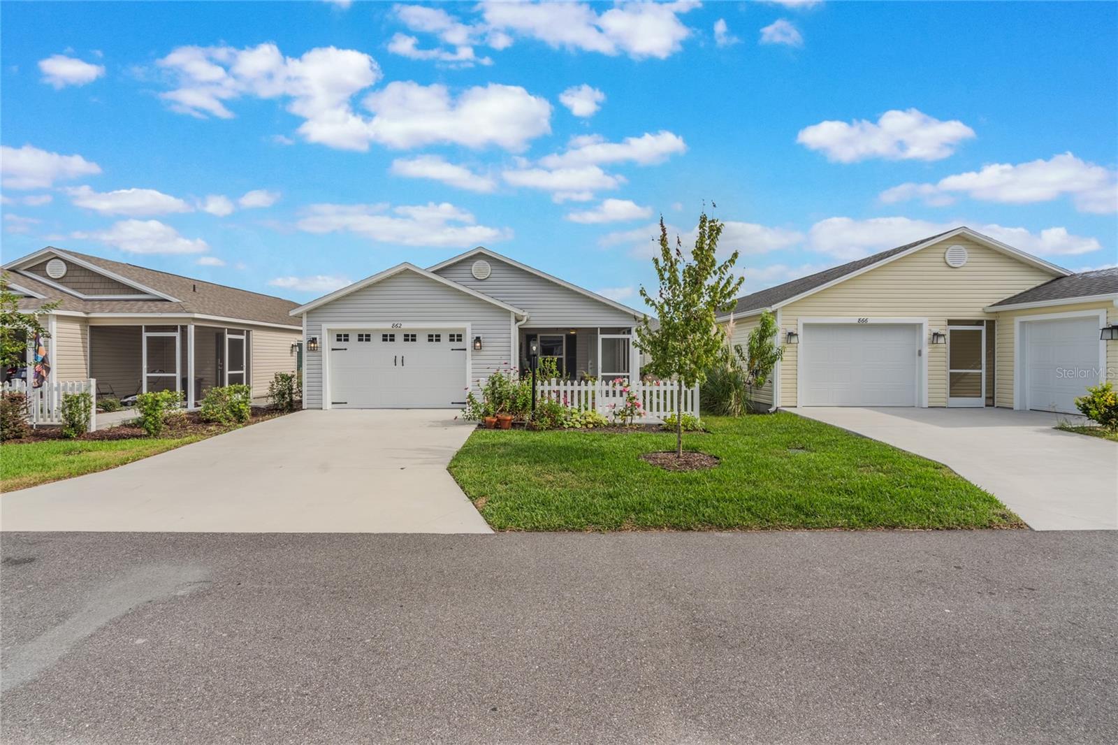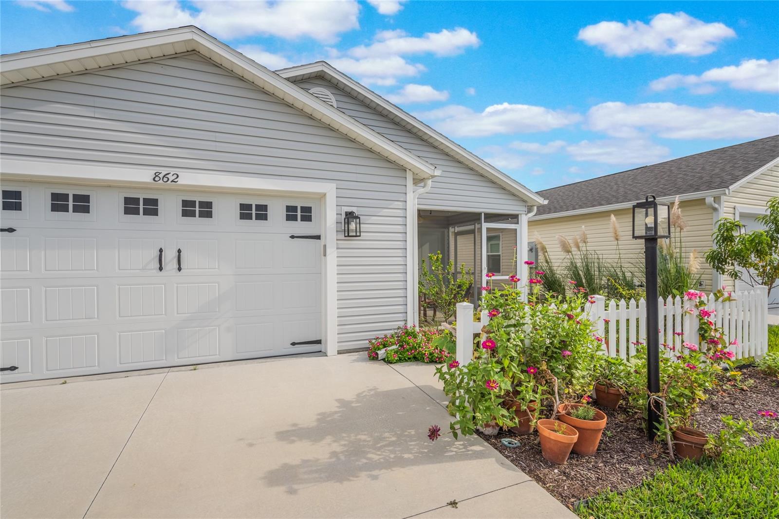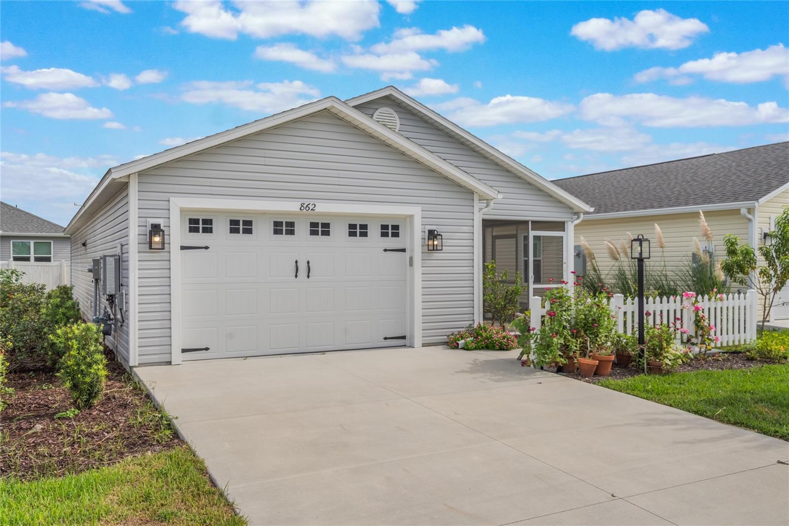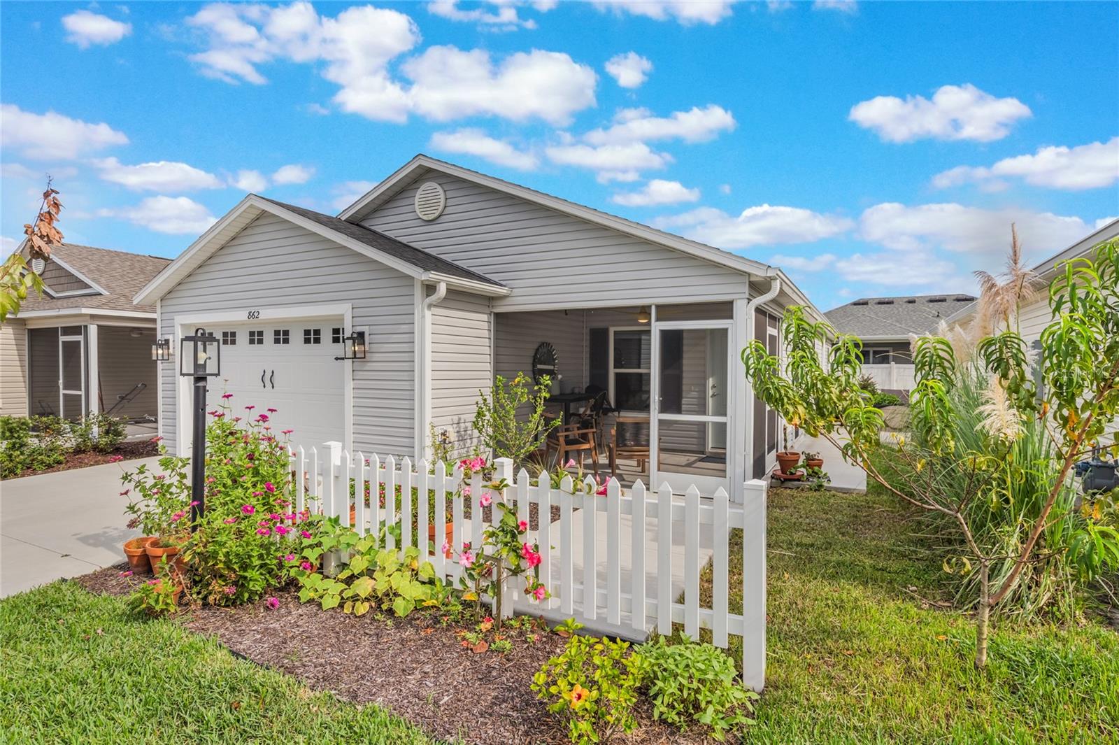 Bem-vindo ao 862 Spring Avenue - uma charmosa villa com pátio de 2 quartos e 2 banheiros, a apenas 5 minutos do novo e emocionante Eastport Center em The Villages. Esta planta baixa procurada oferece o layout de cozinha/jantar mais generoso de qualquer modelo Villages, completo com tetos altos, cozinha a gás e uma cozinha de chef de entretenimento. Você vai adorar a abundância de balcão para preparação de alimentos, uma despensa do chão ao teto e um café e bar de vinhos com portas duplas. A pia de granito preto profundo com torneira em cascata inclui fornecimento de água por osmose reversa, e a máquina de lavar louça possui seu próprio sistema de filtragem para resultados brilhantes e sem manchas. Uma combinação de lavadora / secadora GE topo de linha oferece modos de vapor, alergia e autolimpeza, além de um dispensador de detergente de 56 onças para manter sua lavanderia limpa e arrumada. A suíte principal inclui um closet espaçoso com prateleiras de aço inoxidável de qualidade culinária, espaço extra para armazenamento sazonal e armários sólidos de aço inoxidável. Aproveite a vida na Flórida na varanda mobiliada, completa com uma mesa de madeira de acácia na altura do bar, cadeiras em estilo francês e confortáveis espreguiçadeiras elásticas em torno de uma mesa feita à mão. Ao ar livre, o jardim da frente recém-replantado (julho de 2025) possui um bordo que dá sombra, enquanto o quintal lateral oferece plantadores de ervas para cozinhar da fazenda à mesa. O quintal traseiro parcialmente cercado oferece uma oportunidade perfeita para criar uma corrida de cães para seus familiares de quatro patas. Enquanto a vendedora retorna para sua amada Londres, ela valoriza o layout funcional e luminoso desta casa e o estilo de vida relaxante na cidade natal mais amigável da Flórida - The Villages.
