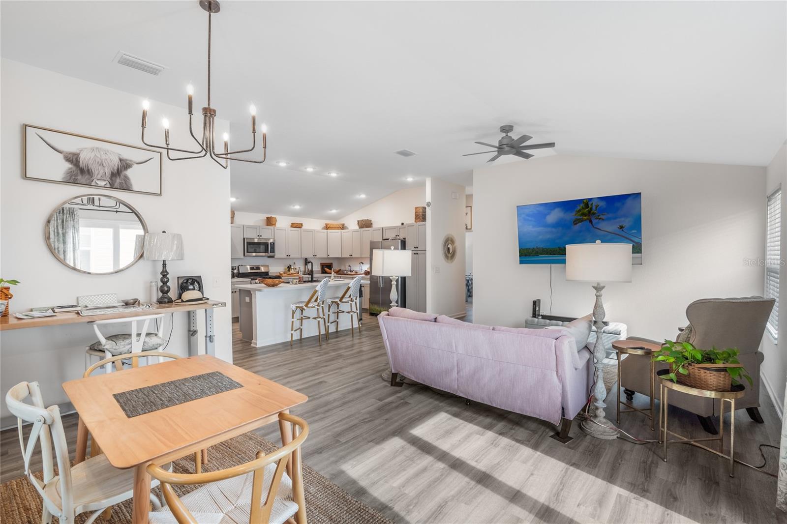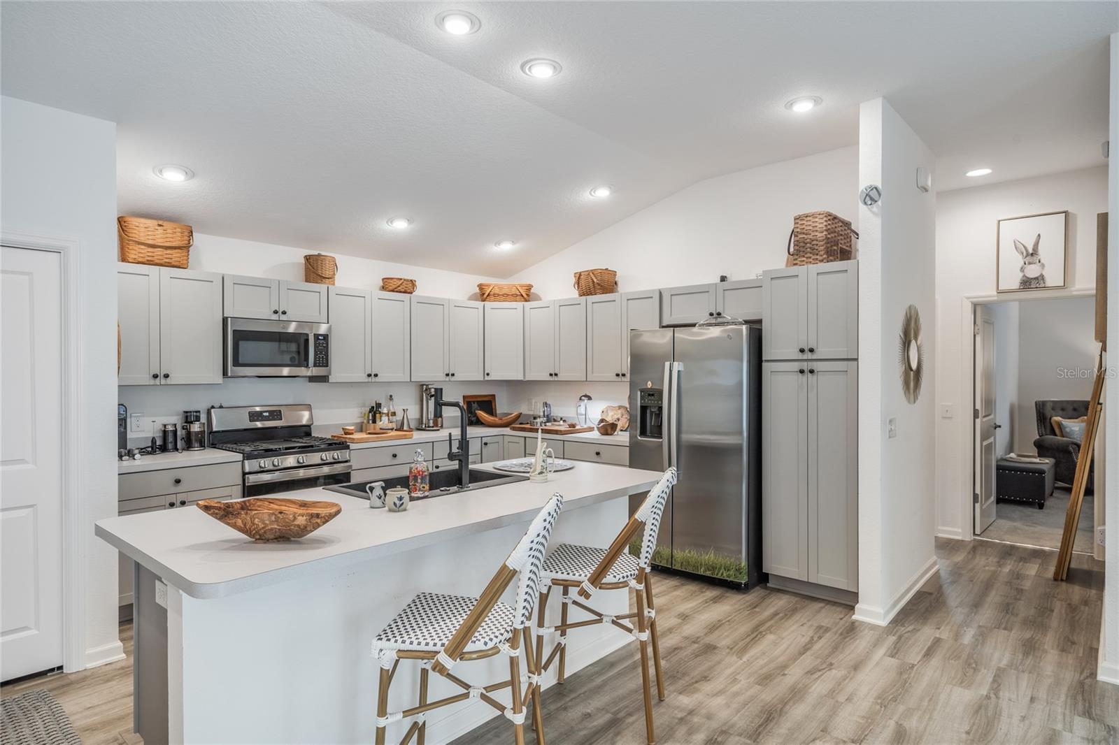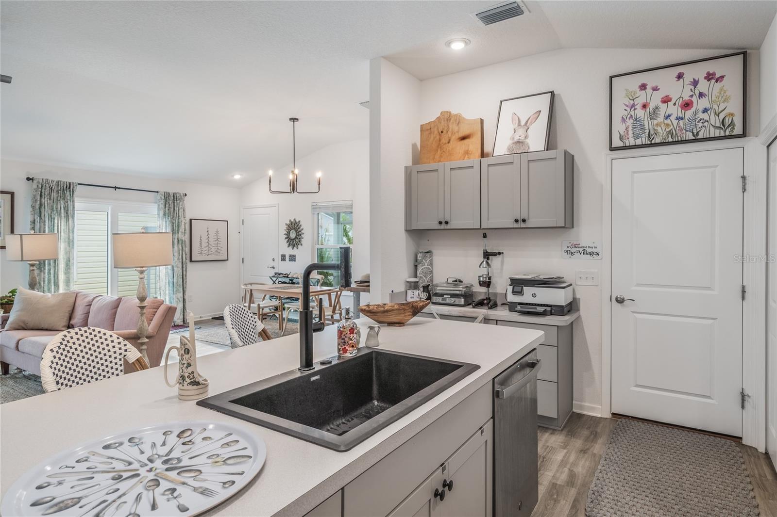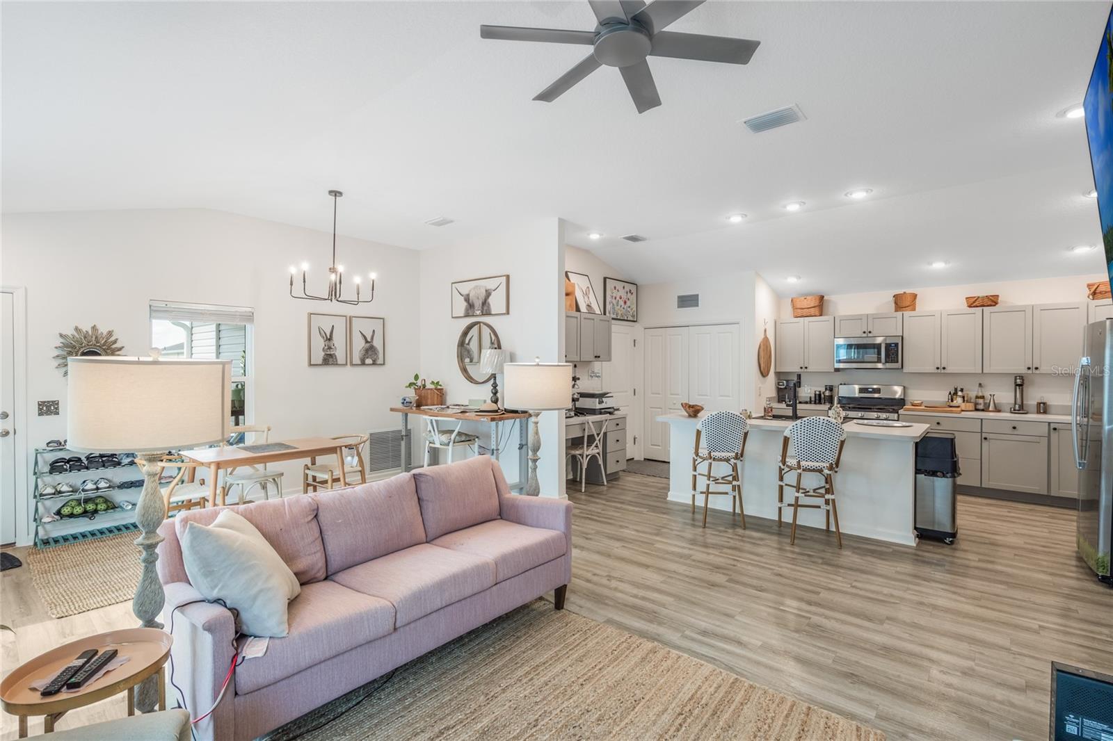 Bem-vindo ao 862 Spring Avenue - uma charmosa villa com pátio de 2 quartos e 2 banheiros, a apenas 5 minutos do novo e emocionante Eastport Center em The Villages. Esta planta baixa procurada oferece o layout de cozinha/jantar mais generoso de qualquer modelo Villages, completo com tetos altos, cozinha a gás e uma cozinha de chef de entretenimento. Você vai adorar a abundância de balcão para preparação de alimentos, uma despensa do chão ao teto e um café e bar de vinhos com portas duplas. A pia de granito preto profundo com torneira em cascata inclui fornecimento de água por osmose reversa, e a máquina de lavar louça possui seu próprio sistema de filtragem para resultados brilhantes e sem manchas. Uma combinação de lavadora / secadora GE topo de linha oferece modos de vapor, alergia e autolimpeza, além de um dispensador de detergente de 56 onças para manter sua lavanderia limpa e arrumada. A suíte principal inclui um closet espaçoso com prateleiras de aço inoxidável de qualidade culinária, espaço extra para armazenamento sazonal e armários sólidos de aço inoxidável. Aproveite a vida na Flórida na varanda mobiliada, completa com uma mesa de madeira de acácia na altura do bar, cadeiras em estilo francês e confortáveis espreguiçadeiras elásticas em torno de uma mesa feita à mão. Ao ar livre, o jardim da frente recém-replantado (julho de 2025) possui um bordo que dá sombra, enquanto o quintal lateral oferece plantadores de ervas para cozinhar da fazenda à mesa. O quintal traseiro parcialmente cercado oferece uma oportunidade perfeita para criar uma corrida de cães para seus familiares de quatro patas. Enquanto a vendedora retorna para sua amada Londres, ela valoriza o layout funcional e luminoso desta casa e o estilo de vida relaxante na cidade natal mais amigável da Flórida - The Villages.