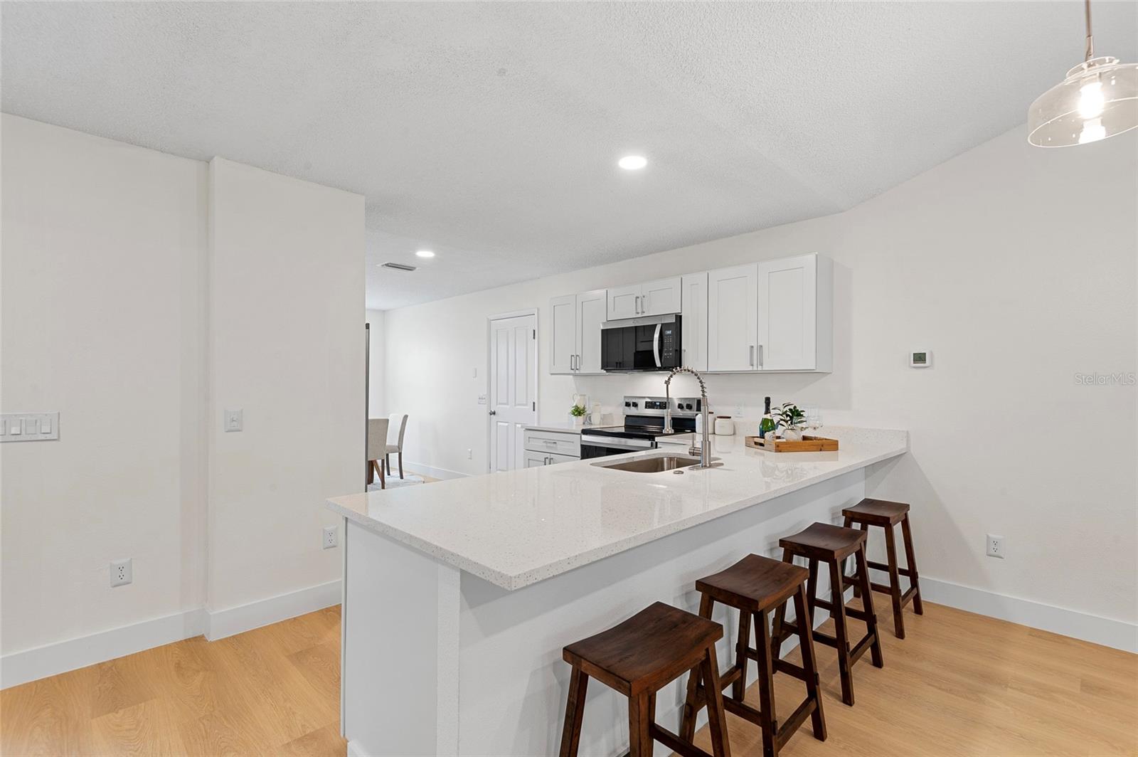 Desfrute de tranquilidade e conforto moderno nesta casa unifamiliar lindamente renovada com 3 quartos e 2 banheiros, projetada pensando na vida fácil. Cada detalhe foi atualizado – desde o novo piso LVP à prova d'água até as novas luminárias por dentro e por fora. A cozinha aberta e bem iluminada apresenta armários totalmente novos, bancadas de quartzo e acessórios atualizados, tornando a culinária e o entretenimento um prazer. Ambos os banheiros foram completamente remodelados com box amplo, azulejos novos e penteadeiras elegantes para fácil acessibilidade e conforto. Relaxe na grande varanda dos fundos ou passe algum tempo na espaçosa garagem para 2 carros com espaço extra para armazenamento. Localizada em uma comunidade tranquila com mais de 55 anos, esta casa pronta para morar oferece uma combinação perfeita de atualizações modernas e vida de baixa manutenção - ideal para quem procura um estilo de vida seguro, acolhedor e sem preocupações.