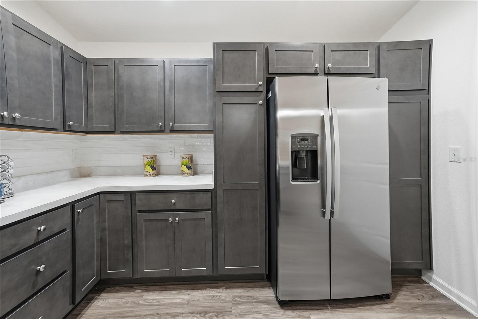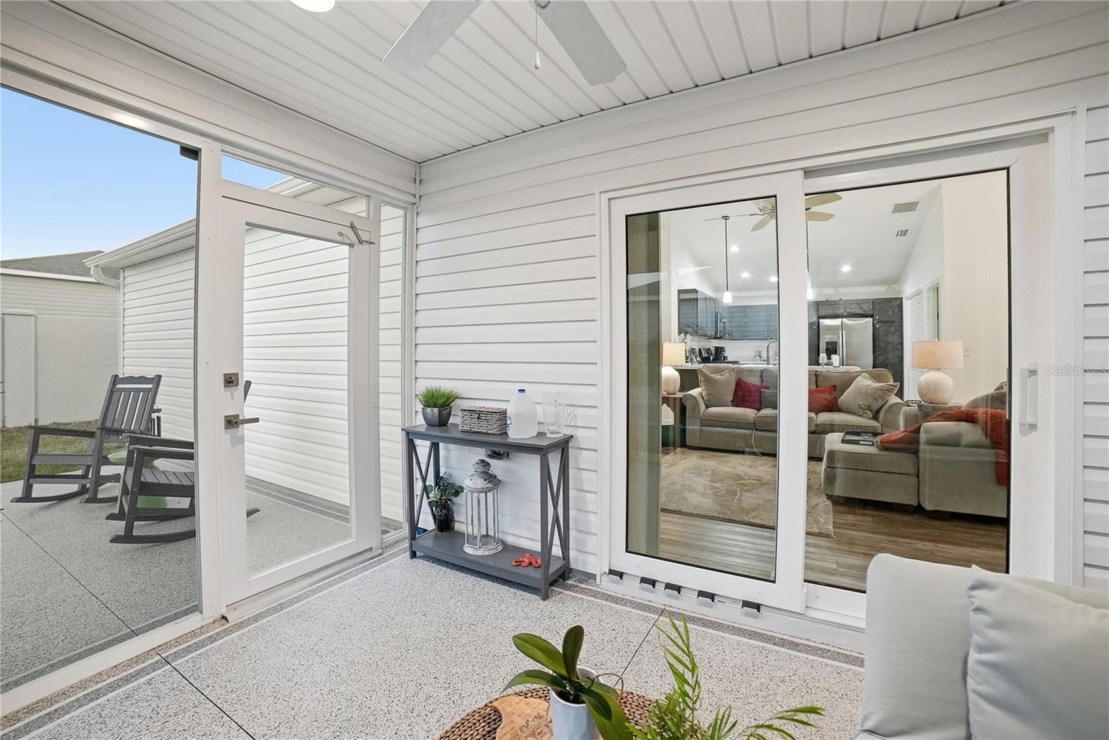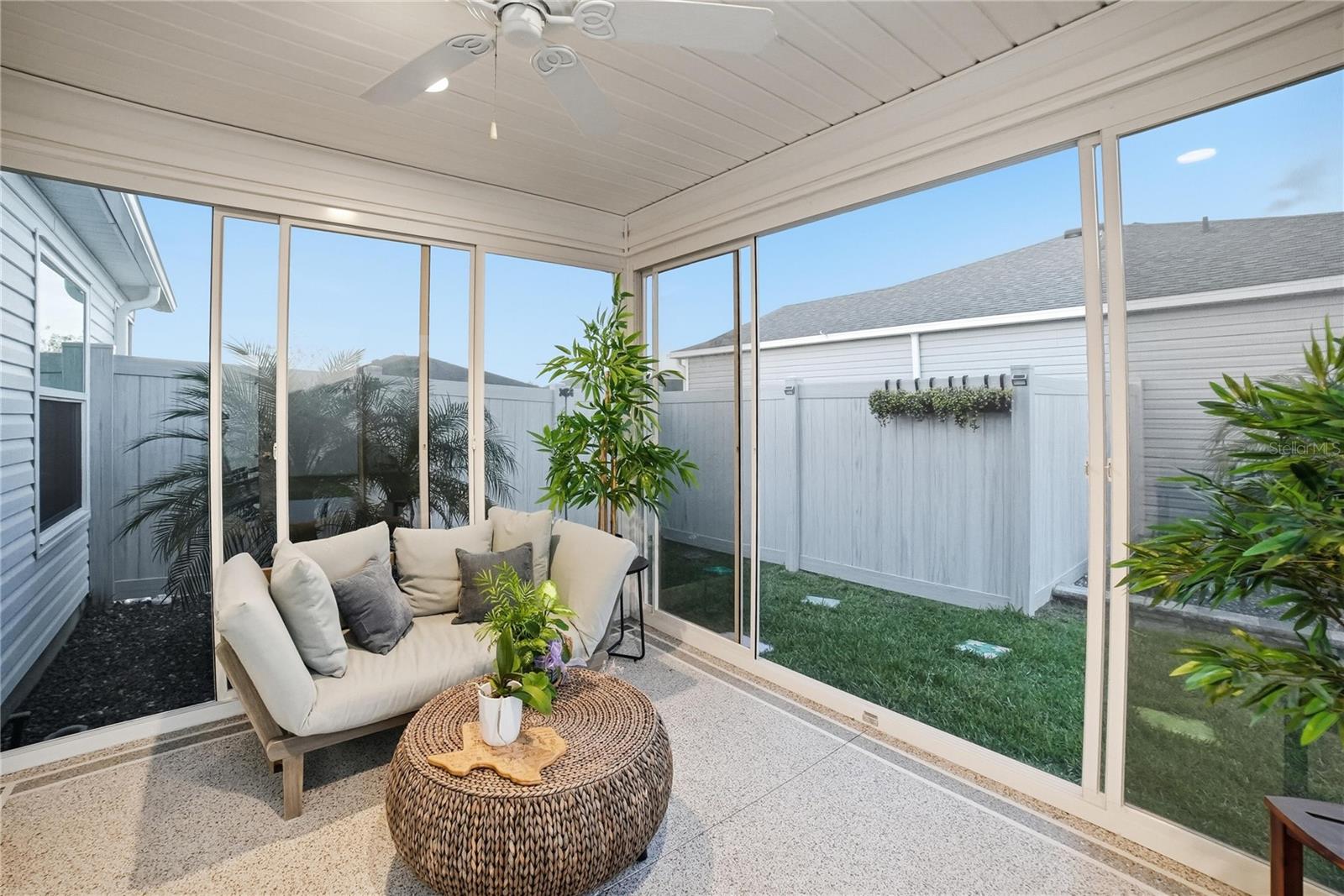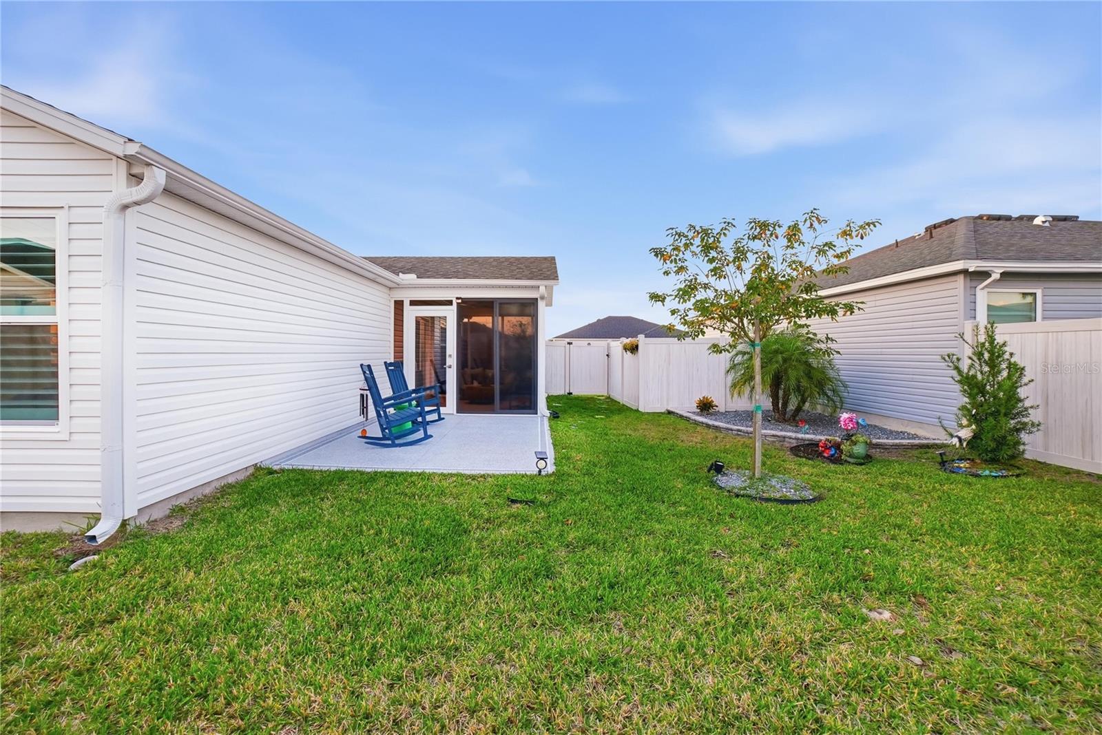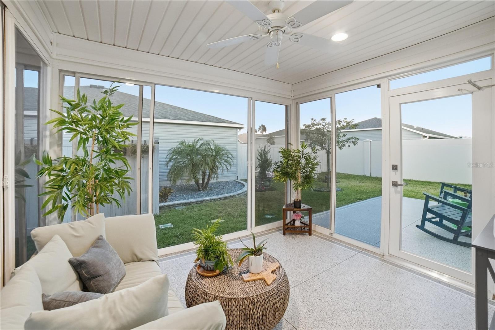 Uma ou mais fotos foram virtualmente encenadas. Esta é uma bela casa perto de Sawgrass Square em The Villages, quintal cercado, paisagismo rochoso, varanda fechada de vidro no quintal, 1 carro, + espaço para carrinho de golfe, tubos solares no banheiro, calhas, filtro de água, persianas, backsplash de cozinha, varanda frontal com tela. Algumas fotos foram renderizadas virtualmente.