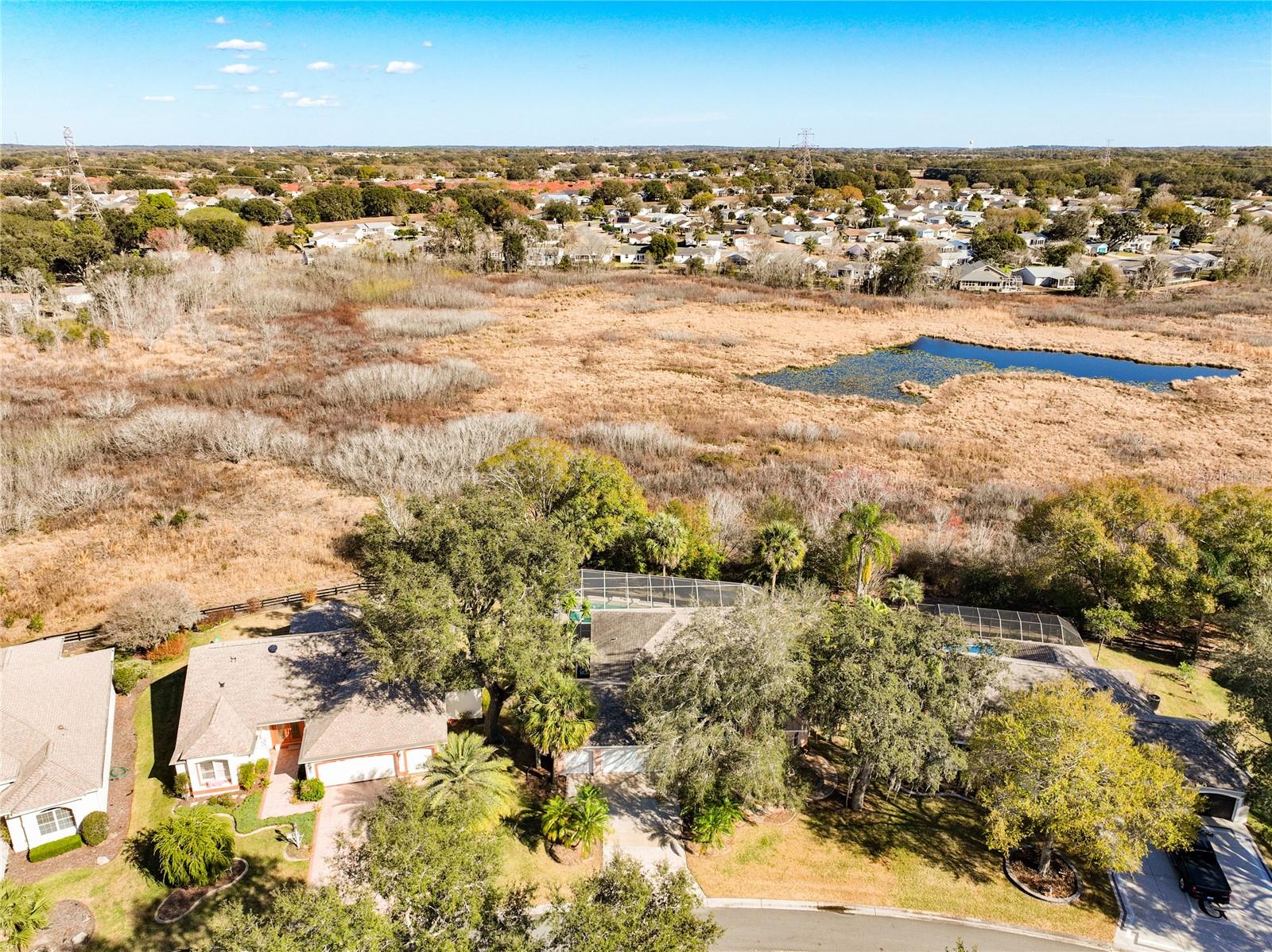 Bem-vindo a esta casa com piscina de 3 quartos e 2 banheiros lindamente situada no coração de The Villages, perfeitamente posicionada entre a Praça da Cidade de Spanish Springs e a Praça do Mercado Lake Sumter Landing. Situada em uma tranquila reserva de vida selvagem, esta casa modelo VERA CRUZ oferece privacidade, vistas panorâmicas e a oportunidade de desfrutar da vida selvagem local - tudo isso perto de inúmeras lojas, restaurantes e entretenimento. O renomado estilo de vida do carrinho de golfe dos Villages torna a locomoção fácil e divertida, e o BOND IS PAID, agregando um valor tremendo. Ao chegar, você é recebido por uma charmosa varanda frontal e um paisagismo maduro e bem cuidado, completo com toranjas e duas laranjeiras. A garagem de grandes dimensões acomoda confortavelmente dois carros, mais um carrinho de golfe e inclui uma tomada para RV de 50 A. Atualizações recentes acrescentam tranquilidade, incluindo uma nova porta de garagem, abridor, controles remotos e teclado substituídos em 2026, junto com uma nova bomba de piscina substituída em 2026. O aquecedor de água quente foi substituído em 2021. No interior, a espaçosa cozinha é um destaque, oferecendo armários abundantes, balcão generoso, um bar conveniente, uma área de mesa para sentar e uma área de refeições ensolarada destacada por uma janela saliente. As áreas de estar e jantar abertas são completas com sancas e são ideais para entretenimento, com portas de vidro deslizantes que levam diretamente à piscina protegida e à área de estar ao ar livre. Um bar de canto integrado acrescenta o toque perfeito para receber convidados e servir suas bebidas favoritas. A planta dos quartos divididos oferece privacidade, com quartos secundários separados da suíte principal. O quarto principal possui dois armários e um banheiro privativo com pia dupla, ampla iluminação, uma área de estar dedicada para se preparar e um banheiro e chuveiro separados. Saia para o seu retiro privado, com uma varanda coberta de 11' x 13' além de um espaço adicional de pátio com tela de 18' x 23' que atualmente tem uma cabana. É o local perfeito para relaxar, começar ou terminar o dia ou se divertir enquanto desfruta do amplo espaço verde. Esta casa está convenientemente localizada perto de vários centros recreativos, áreas de piscina em estilo resort, campos de golfe, pickleball e uma infinidade de lojas, restaurantes, vida noturna e entretenimento ao vivo, bem como do quiosque postal. As conveniências próximas também incluem bancos, consultórios médicos e o Hospital Regional The Villages, com fácil acesso à CR 446 e à US Hwy 27/441 para viagens fora da comunidade. Oferecendo privacidade, atualizações atenciosas e um estilo de vida imbatível, esta casa realmente tem tudo. Agende sua exibição hoje e personalize o estilo de vida do Village - este não durará muito!
