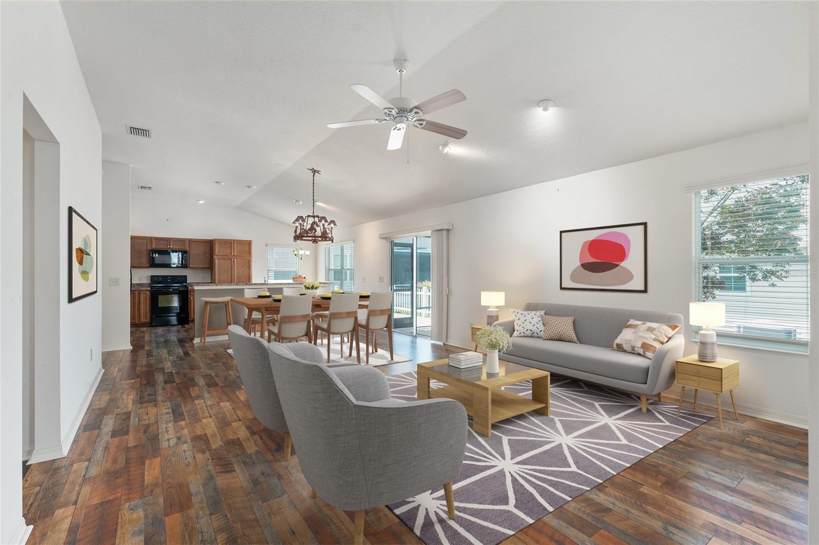 Uma ou mais fotos foram praticamente encenadas. O charme está nesta bela casa de campo à facilidade de modelo III, localizada na vila de Pine Ridge. Você notará o paisagismo aprimorado e a entrada de automóveis pintada, definindo o tom para o resto deste lar incrível. Ao entrar, seus olhos são imediatamente atraídos para os tetos abobadados que criam uma atmosfera aberta e espaçosa por toda parte. O piso de prancha laminado flui perfeitamente pela área de estar principal, complementada por ventiladores e luzes atualizados que adicionam um toque de calor. A cozinha é o sonho de qualquer chef, com seus aparelhos de hidromassagem, armários amplos, despensa grande e recanto do café da manhã. Imagine preparar refeições enquanto aprecia sua família e amigos. A suíte primária de tamanho grande possui um armário extra espaçoso e um banheiro completo com pias duplas e um chuveiro. O segundo quarto está localizado na frente da casa, proporcionando inúmeras possibilidades como escritório, sala de artesanato ou área de leitura. O terceiro quarto é perfeito para família ou convidados e convenientemente localizado próximo ao segundo banheiro. Você ficará impressionado com o lanai exibido, onde poderá desfrutar de café da manhã ou coquetéis à noite. Você também descobrirá o Lanai, um pátio cercado por uma caça encantadora. Esta localização privilegiada oferece fácil acesso a campos de golfe executivos e de campeonato, bem como ao Centro de Recreação de Cottage Colony para atividades como torneios de natação ou pickleball. Para refeições deliciosas ou entretenimento ao vivo (permitir o tempo), faça uma curta viagem de carrinho de golfe até a Brownwood Paddock Square ou a Lake Sumter Landing Market Square - ambos a poucos minutos! Não perca esta oportunidade de possuir uma casa de campo deslumbrante em uma casa de modelos à facilidade, na vila de Pine Ridge, localizada nas aldeias, FL. Agende uma exibição hoje antes que seja tarde demais!