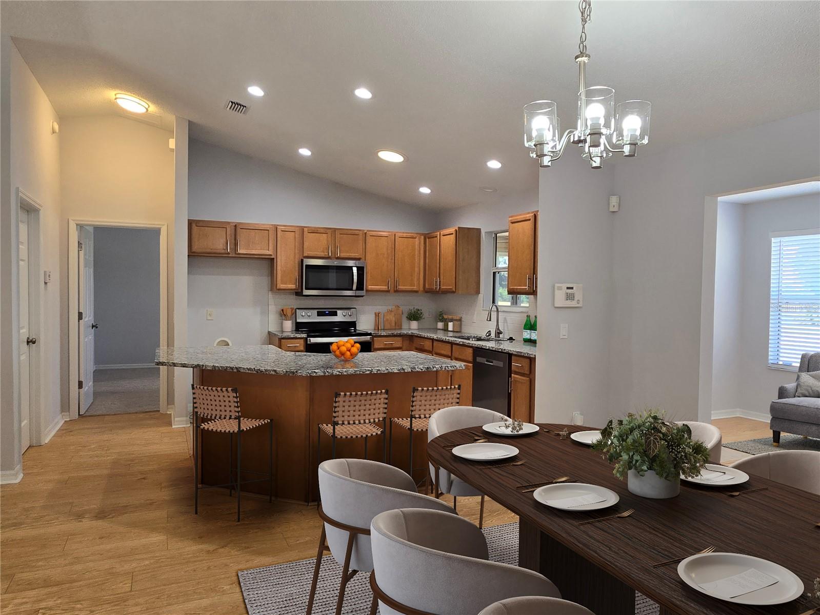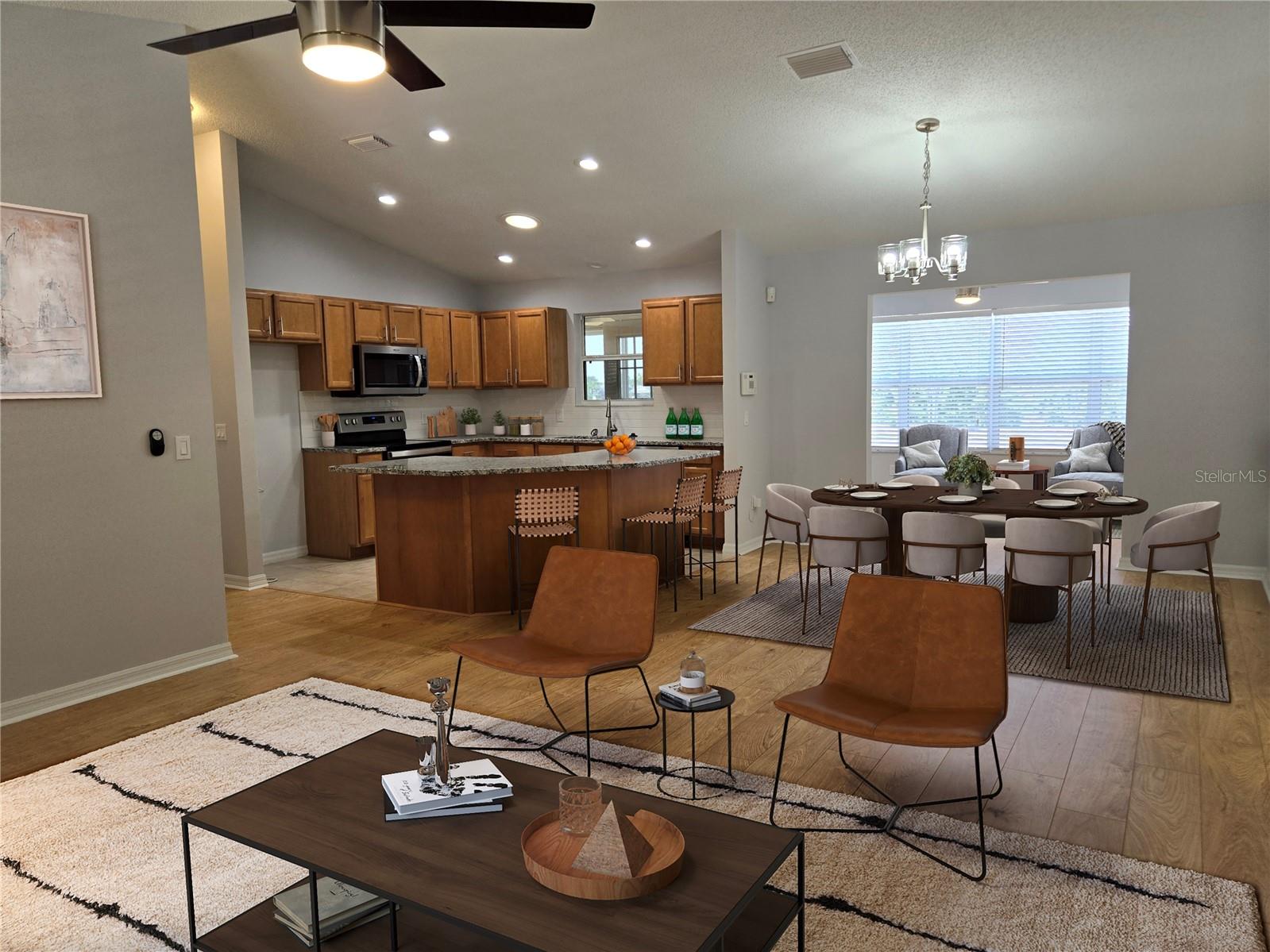 Uma ou mais fotos foram virtualmente encenadas. Bem-vindo às Aldeias. Confira este 3/2/2 completamente atualizado com espaços extras de bons. Planta aberta com cozinha com bar de café da manhã Island com balcões de granito e NOVOS eletrodomésticos de aço inoxidável. A luz da banheira no teto traz muita luz natural extra. Piso de tábuas de luxo e azulejos nas áreas de estar e carpete nos quartos grandes. Aproveite os quartos com tela frontal e traseira. Garagem ampla para 2 carros com portas blindadas. O quarto principal tem grandes armários duplos e novo box, pia dupla com bancadas de granito e armário separado. Esta casa está pronta para morar. Todas as novas luminárias, ventiladores de teto com controle remoto, puxadores de armário, banheiros completamente atualizados com novos chuveiros e banheiras, manutenção de HVAC, telhado inspecionado e em boas condições, Os pisos e paredes da garagem têm pintura fresca e abridor novo. Se você está pronto para o estilo de vida da Flórida, as aldeias e esta casa são o lugar para você.
