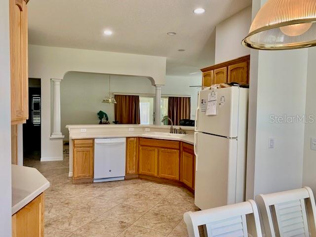 Ótimo lote de esquina na vila de Belvedere! Este modelo Gardenia foi expandido e é uma casa "verdadeira" de 3 quartos, pois todos os quartos têm armários. O telhado é 2022, o aquecedor de água quente é 2023 e a unidade A/C é 2016 com um compressor 2024. O interior e o exterior completos foram repintados em 2024 e todo o paisagismo também é refeito. Ao entrar, você notará a porta da frente de vidro com a entrada de azulejos. A maioria da casa é azuleja com carpete apenas em 2 quartos. Todos os três quartos têm persianas. A cozinha possui armários de madeira com moldagem por coroa. O quarto principal possui armários personalizados e acesso direto à Lanai fechada. O quarto da frente tem uma cama de Murphy embutida e armários duplos. A grande lavanderia possui armários para armazenamento adicional e a garagem retirou as etapas e os armários embutidos para armazenamento extra também. A casa tem ventilador de telhado solar. A localização é fantástica a 466, com todos os restaurantes, médicos e varejo. Esta casa limpa, limpa e muito bem conservada está esperando seus toques pessoais!