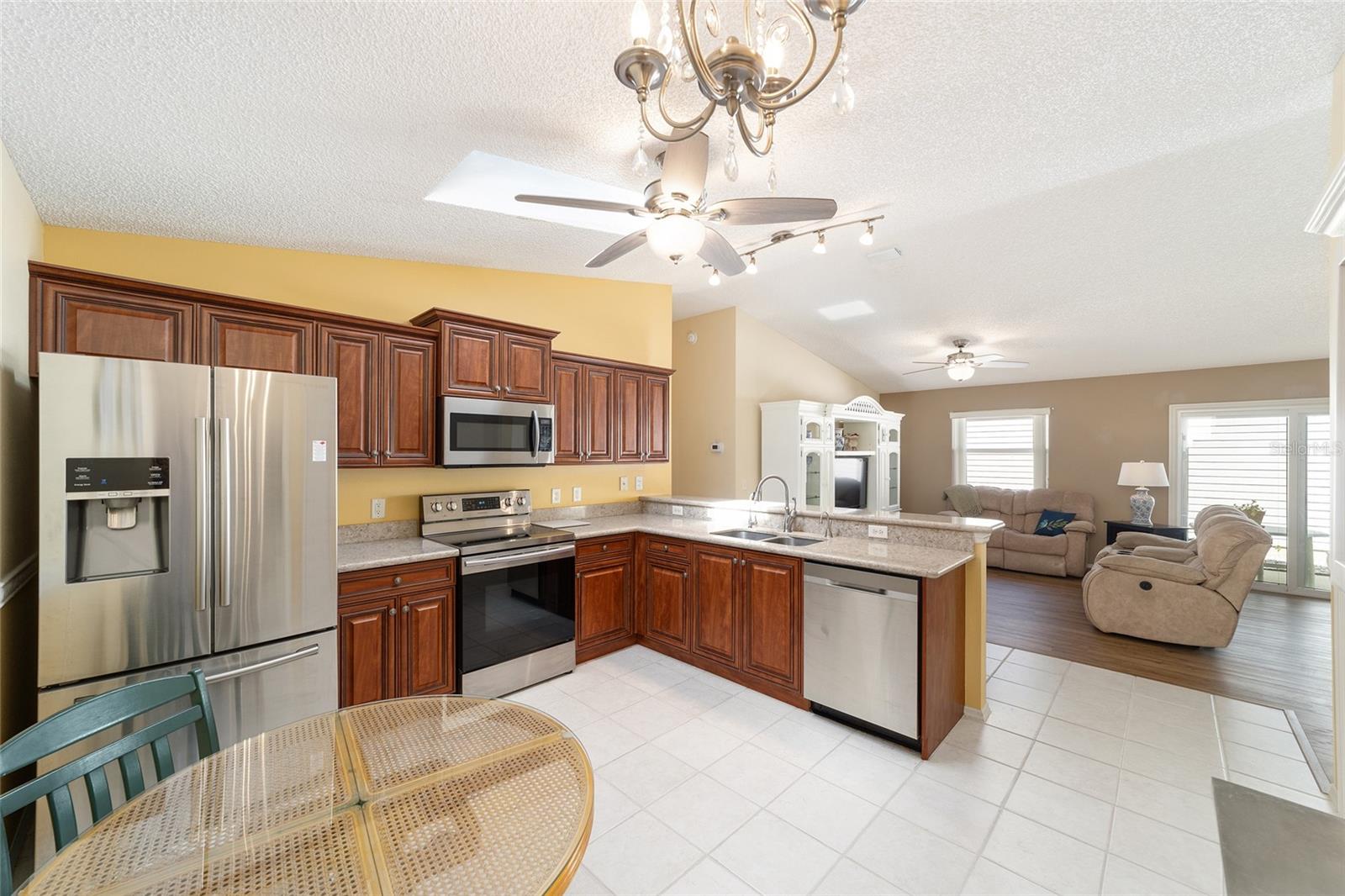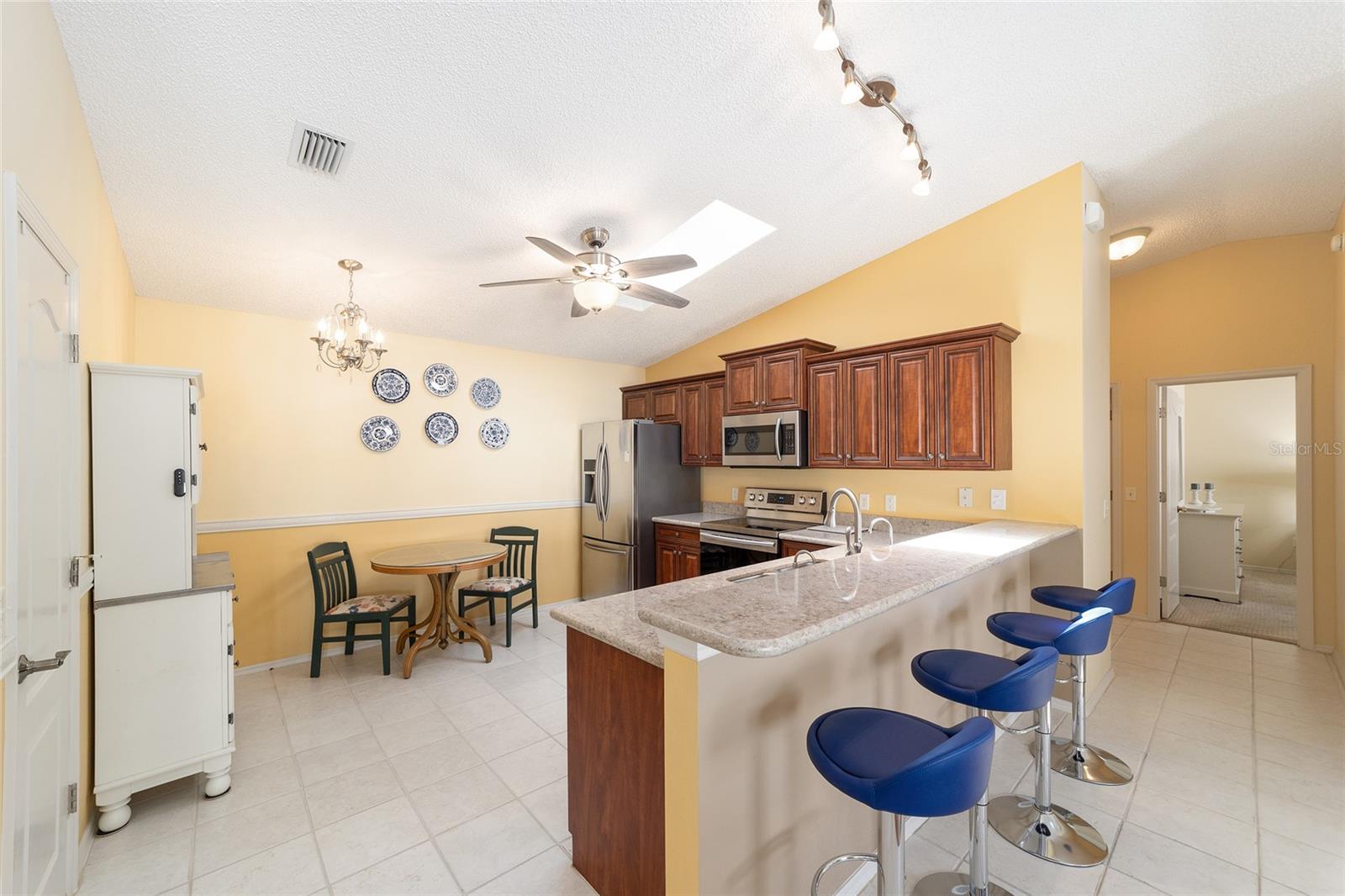 SEM VÍNCULO! Pronto para ir 2/2 Colony Patio Villa sendo vendido CHAVE NA MÃO...mover-se ou configurar como aluguel. Esta casa iluminada e iluminada possui TETOS ABOBADOS e uma cozinha ATUALIZADA com bom gosto com armários NOVOS, bancadas de GRANITO e eletrodomésticos de INOX. UM TELHADO 2017, HVAC 2017 e AQUECEDOR DE ÁGUA QUENTE 2017, então não se preocupe! O piso LUXURY VINYL e o carpete neutro em ambos os quartos são recentes. Você desfrutará dos BANHOS, ILUMINAÇÃO e VENTILADORES DE TETO ATUALIZADOS em toda a casa, parece um novo lugar! O closet principal, os espaçosos armários de linho e as prateleiras da garagem oferecem muito espaço para armazenamento. A garagem para 1,5 carros abriga lavadora/secadora, pia e muito espaço para um carrinho de golfe. Nas proximidades de muitos campos de golfe executivos, do Glenview Country Club e de toda a recreação que o estilo de vida do The Villages oferece. FAÇA JÁ O SEU!