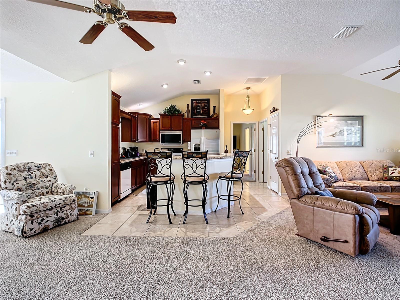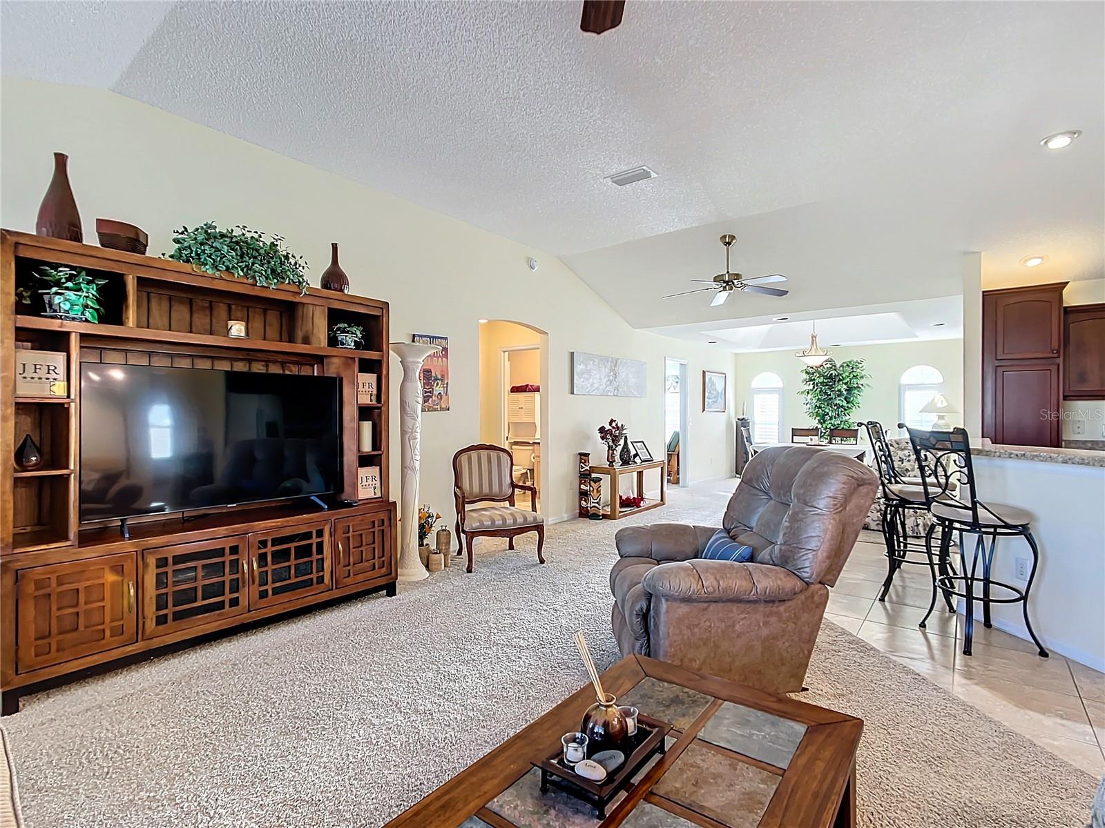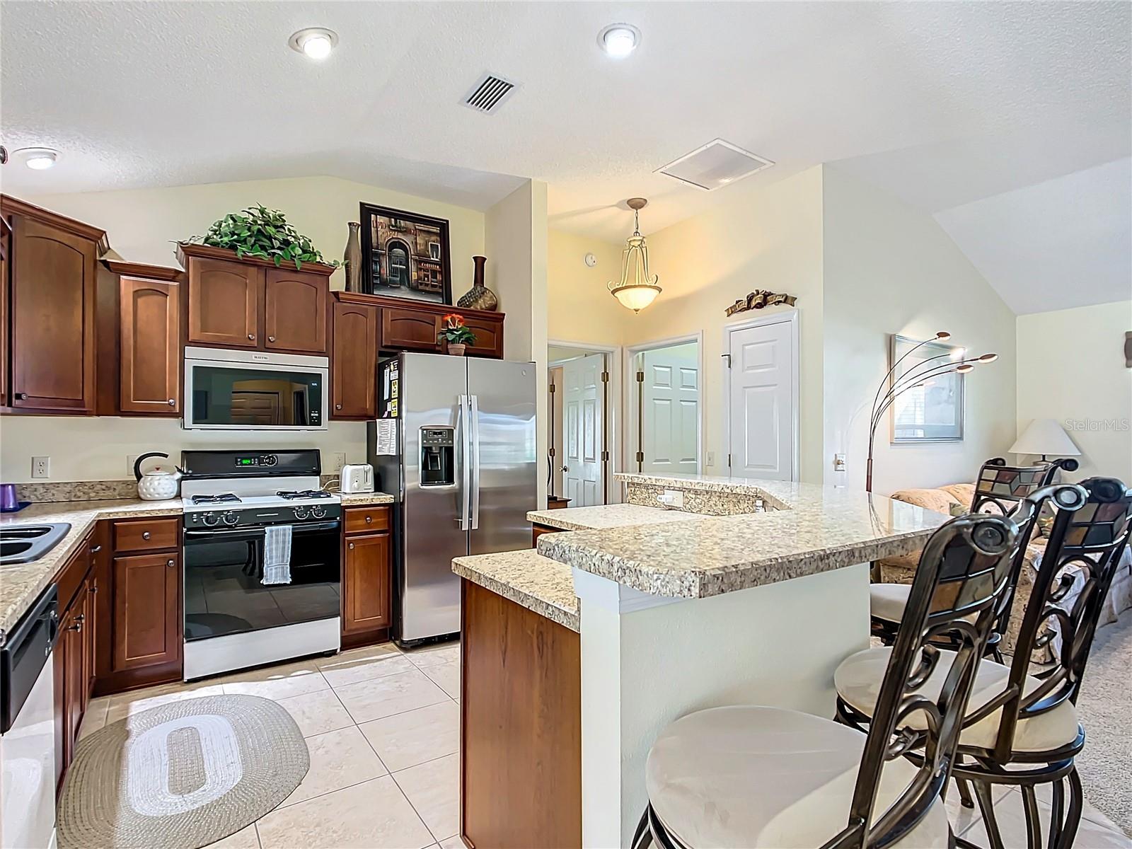 Faça as malas e dê as boas-vindas à sua casa CHAVE NA MÃO, TOTALMENTE MOBILIADA, ao sol, SEM VINCULAÇÃO. Esta bela e bem conservada casa possui três quartos, dois banheiros, sala de estar, sala de jantar e grande sala em uma planta aberta e arejada. O quarto principal com banheiros privativos e closets para ele e para ela está localizado no lado oposto do casa garantindo privacidade para você e seus convidados ou familiares. O quarto de hóspedes também tem closet. A grande sala está virada a nascente e tem uma parede de janelas que lhe proporciona um espaço luminoso e confortável para passar os seus momentos de lazer no interior. A cozinha possui armários de madeira maciça, eletrodomésticos de aço inoxidável e uma ilha com uma barra suspensa perfeita para entreter os convidados com algumas bebidas para adultos. Não há necessidade de passar dias procurando móveis que combinem com o estilo de vida da Flórida. Tudo está aqui para você. Tudo o que você precisa fazer é entrar e aproveitar. The Villages oferece inúmeras comodidades. Se você gosta de esportes ao ar livre, experimente softball, golfe, golfe de disco, tênis, tênis de praia, tênis de plataforma, campos de grama ou pickleball. Ou você pode apenas se refrescar em uma das 54 piscinas comunitárias. Existem também mais de 300 clubes sociais de todos os tipos, desde dança até jogos de cartas e aeromodelismo. Se você consegue pensar nisso, provavelmente já está aqui. Aproveite a música noturna nas praças onde também há muitas lojas e uma grande variedade de restaurantes. Existem instalações médicas por todo o The Villages e muitas são acessíveis por carrinho de golfe. Não deixe de conferir os vídeos em 360'. Para passar de uma sala para outra, pressione o símbolo de avanço rápido à direita.