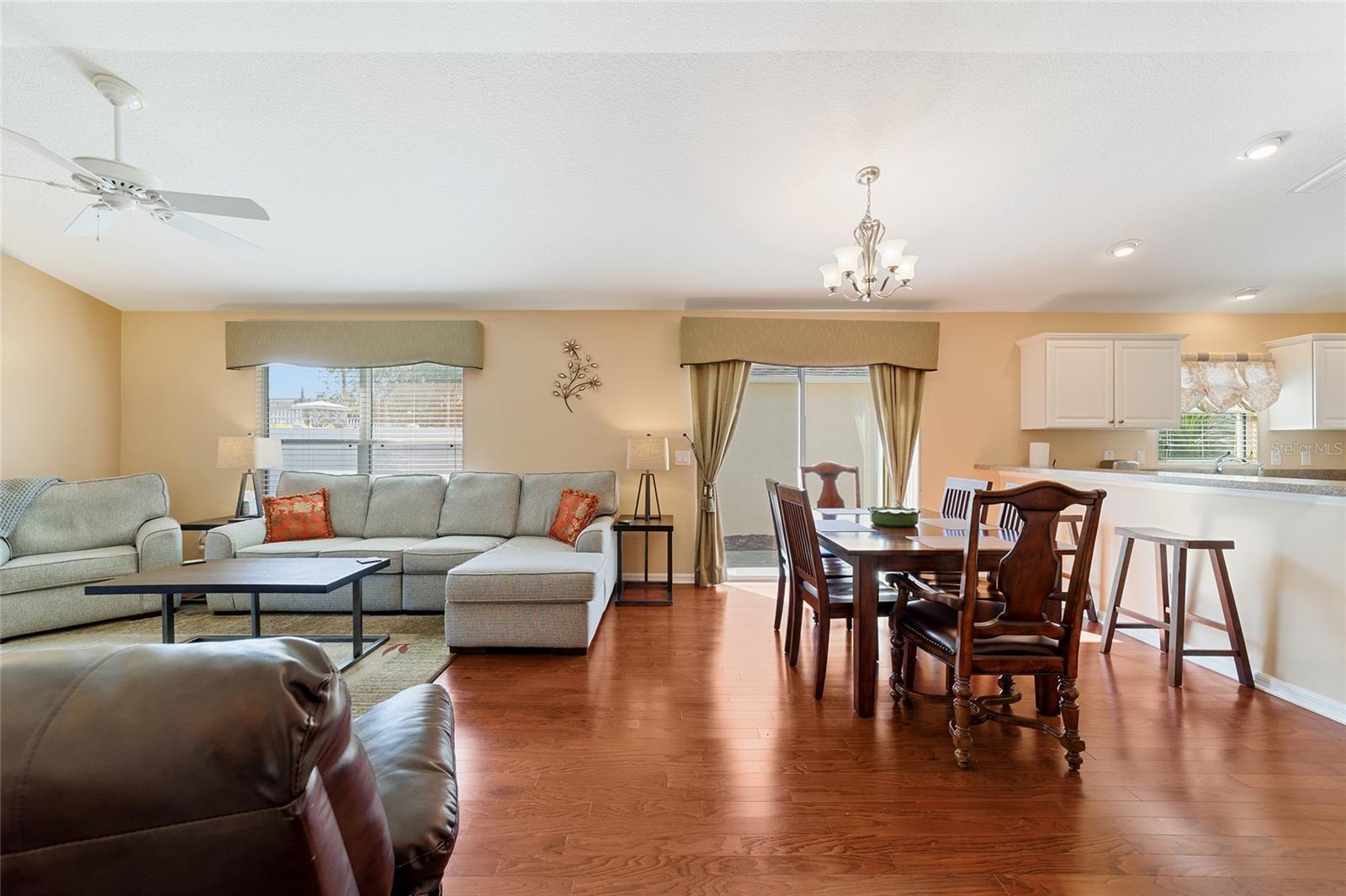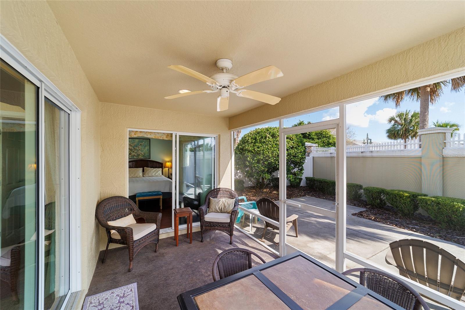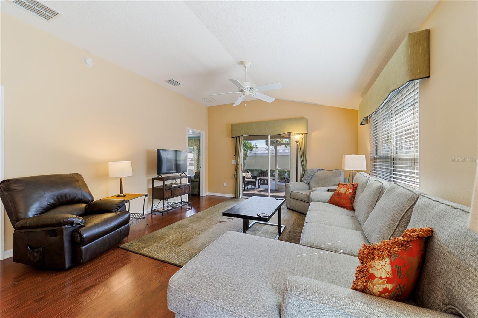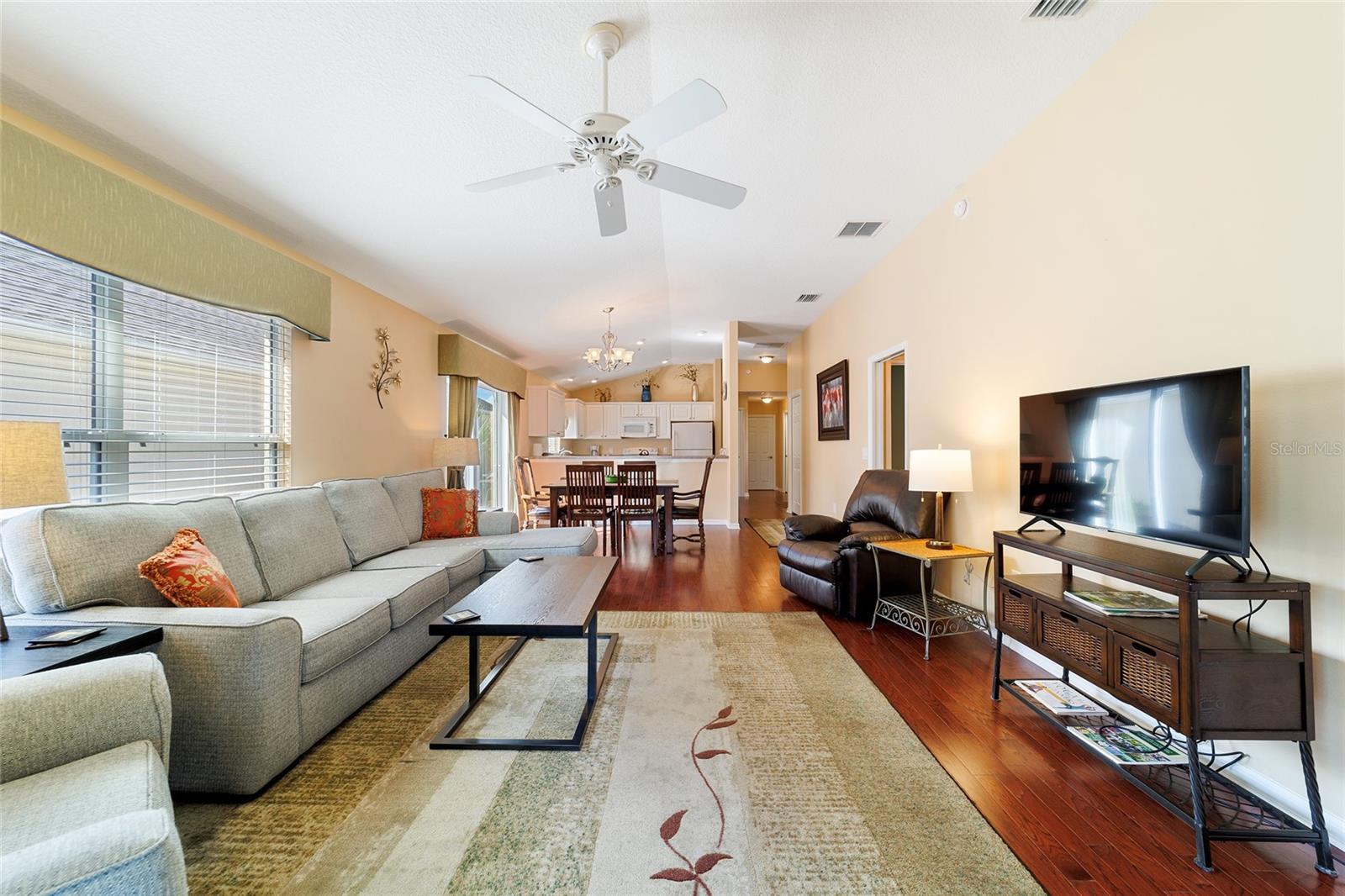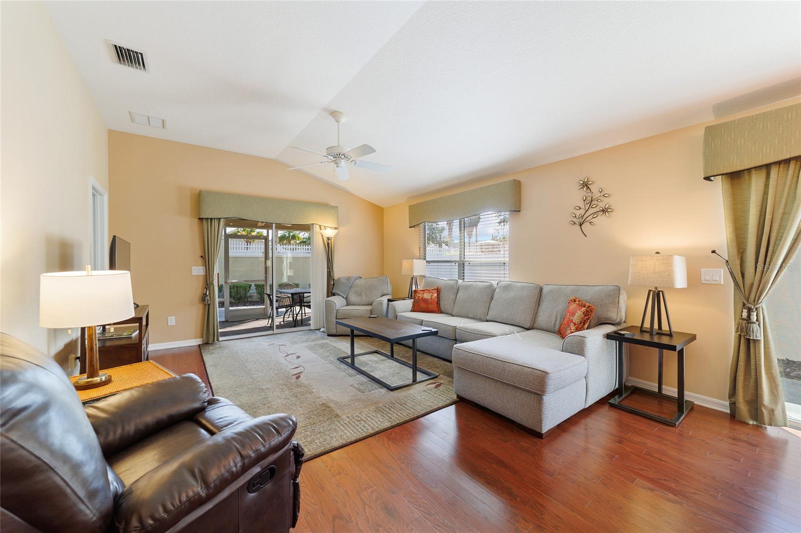 Caminhe até Sumter Landing nas ALDEIAS. Ocupação imediata neste BANGALÔ que é CHAVE NA MÃO! 3 quartos e 2 banheiros. Tetos abobadados. Belo piso de madeira por toda parte e azulejos nos banheiros. Aproveite sua Lanai privada com tela fechada para relaxar ou um lugar agradável para seu(s) animal(is) de estimação. Bar de café da manhã com refeições casuais na cozinha e área para refeições. Cozinha possui armários brancos. Controles deslizantes para o pátio para maior comodidade para grelhar. Quarto principal com teto falso e closet, além de barras deslizantes para a Lanai. O 3º quarto está actualmente a ser utilizado como escritório. As informações de metragem quadrada são retiradas do Registro Público e são consideradas confiáveis, mas não garantidas. As dimensões do quarto e da garagem são aproximadas: o comprador deve verificar. O saldo do BOND é de $ 5.925. Esta é verdadeiramente LOCALIZAÇÃO! LOCALIZAÇÃO! LOCALIZAÇÃO! Filmes, restaurantes...tudo a uma curta caminhada ou passeio de carrinho.