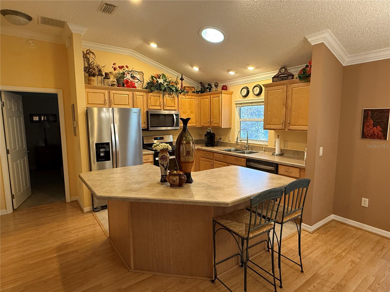 Preço reduzido !! Novo telhado instalado em janeiro de 2025. utensílios de cozinha novos. Esta bela garagem para 3 quartos, 2 banheiros, e uma garagem para carrinho de golfe fica em um lote de canto de grandes dimensões com árvores de sombra madura em um beco sem saída. Nenhum vizinho de um lado e o beco sem saída oferece um quintal maior do vizinho do outro lado, oferecendo muita privacidade da luxuosa tela de tela. A casa está sendo oferecida 100% em chave, com tudo que fica, incluindo o carrinho de golfe. Feche nesta casa e comece a aproveitar a vida das aldeias. Assim que você caminha pela porta da frente, você terá a sensação acolhedora na grande sala de estar com uma área de jantar formal e cozinha requintada com vasto espaço para o armário, uma ilha central de grandes dimensões, oferecendo mais espaço no balcão e uma barra de café da manhã para aquelas refeições familiares casuais. Há uma adorável sala da Flórida na área de jantar que também pode servir como um escritório em casa. O quarto principal é separado do resto da casa para privacidade e possui um grande banheiro privativo com um armário de linho. Há também um espaçoso closet no quarto principal. O segundo e o terceiro quartos estão do lado oposto da casa. Ambos apresentam armários grandes com um banheiro completo entre os dois quartos. Todos os quartos têm janelas maiores, permitindo a luz natural dentro. Há também uma clarabóia na cozinha, lavanderia e segundo banheiro para deixar mais o sol da Flórida. A garagem pode acomodar dois carros e há uma garagem menor para o carrinho de golfe. Esta grande casa está convenientemente localizada perto de vários campos de golfe, o centro de piscina e recreação, compras e compras de varejo, muitos restaurantes e fica a uma curta distância de carro da Turnpike e I75 da Flórida para viajar. Não deixe este passar por você.