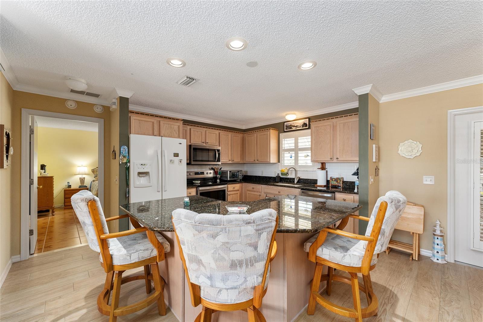 Bem-vindo às Aldeias! Esta casa modelo Amarillo com ligação baixa oferece 3 quartos e 2 banheiros, combinando funcionalidade e estilo para uma vida confortável. O interior apresenta sancas, venezianas e piso de cerâmica de fácil manutenção. A cozinha foi cuidadosamente projetada com bancadas em granito e estantes extraíveis nos armários, o que a torna bonita e prática. Aparelhos atualizados, incluindo lava-louças, fogão e micro-ondas (2020), aumentam a conveniência moderna da casa. O banheiro master foi recentemente atualizado, aumentando ainda mais seu apelo. Entre na varanda fechada, um refúgio perfeito para relaxar e aproveitar as noites quentes da Flórida. As principais atualizações incluem um novo telhado instalado em 2023, garantindo tranquilidade nos próximos anos. Localizada perto do Campo de Golfe Nancy Lopez e a uma curta viagem do centro recreativo, esta casa está perfeitamente situada para quem procura desfrutar do estilo de vida ativo dos Villages. Além disso, fica a poucos minutos das Aldeias de Spanish Springs, que oferecem uma variedade de opções de compras e restaurantes. Não perca a chance de tornar sua casa bem equipada!