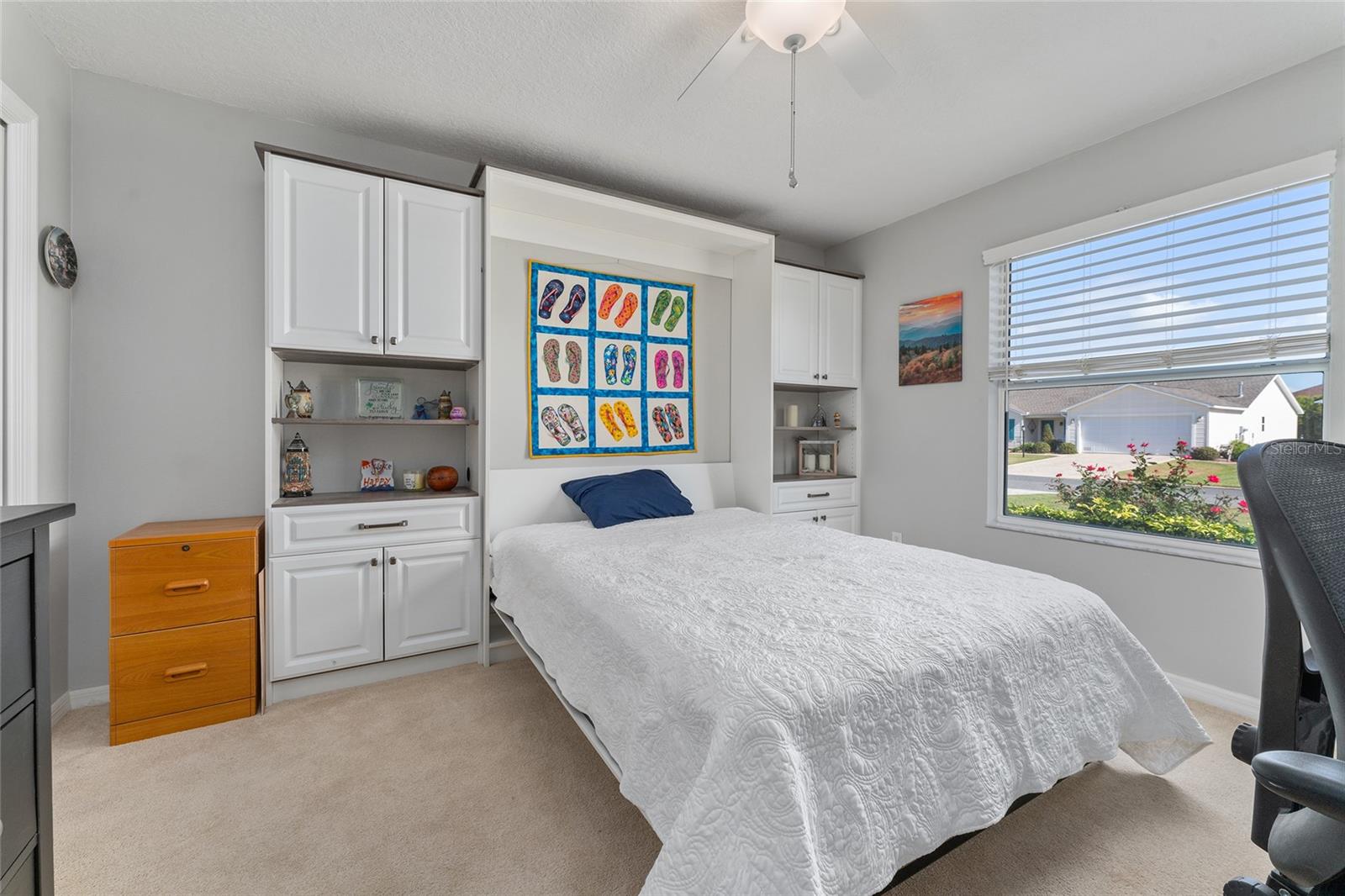 Bem -vindo à aposentadoria no Village of Liberty Park, localizado centralmente, entre a popular Sumter Landing e a Brownwood Paddock Square. Este modelo de Austin, 2 BR-2BA, é um modelo raro e único nas aldeias com uma garagem de 2 carros de carro + golfe (662 sf) e uma piscina aquecida e spa! Não deixe que os pés sq o enganem, é uma planta aberta e espaçosa com quartos grandes. Venha ver esta casa fabulosa com tantas atualizações. NO Bond, New roof (2022), AC (2022), Hot Water heater (2019), Custom Closets including a Queen size Murphy Bed with shelving, Shark Coatings Concrete flooring in Garage, sidewalks and pool decking (2024), Magic Stairs automated lift to attic (2023), automatic garage screen (2023), Solar Tubes in kitchen and bathroom (2022). O exterior da casa foi pintado em 2020. Entre em uma espaçosa área de estar /jantar com piso LVP. O quarto principal tem tapete. O chuveiro foi remodelado recentemente e os armários são instalados personalizados pela Inspire Closets. O quarto de hóspedes tem a cama queen Murphy, prateleiras personalizadas e armário. A cozinha possui aparelhos inoxidáveis pretos mais novos. Saia da nova porta deslizante com persianas embutidas para a grande e coberta Lanai, a piscina e o spa. Partido central por anos. Traga a família e os amigos para reuniões divertidas. Faça um rápido passeio de carrinho de golfe para ambos os quadrados e muitos campos de golfe executivos poucos minutos depois de Abercrombie. Caminhe até o centro de recreação regional de Seabreeze com máquinas de exercícios externas, caminho de caminhada, pickleball, tênis, tênis de plataforma, piscina esportiva, ginásio interno e muitos quartos para eventos. Se você deseja localização, localização, então é isso. Perto de jantar e fazer compras em 466a.