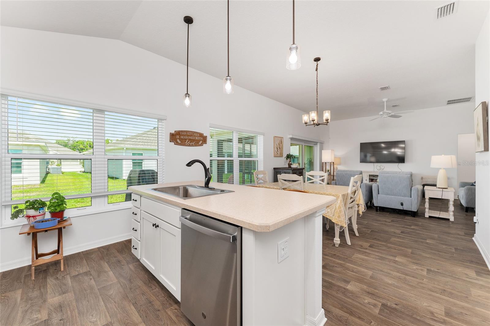 Preço novo e melhorado!!! Bem-vindo a esta bela casa de designer 3/2 Basswood, onde conforto e estilo se encontram em um layout cuidadosamente projetado. Localizada na procurada vila de DeLuna, esta casa oferece um charme encantador com um jardim paisagístico e uma entrada frontal coberta. Entre em uma planta aberta convidativa, aprimorada por luxuosos pisos de pranchas de vinil nas principais áreas de estar, combinando durabilidade com design moderno. O coração da casa é a espaçosa cozinha, com uma grande ilha, balcão para café da manhã, eletrodomésticos de aço inoxidável, fogão a gás de 5 bocas e uma despensa que oferece amplo armazenamento para todas as suas necessidades culinárias. A suíte master é um retiro sereno com teto falso, closet amplo e banheiro privativo completo com pia dupla, toalete privativo, janela para luz natural e box amplo com bancada. Dois quartos de hóspedes adicionais são de tamanho generoso e compartilham um banheiro completo com banheira/chuveiro, proporcionando conforto e privacidade para familiares ou visitantes. Os quartos acarpetados garantem um ambiente aconchegante e tranquilo, enquanto os ventiladores de teto acrescentam conforto e eficiência energética. Aproveite a vida na Flórida o ano todo na varanda com tela, perfeita para tomar café da manhã ou relaxar à noite. Esta casa pronta para morar combina recursos de design com funcionalidade cotidiana - não perca a oportunidade de torná-la sua! O Centro Recreativo Del Luna e a Estação Postal ficam nas proximidades e você estará a apenas 5 minutos do Centro Recreativo Finney, Trilhas e Campos de Golfe. Não deixe de assistir ao nosso vídeo desta excelente casa. Ligue hoje para agendar sua exibição privada e comece a viver o sonho das Aldeias.