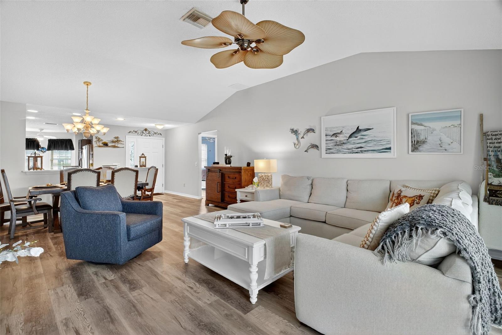 Casa impecavelmente bem cuidada situada em um terreno de esquina em Briar Meadow, Villages. SEM VÍNCULO. A atratividade do meio-fio está repleta de paisagismo, pátio frontal, calçada e passarela de concreto estampado, o que causa uma primeira impressão impressionante. Entre nesta casa cuidadosamente cuidada, atualizada, pronta para morar, com 3 quartos e 2 banheiros. Você encontrará uma planta aberta perfeita para a vida diária e o entretenimento. A paleta de pintura interior fresca cria uma vibração brilhante e alegre. Pisos de fácil manutenção sem carpete. A cozinha apresenta luxuosos balcões de quartzo (4 meses de idade), backsplash, gavetas removíveis, corrimão de cadeira, eletrodomésticos de aço inoxidável e iluminação acima do armário. A suíte master é um verdadeiro refúgio com closet generoso e banheiro privativo atualizado com balcões de quartzo e acabamentos de designer. Dois quartos adicionais e banheiro atualizado oferecem opções confortáveis para hóspedes ou escritórios. Relaxe ou divirta-se na espaçosa varanda com piso de epóxi. Para maior comodidade, uma lavanderia interna dedicada se conecta diretamente ao banheiro master do master ou da garagem, perfeita após um dia de golfe ou na piscina. Grandes atualizações proporcionam tranquilidade: telhado mais novo 2018, HVAC e aquecedor de água 2021. Esta casa oferece o que há de melhor em termos de vida com baixa manutenção. Convenientemente localizado entre Spanish Springs Square e Lake Sumter Landing, você estará a poucos minutos de lojas, restaurantes, entretenimento, campos de golfe, piscinas e muito mais. Não perca este. Veja você mesmo.
