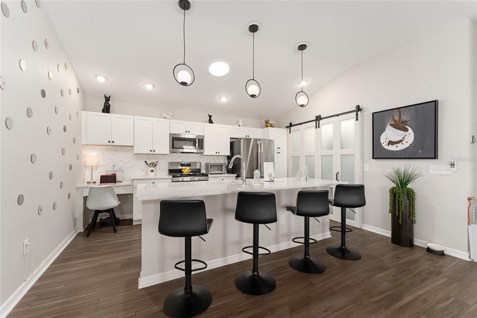 Localizada na desejável vila de Dabney, a poucos minutos da nova e emocionante Eastport Town Square, esta charmosa VILLA PÁTIO CHAVE NA MÃO certamente impressionará! Lindamente decorada com um DESIGN DE INTERIORES MODERNO e apelo convidativo, esta casa oferece a combinação perfeita de conforto e conveniência. A cozinha se destaca, com BANCADAS DE QUARTZO, eletrodomésticos em aço inoxidável, uma GRANDE ILHA CENTRAL e uma área de MESA EMBUTIDA, proporcionando estilo e funcionalidade. O OPEN CONCEPT é aprimorado por tetos volumosos que criam uma sensação luminosa e espaçosa em toda a casa, enquanto portas de vidro deslizantes levam diretamente à LANAI PRIVADA COM TELA, combinando perfeitamente a vida interna e externa - perfeita para o café da manhã ou reuniões noturnas. O quarto de hóspedes inclui uma conveniente CAMA MURPHY, oferecendo flexibilidade para visitantes ou para uso como escritório doméstico. A suíte principal possui banheiro privativo com VAIDADES DUPLAS e um GRANDE WALK-IN CLOSET para amplo armazenamento. Destaques adicionais incluem AQUECEDOR DE ÁGUA SEM TANQUE, GARAGEM PARA 1,5 CARROS E GARAGEM SEPARADA PARA CARROS DE GOLFE, proporcionando espaço extra e praticidade. Quer esteja à procura de uma residência a tempo inteiro ou de um retiro sazonal, esta casa lindamente mobilada permite-lhe mudar-se imediatamente e começar a desfrutar do seu próprio pedaço de paraíso em The Villages.
