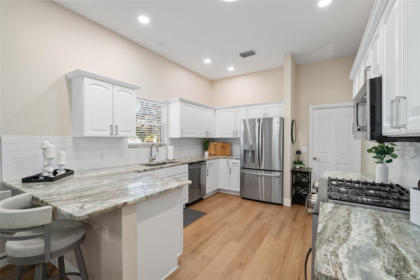 Totalmente Atualizado • Chave na Mão • Localização Privilegiada Perto do Lago Sumter Landing Desfrute de uma vida pronta para morar nesta casa lindamente atualizada e pronta para uso na altamente desejável vila de Poinciana, a poucos minutos do Lago Sumter Landing. As principais atualizações do sistema incluem telhado (2020), aquecedor de água (2025), bobina HVAC (2022). O interior foi amplamente melhorado em 2024-2025 com acabamentos de alta qualidade e estilo moderno, incluindo luxuoso piso de pranchas de vinil (sem carpete), tetos pintados à mão, bancadas de granito, eletrodomésticos de aço inoxidável com fogão a gás, backsplash de azulejos, rodapés de 5 polegadas, persianas, iluminação atualizada e ventiladores de teto e quatro tubos solares. A impressionante entrada apresenta uma porta frontal de vidro personalizada com luz lateral, criando um apelo notável e um hall de entrada iluminado e acolhedor. Uma janela saliente no recanto da cozinha traz luz natural abundante. Um sistema de filtragem de água para toda a casa instalado (2025). O armazenamento e a função são igualmente fortes com escadas rebatíveis no sótão e um sótão com piso, calhas, piso de garagem revestido com epóxi e uma garagem de grandes dimensões para carros de golfe. A vida ao ar livre é um destaque com um quintal tranquilo, pátio ampliado e varanda. Oferecido chave na mão com mobiliário e decoração incluídos. Esta casa é limpa, elegante e pronta para uso imediato. A poucos minutos de distância, Lake Sumter Landing oferece música ao vivo todas as noites, restaurantes à beira-mar, lojas e entretenimento, com Cane Garden Country Club, piscinas e golfe nas proximidades.