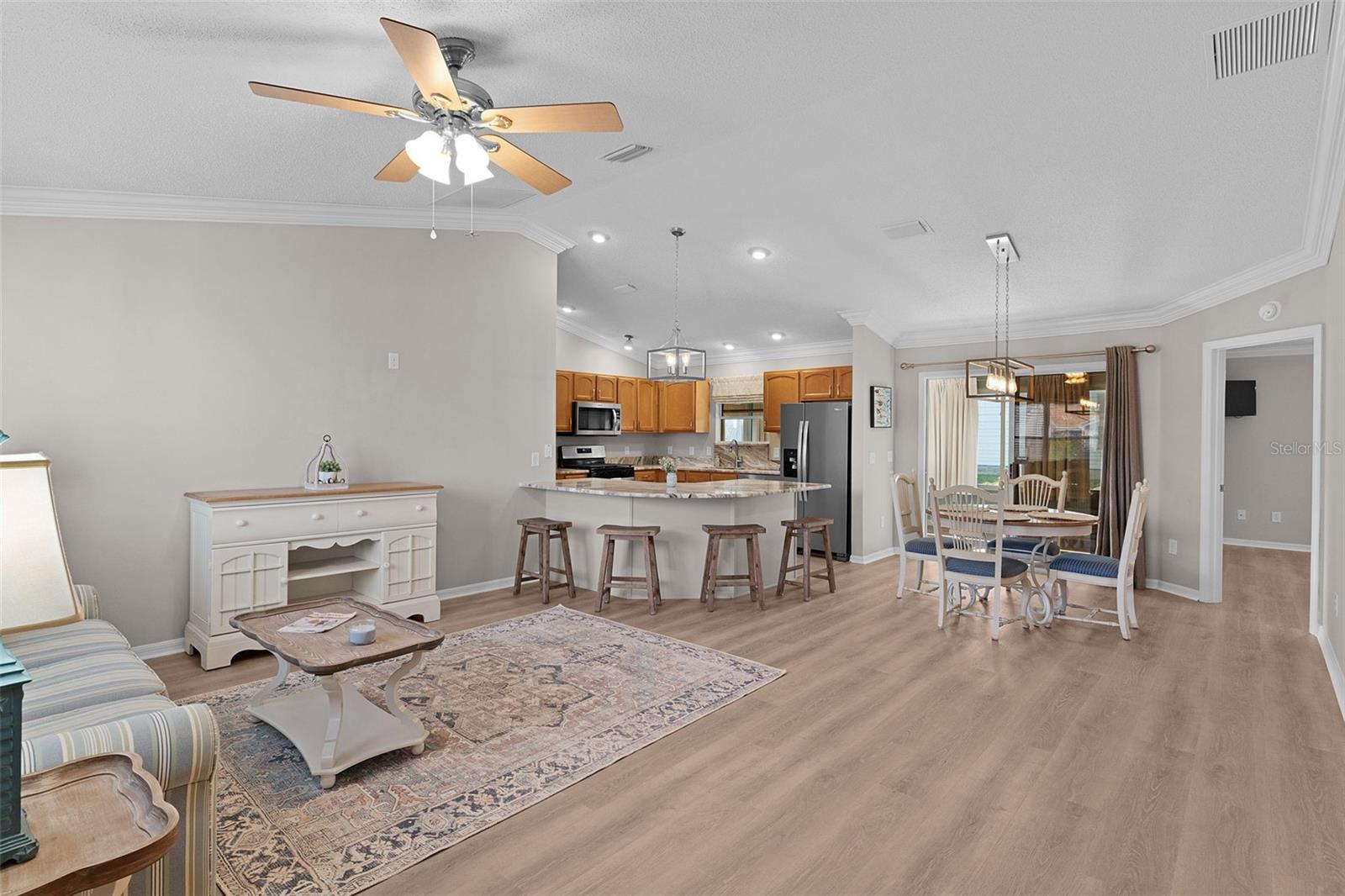 CASA PRONTA PARA MUDAR com privacidade nos fundos! Venha ver as mudanças! NOVO TELHADO 2025. NOVO PISO DE TÁBUAS VINIL (2025) NA SALA DE ESTAR, JANTAR, QUARTOS E SALA FLÓRIDA - SEM TAPETE! A/C 2024 - CHUVEIRO PRIMÁRIO ATUALIZADO! NOVO SOD (em breve!)! Móveis disponíveis separadamente. HORA DE VENCER ESTA LINDA CASA COM SALA FLÓRIDA!! Nada de “beijar Lania” aqui! Sua nova casa dá para villas com pátio (sem varanda nos fundos da casa). QUE FABULOSO não ter uma varanda atrás da sua! Isso lhe dá a PRIVACIDADE que você deseja! Tetos abobadados são OBRIGATÓRIOS e este lindo modelo Austin acentua esse recurso com sancas extra largas! A bancada de granito cuidadosamente escolhida e a pia da cozinha combinam a cor do armário com o piso de cerâmica que fazem desta área um ponto focal da casa. A varanda com tela agora é um quarto da Flórida com armários modernos e atualizados para tornar este quarto tão versátil! Uma “cama embutida” em estilo armário e um sofá-cama podem ser as escolhas de móveis perfeitas para tornar este quarto na Flórida ideal para receber hóspedes, ao mesmo tempo que permite o uso diário para relaxamento, exercícios, espaço de escritório ou artesanato. O banheiro principal foi atualizado com lindos azulejos novos no chuveiro e no chão. Balcões de banheiro atualizados exibem o lindo Cambria Quartz! O termostato é programável por um aplicativo de telefone - então não se preocupe se você deixou o ar-condicionado ligado em 65 quando saiu de férias! Existe um APP para ISSO! The Villages é uma comunidade adulta ativa com mais de 3.000 atividades e uma abundância de piscinas, centros recreativos e campos de golfe. Os cursos executivos estão incluídos na sua taxa de comodidade, enquanto os cursos de campeonato podem ser escolhidos por um custo adicional. A Vila de Duval está localizada “Entre os anos 66!” Oito quilômetros ou menos até Lake Sumter Landing e Brownwood, onde você pode desfrutar de música ao vivo, dançar, fazer compras e jantar durante todo o ano! ao virar da esquina do Centro Recreativo Regional Seabreeze, onde os residentes podem escolher entre uma ampla variedade de atividades, como cartas, pingue-pongue, dança em linha, “tênis-vôlei”, bocha, pickleball e muito mais! A piscina esportiva é uma grande atração para natação, vôlei aquático e aeróbica. Aqui você também tem sala de musculação (custo adicional)! As praias podem ser apreciadas em uma viagem de um dia no lado do Golfo, a aproximadamente 1 hora e 15 minutos de distância. Ou aproveite o lado atlântico, que fica perto de uma hora e meia. Aproveite para visitar a Disney a apenas cerca de uma hora de distância! Saldo de títulos $ 9.694,08 (parte de manutenção anual $ 585,85 e parte de títulos $ 1.213,29) TELHADO 2025!A/C 2024 - Informações consideradas confiáveis, mas devem ser verificadas de forma independente.