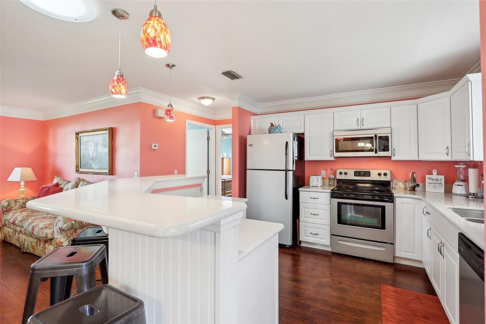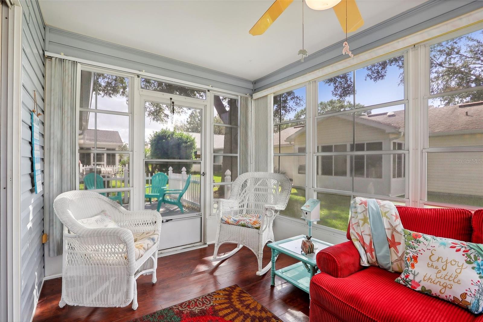 Vendedores motivados !!! Os vendedores disseram venda !!! Bem -vindo ao seu retiro dos sonhos nas aldeias! Esta casa lindamente remodelada de 2 quartos e 2 banheiros na principal comunidade de mais de 55 anos em Mira Mesa oferece charme e conveniência. Localizada a poucos minutos de Spanish Springs e Sumter Landing, você terá acesso fácil a compras abundantes, restaurantes, bancos, instalações médicas e muito mais. Nas proximidades, a piscina Mira Mesa oferece uma fuga refrescante ao virar da esquina. Esta área não possui um título municipal ou taxa de manutenção anual de CDD, reduzindo drasticamente o custo geral de vida nas aldeias! No interior, a convidativa piso plano aberto destaca uma cozinha remodelada com elegantes bancadas de quartzo, novos armários e utensílios de aço inoxidável. As cores e persianas de inspiração costeira da casa em cada janela criam uma atmosfera vibrante e acolhedora. O banheiro principal é remodelado com bom gosto e a moldura da coroa - incluindo os dois banheiros - confere um toque refinado. Todas as luminárias e acessórios de ventilador foram substituídos pela funcionalidade de controle remoto para maior conveniência. O espaçoso quarto de hóspedes inclui um closet. Recursos adicionais incluem pisos de madeira projetada por toda parte, azulejos nos banheiros e tubos solares na cozinha e banheiros, inundando o espaço com luz natural. Ao ar livre, a entrada de automóveis pintada, a passarela e o pátio traseiro criam uma aparência personalizada e polida, complementada por cercas ao redor da varanda da frente e do pátio traseiro. Desfrute de baixa manutenção que vive com novos calhas e guardas, além de um sistema de ventilação de garagem G-14, porta de garagem isolada e uma bancada de trabalho de 10 'de fórmica na garagem. Com um novo telhado instalado em 2022, esta casa está pronta para você para desfrutar do estilo de vida vibrante das aldeias.