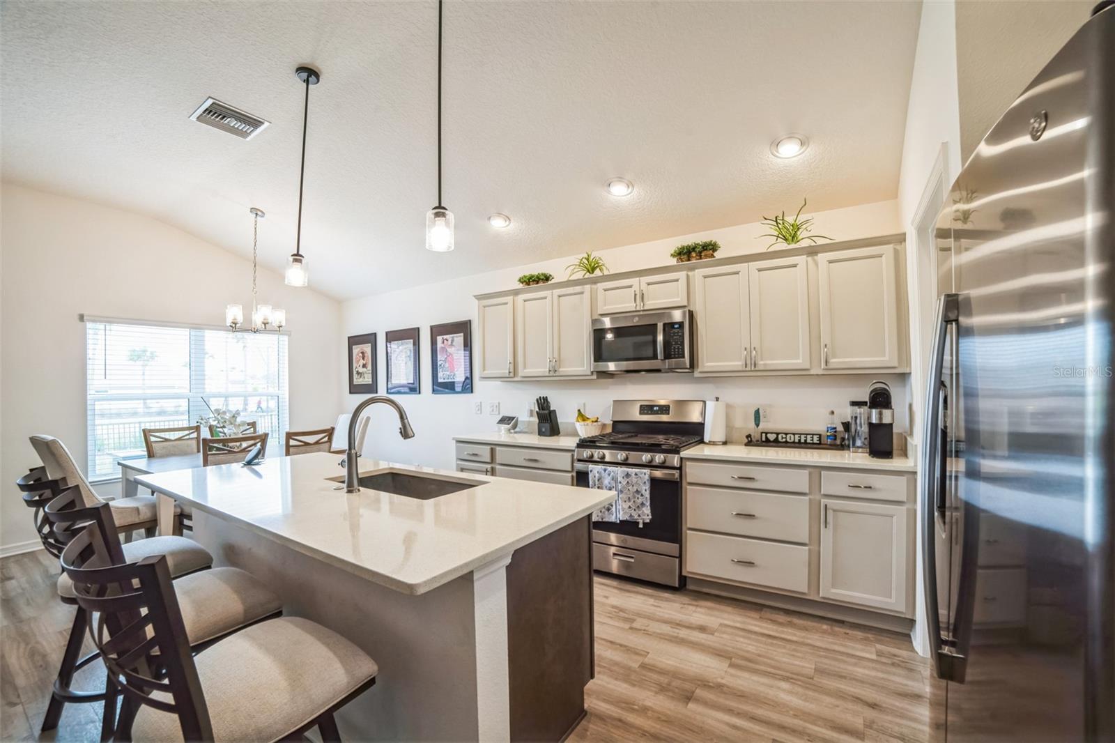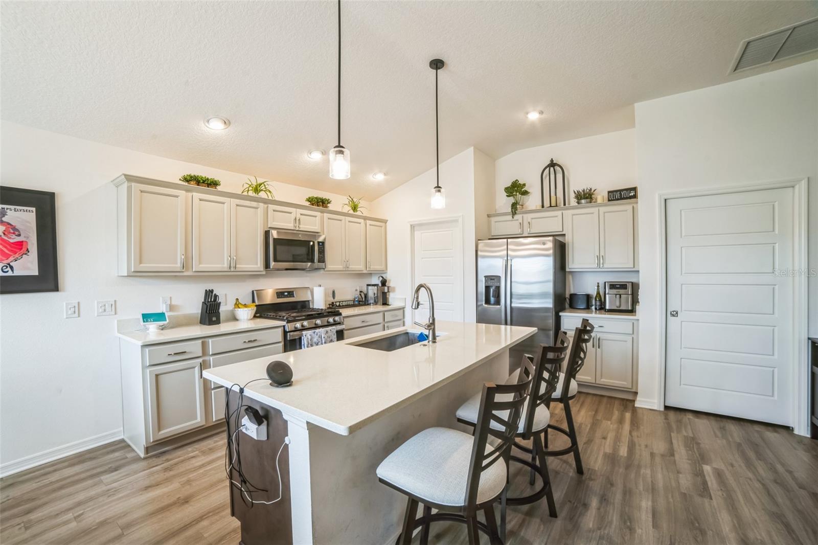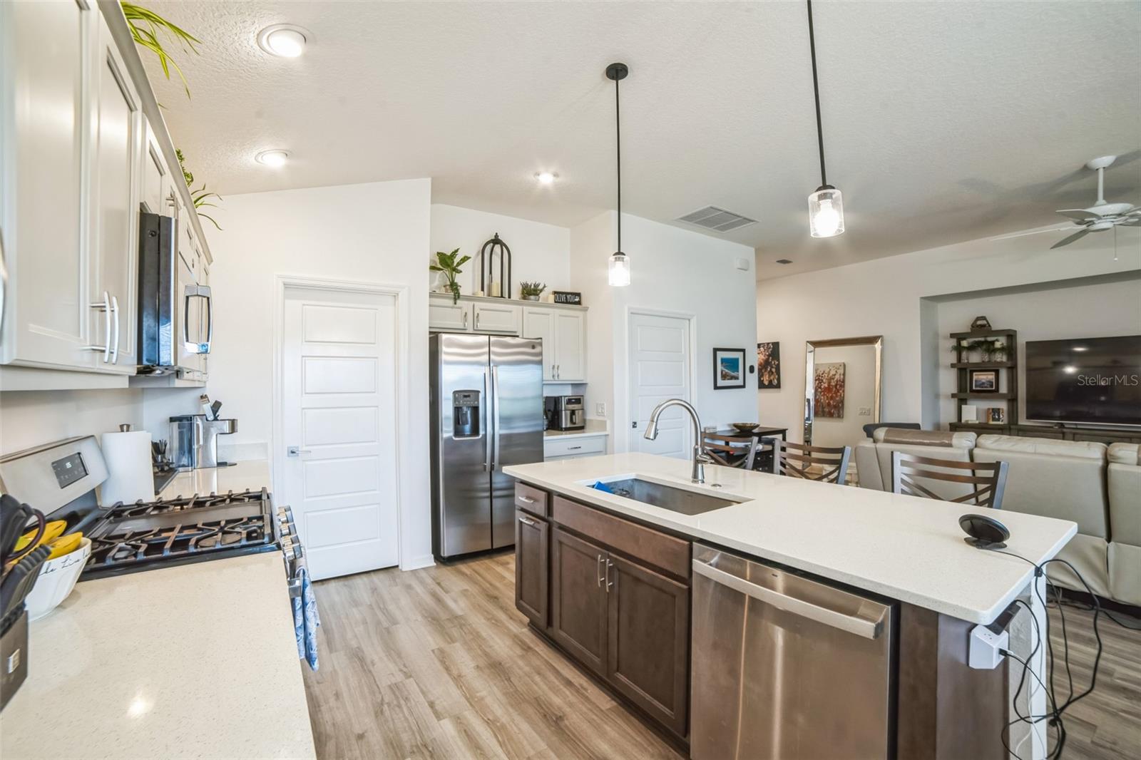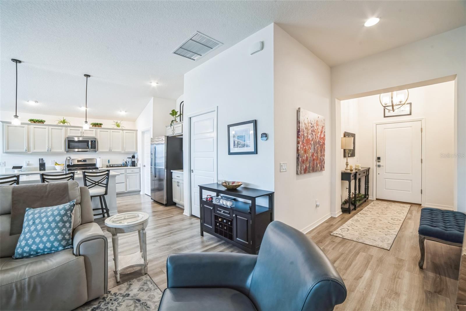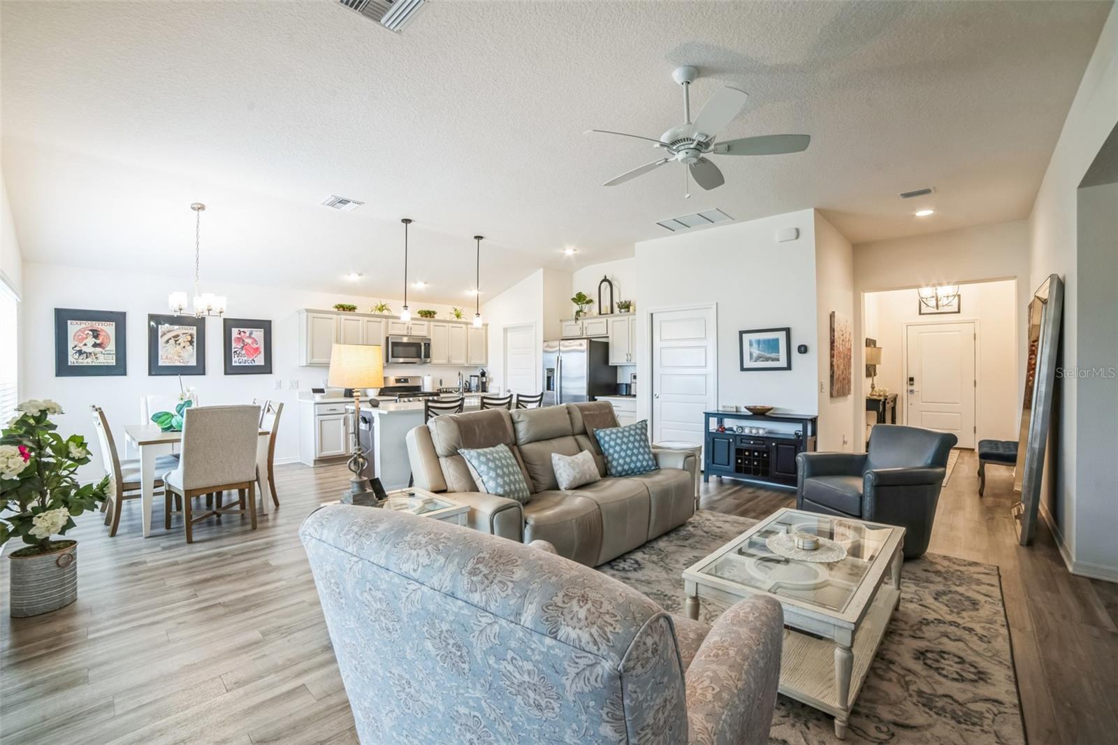 Esta casa está situada na vila vibrante de Lake Denham (área de Sawgrass) e inclui várias atualizações e uma garantia doméstica. O vidro fechado com grandes janelas deslizantes fornece uma vista relaxante do 16º verde no Mickey Lee Golf Course e cria uma verdadeira experiência interna/externa. Fechar aquelas janelas em tamanho real e abrir as portas do pátio Lanai cria um espaço extra condicionado. O Lanai também possui um piso de rocha do rio Chattahoochee, e a almofada de sol de concreto externo é pintada para combinar. Tudo isso cria uma visão impressionante com fluxo de ar da porta da frente para o quintal. Toda noite revela um tom diferente de pôr do sol sobre a berma atrás do campo de golfe. A casa também apresenta paisagismo aprimorado, que inclui bordas, cobertura morta, plantas com flores e uma palmeira de Robellini. Outras atualizações incluem uma porta de tela frontal retrátil, escadas do sótão, calhas de chuva, além de fãs atualizados e controles remotos. A garagem de 2 carros possui armários de prateleiras e armazenamento, bem como uma tela de porta de garagem de tamanho completo com controle remoto de alumínio de alumínio premium. A garagem também é pintada e selada. A lavanderia possui armários embutidos e uma série de perfil GE premium 'inteligente' arruela e secadora cinza. As bancadas de quartzo correspondentes por toda parte, uma grande sala de despensa fora da cozinha, tetos de volume (teto da bandeja no quarto primário), chuveiros totalmente azulejos e banheiros, além de pisos de tábuas compostas, tornam a casa do modelo de piso de conceito aberto ('chicote-pobre-de-arbusto') uma das plantas favoritas em todas as aldeias. Além disso, há espaço para uma piscina no local. Venha ver por si mesmo o quão relaxante e caseiro essa casa praticamente nova pode ser. Os móveis são negociáveis e podem ser incluídos na venda de residências, criando uma experiência verdadeiramente a mão. As seguintes comodidades estão nas proximidades: *Mickey Lee Golf Course, Jubileu Putting Course, o Franklin Recreation Center and Pool estão em toda a rua. *Centro de Recreação de Homestead e Piscina a 1,5 milhas de distância (5 minutos por carrinho de golfe) *Centro de recreação regional de Ezell e Sports Pool a 2,3 milhas de distância (8 minutos por carrinho de golfe) *Sawgrass Grove Entertainment + Marketplace - 2,3 milhas (8 minutos por carrinho de golfe) *Southern Oaks Championship Golf Course - 2,3 milhas (8 minutos de carrinho de golfe) *Laurel Lai Laurel) Oks Oaks Championship - 2,3 milhas (8 minutos de carrinho de golfe) *Laurel) Carrinho de golfe) *Campo de golfe do Woodlands Championship (abertura em breve) - (14 minutos do carrinho de golfe). *New Eastport Town Square e tudo o que oferecerá a 5 milhas (10 minutos de carro-15 por carrinho de golfe)!