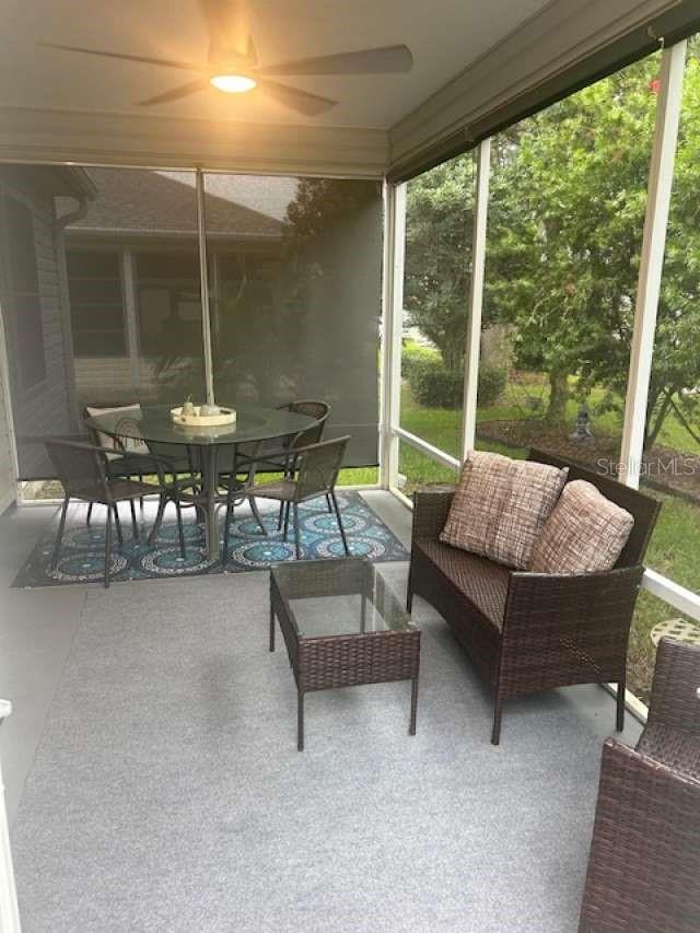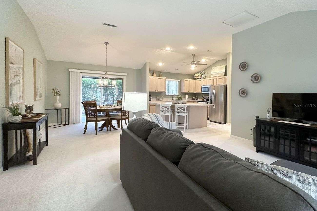 ***NOTA: TODOS os novos pisos de pranchas de vinil de luxo e acabamentos de rodapé serão instalados e o interior será pintado no final de setembro. Veja fotos de pisos.*** Bem-vindo ao lar! Localizada em uma rua tranquila que termina em um beco sem saída, esta espaçosa casa de 3 quartos e 2 banheiros, com garagem anexa para 2 carros, fica a aproximadamente 13 minutos da Praça do Mercado Lake Sumter Landing e a aproximadamente 9 minutos da Praça da Cidade de Spanish Springs, e a menos de 7 minutos de todos os 3 Centros de Artes Cênicas. Este local é onde você quer estar! Esta casa vem totalmente mobiliada, basta virar a chave e morar! Entre na ampla sala de estar com carpete luxuoso e tetos altos, e observe imediatamente as áreas de estar e de jantar em conceito aberto, bem como a cozinha bem planejada com eletrodomésticos de aço inoxidável e uma grande ilha com saliência para sentar. Atrás da cozinha, o quarto principal possui um closet espaçoso e banheiro privativo completo com pias duplas e um amplo box com chuveiro. O segundo e terceiro quarto ficam do outro lado da casa assim como outro banheiro completo para hóspedes! Através da porta deslizante, aproveite as noites quentes da Flórida na varanda com tela! A casa dispõe ainda de lavandaria/despensa, vários armários para arrumação e garagem para 2 carros (além de mais estacionamento na garagem)! Esta casa vem com garantia de 1 ano fornecida pelo vendedor para uma vida sem preocupações! **POSSÍVEL opção de financiamento ou arrendamento de curto prazo do vendedor*** O título foi liquidado.