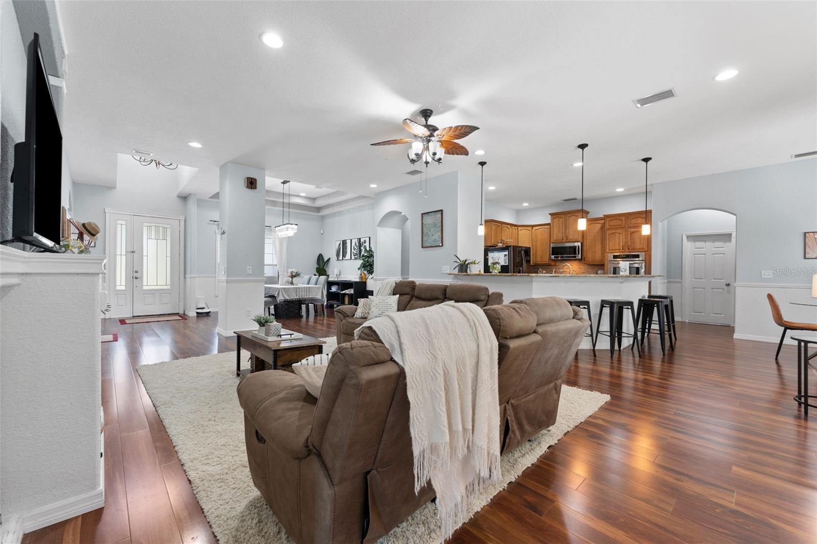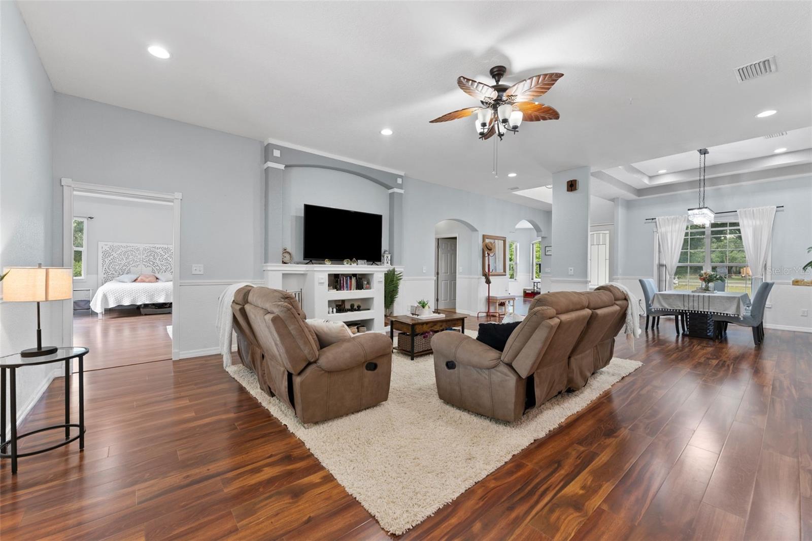 APENAS REDUZIDO! Linda casa PERSONALIZADA (com portão próprio para segurança) situada em 1,39 acres tranquilos de terra a poucos minutos de Tampa. Esta propriedade deslumbrante possui uma linda casa de 4 quartos, 4 banheiros e meio e garagem para 3 carros. Do lado de fora, você encontrará um quintal totalmente cercado com árvores maduras, 2 pérgulas com redes, uma fogueira de tijolos, um balanço de árvore extravagante e ESTACIONAMENTO EXTERIOR COBERTO para trailers/barcos. Ao entrar na casa, você é recebido por um impressionante hall de entrada de 2 andares e uma requintada sala de jantar com TETOS DE BANDEJA DUPLA. A cozinha possui eletrodomésticos em inox, bancada em granito, despensa, forno embutido, fogão com exaustor, NOVO backsplash moderno e um amplo balcão perfeito para entretenimento. A sala familiar aberta possui prateleiras embutidas e tem vista para uma SALA BÔNUS de mais de 700 pés quadrados que tem seu próprio AC mini-split e JANELAS DE 8 PÉS COM VISTA PANORÂMICA. Está equipada com casa de banho completa e canalização para kitchenette. Medindo 17x23, o QUARTO PRIMÁRIO possui ÁREA DE ESTAR PRÓPRIA e possui tetos duplos,