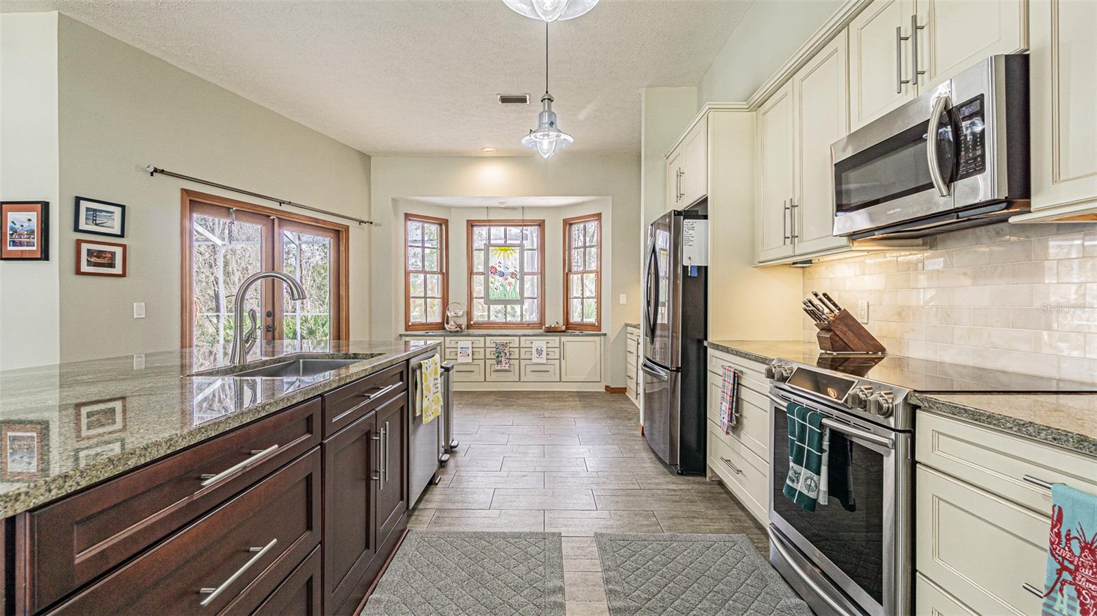 Essas casas personalizadas exclusivas raramente estão disponíveis. Completamente renovada sem economia de despesas, esta deslumbrante casa com piscina aquecida de 3 quartos e 2 banheiros oferece design excepcional, artesanato de qualidade e quase meio acre de vistas serenas de conservação. Localizada perto da Hwy 301, a poucos minutos da USF, esta propriedade fica em um beco sem saída tranquilo, cercado por carvalhos maduros em um bairro semi-isolado sem HOA. Uma varanda frontal aberta de 10 'x 24' e portas de entrada duplas de 6' de largura dão as boas-vindas a um hall de entrada impressionante que se abre para uma espaçosa sala grande com lareira a lenha, tetos altos de 10' e lindo piso de cerâmica por toda parte. A cozinha totalmente remodelada é a peça central da casa, apresentando armários envidraçados personalizados de 40 "e 48" com sancas, 21 gavetas de fechamento suave (incluindo 6 extra-largas), bancadas de granito, iluminação sob o armário, backsplash de mármore e uma enorme ilha de granito de 4 'x 8' com pia de aço inoxidável de tigela única e lava-louças. Os destaques adicionais incluem um bar de café/servidor com refrigerador de vinho, vitrines de vidro, armários para café da manhã com tomadas pop-up, eletrodomésticos de aço inoxidável, geladeira com máquina de fazer gelo dupla, micro-ondas de convecção e forno de temperatura dupla. Uma grande despensa oferece ainda mais armazenamento. A suíte principal é de tamanho generoso, com portas francesas que levam à varanda com tela, closets grandes para ele e ela e um banheiro lindamente remodelado com balcões de granito, armários de alto perfil e acessórios atualizados. Os quartos de hóspedes são espaçosos, incluindo uma mesa embutida em um dos armários e uma banheira com acesso à piscina com balcões de granito combinando e combinação de banheira/chuveiro. Os toques personalizados incluem medalhões de teto, teto de bandeja com embutidos na sala de jantar, janelas de madeira e caixilhos de portas, luminárias elegantes, detalhes de chuveiro de azulejos com nichos e acabamentos coordenados em cozinhas e banheiros. Saia pelo segundo conjunto de portas francesas para a varanda coberta e protegida com vista para a conservação pacífica e para a piscina aquecida - perfeita para relaxar ou se divertir. As características adicionais incluem: Garagem extra ampla e extra profunda para 2 carros (29' de profundidade x 21' de largura) com teto de 11', piso em epóxi, espaço para bancadas que oferece muito espaço para armazenamento. Conectado para gerador portátil. Portão traseiro de acesso à garagem. Sistema de tratamento de água com amaciante, ionizador e filtros de pH. Janelas frontais de vinil atualizadas. Tapume da placa Hardie. Exaustor de sótão para eficiência energética mantendo a casa mais fresca. Sistema de alarme residencial completo com quebra de vidro, movimento e detectores de fumaça conectados. Lavanderia interna com armários superiores e pia. Esta casa construída sob medida oferece tamanhos de cômodo maiores do que o normal, armazenamento abundante e acabamentos de alta qualidade por toda parte. Uma verdadeira propriedade com orgulho de propriedade, projetada para oferecer conforto, entretenimento e valor duradouro. Agende sua exibição hoje.