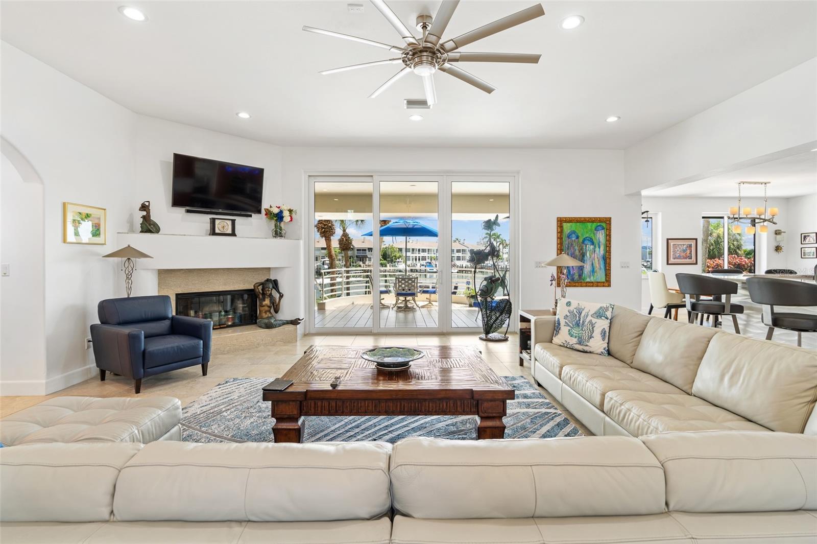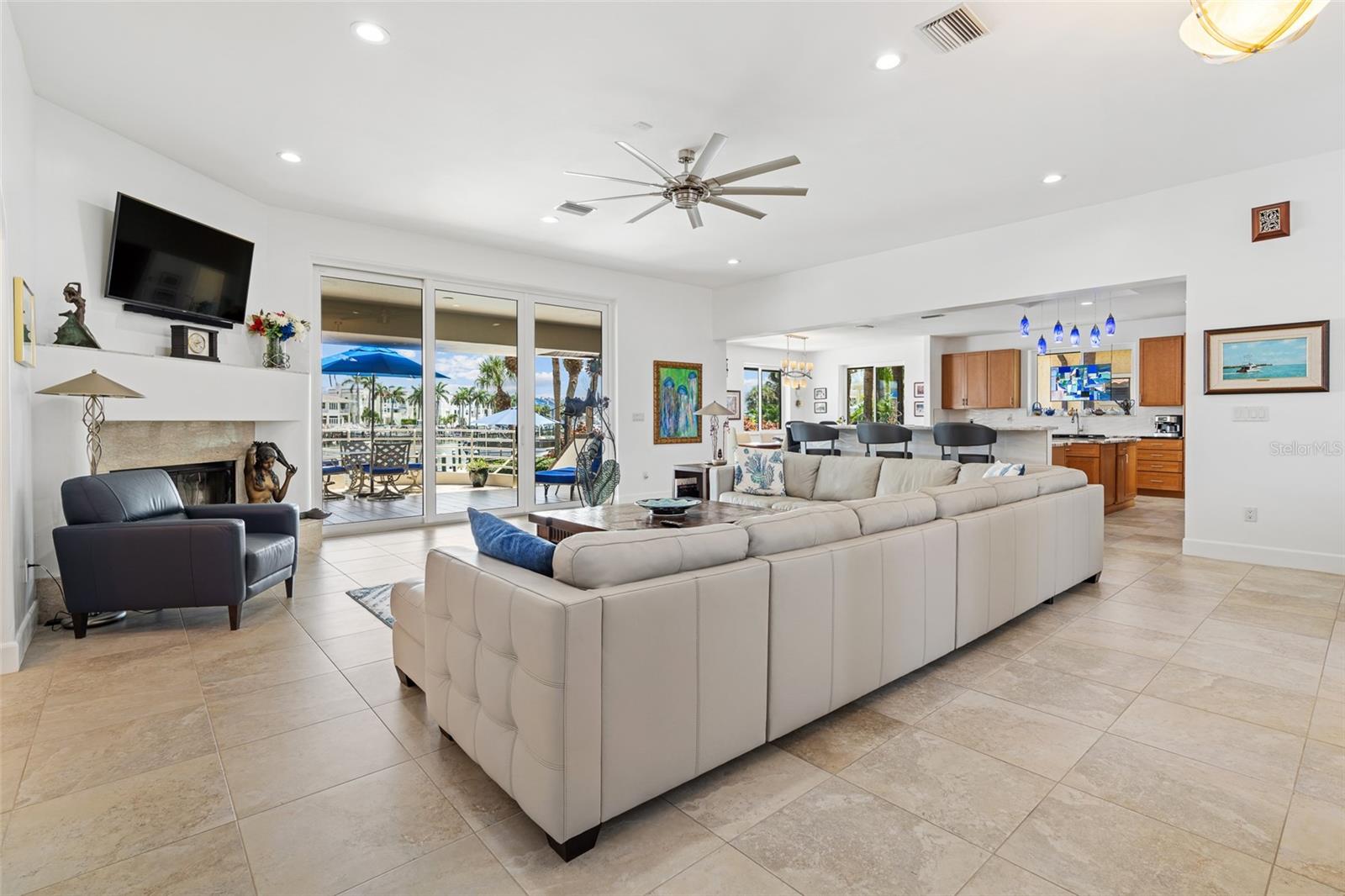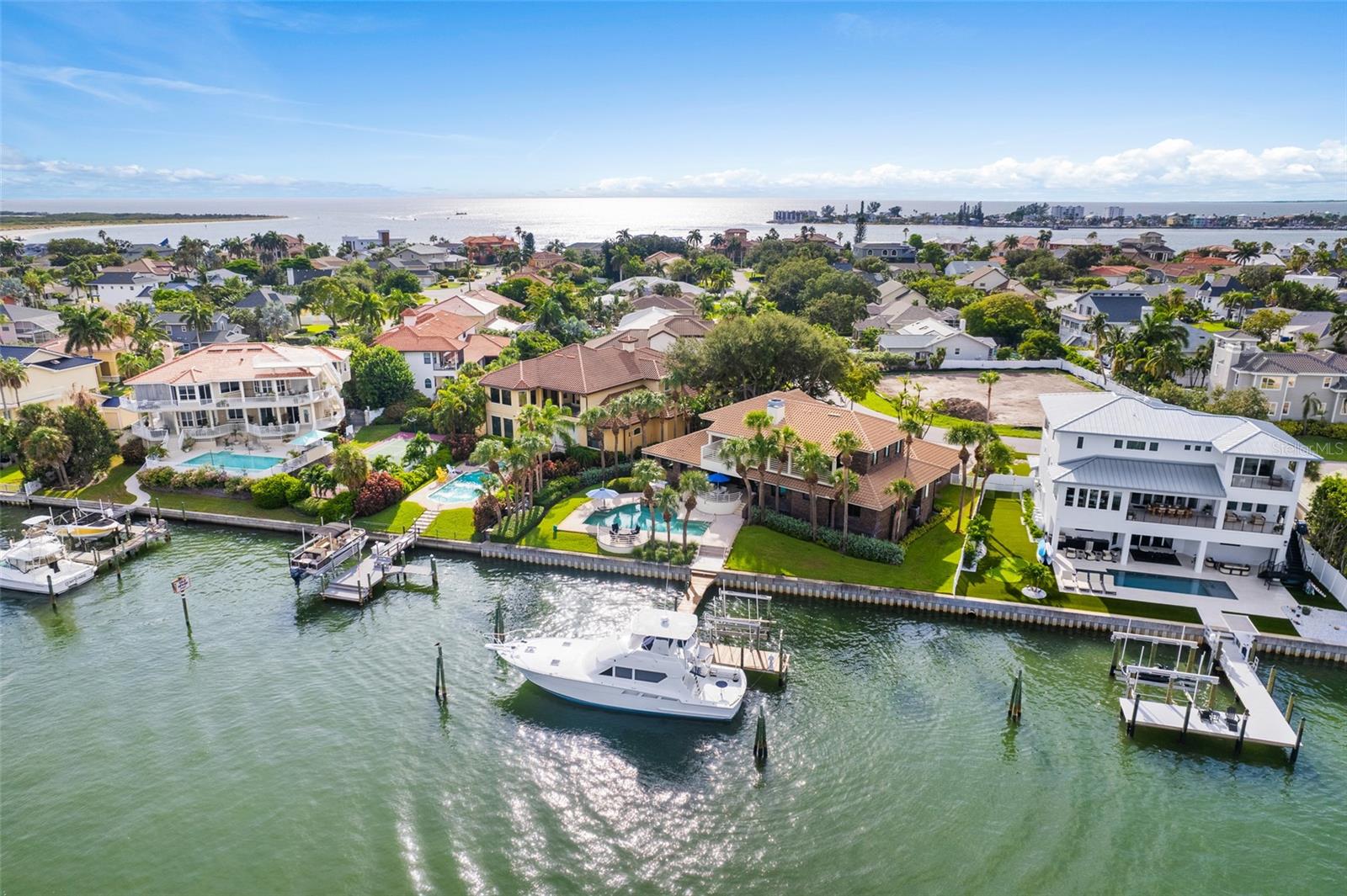 Bem-vindo a uma bela casa à beira-mar na cobiçada Tierra Verde. Esta estrutura única e contemporânea de tijolos desfruta de uma presença imponente de 133 pés de fachada ao longo do prestigiado Grande Canal. Este local único oferece vistas deslumbrantes e a capacidade de acomodar uma embarcação muito grande. Ancorada por uma enorme cozinha com ilha e amplo espaço de bar, a planta aberta conecta a sala de estar, a área de jantar e a cozinha, criando um espaço ideal para entretenimento em grande escala. A zona de refeições e a grande sala têm acesso através de portas de vidro deslizantes ao pátio traseiro com vista para a piscina e para a água. A ala norte do primeiro andar abriga quatro quartos ou qualquer outra coisa que você queira usar (home office, academia, sala de jogos). Há dois banheiros Jack e Jill compartilhados por cada par de quartos. Os quartos e banheiros circundam uma grande sala bônus (19X20) que atualmente está configurada como sala de mídia com assentos de teatro e TV de tela grande. O segundo nível é acessado por escada ou por um elevador conveniente. Quatro áreas ocupam o nível superior. Um terraço privado com vista para a água percorre toda a extensão do nível superior. O terraço é facilmente acessado a partir da suíte principal através de portas de vidro deslizantes que convidam você a entrar no ambiente sereno. Dois closets oferecem amplo armazenamento. O luxuoso banheiro privativo é um santuário de relaxamento, com pia dupla, box amplo e vaso sanitário privativo. Uma segunda sala bônus que inclui um pequeno bar/cozinha e banheiro completo ocupa a extremidade norte do nível superior. Atualmente está configurado como um estúdio de artista, mas tem sido usado como sala de bilhar e sala de troféus completa com armazenamento de armas e troféus de grandes jogos. A característica final do nível superior é uma grande sala com vista para o mar que tem acesso tanto pela sala bônus quanto pela suíte master. servir convenientemente como escritório doméstico ou berçário. Da grande sala chega-se à garagem para três carros por escada e hall onde passará por dois grandes armários, lembrando ainda que esta casa tem uma enorme arrumação. Os espaços ao ar livre são projetados para relaxamento e entretenimento. Um espaçoso terraço com vista para o deck, fogueira, piscina e spa, proporcionando o local perfeito para refeições ao ar livre, relaxar e festejar. Situada na principal comunidade à beira-mar do condado de Pinellas, esta casa oferece tudo o que se poderia esperar do estilo de vida à beira-mar da Flórida. Aproveite o acesso rápido e conveniente de barco ao Golfo do México, abraçando o auge da vida à beira-mar. Manutenção impecável do novo proprietário desfrutará dos benefícios de novas portas e janelas de impacto de furacão, um novo telhado e ACs recentes.