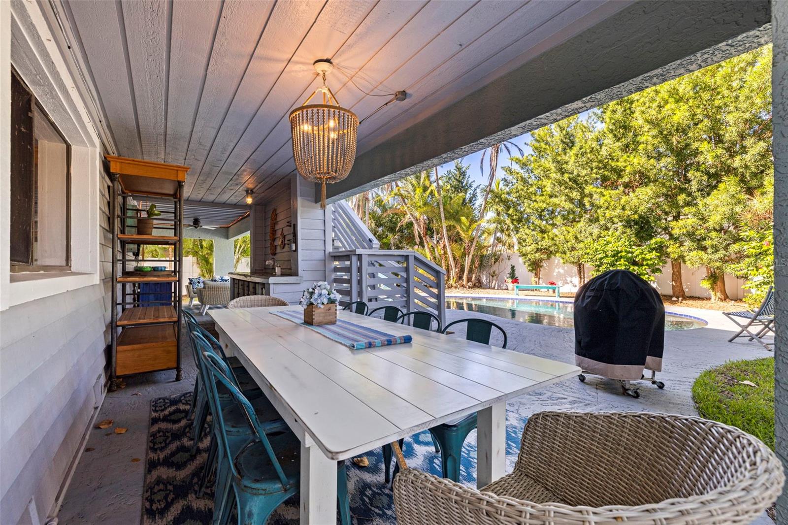 Experimente a verdadeira Flórida que vive nesta casa costeira, pronta, alta e seca, de dois andares, localizada no bairro de Sands Point, altamente procurado de Tierra Verde. Situado em uma comunidade silenciosa, mas muito vibrante e ativa à beira -mar, esta residência oferece conforto, privacidade e tranquilidade, tendo permanecido completamente seco através dos recentes furacões. A porta frontal acolhedora e azul clara se abre para tetos altos com vigas expostas, pisos de vinil de luxo com aparência de madeira e janelas abundantes que enchem a casa com luz natural. Uma porta deslizante se conecta perfeitamente à área da piscina, criando um fluxo fácil de interior externo. O nível superior principal oferece uma espaçosa sala de estar com uma lareira a lenha e uma cantora de jantar formal aconchegante, misturando-se à deslumbrante cozinha atualizada. A cozinha exibe bancadas elegantes, amplo espaço para o armário e uma ilha elegante que conecta as áreas de jantar e cozinha enquanto oferece assentos casuais convenientes. Ao virar da esquina, um espaçoso quarto de hóspedes com tetos dramáticos, um armário completo e um banheiro lindamente atualizado. A expansiva suíte primária no lado leste apresenta um recanto de escritório ou espaço para expandir o já generoso closet, além de um banho privativo impressionante com um chuveiro de grande porte. O nível mais baixo é acessível via escada e oferece outro quarto privado com banheiro privativo. Há uma família/sala de jogos bônus com acesso à piscina e uma garagem de dois carros com área de lavanderia, uma geladeira adicional, amaciador de água e muito armazenamento. Além do estacionamento da garagem, a grande garagem oferece espaço conveniente para vários carros, perfeitos para a família e os hóspedes extensos. De volta, desfrute de um oásis totalmente cercado com piscina no solo, amplo espaço para entretenimento, uma configuração ideal para uma cozinha divertida ao ar livre, além de um galpão escondido no canto para ferramentas e brinquedos aquáticos. O paisagismo é de baixa manutenção, exuberante e privado, abraçando perfeitamente o estilo de vida da Flórida. Esta propriedade também está idealmente localizada-apenas um passeio de bicicleta de cinco minutos na trilha local até a praia branca de Fort Desoto e o parque para cães. Localizado menos de 15 minutos para o centro de São Petersburgo, com fácil acesso ao I-275 e apenas 40 minutos para o Aeroporto Internacional de Tampa. Você também está a uma curta distância de restaurantes da ilha e lojas locais e muitos pontos de pesca locais. Agende sua exibição particular hoje! Elegante, confortável e cuidadosamente atualizado - este é um lar que realmente parece em casa.