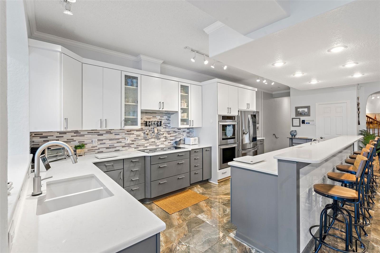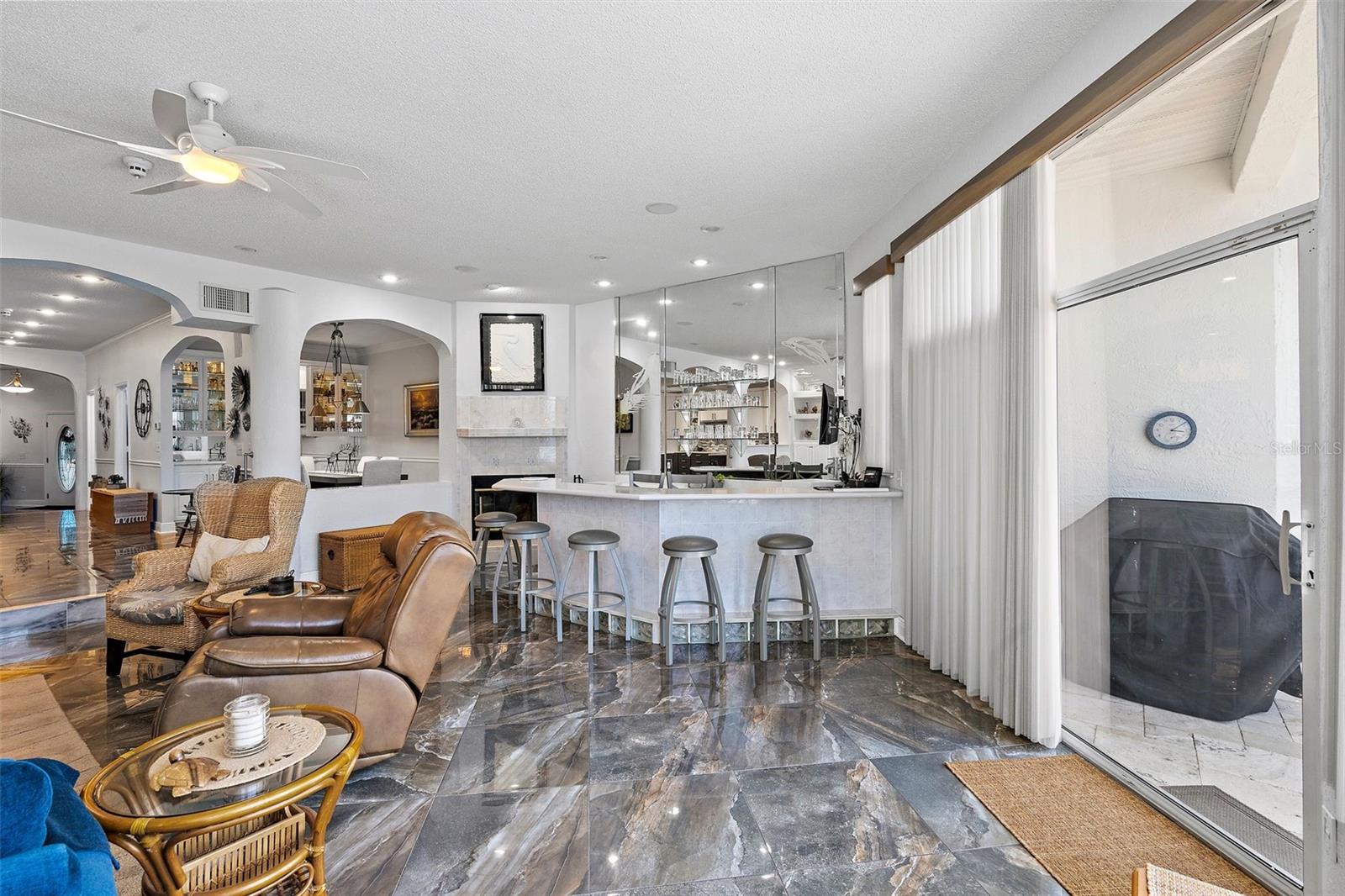 Experimente o epítome da vida costeira moderna nesta luxuosa residência urbana em Angler’s Wharf, situada na deslumbrante ilha de Tierra Verde. Com vista direta para o mar e para o Grande Canal, acesso direto ao Golfo do México e à Baía de Tampa, esta comunidade exclusiva de apenas 5 casas oferece uma sensação incomparável de tranquilidade e sofisticação. A entrada do grande hall recebe você em casa. Possui porcelanato e teto alto. Com 5 quartos, 3 e ½ banheiros, além de um amplo escritório, sala de bônus e sala de artesanato que pode facilmente se transformar em despensa de mordomo, esta residência exala amplitude e versatilidade. A grande sala de estar recebe você com tetos altos, luz natural abundante, lareira a lenha e bar completo com máquina de fazer gelo, adega refrigerada e refrigerador de bar. Receba os convidados na sala de jantar separada, ideal para jantares íntimos ou reuniões formais. A cozinha gourmet supera as expectativas com bancadas de quartzo, amplo espaço de armazenamento e eletrodomésticos de última geração, incluindo forno duplo e compactador de lixo. Uma longa barra de café da manhã permite uma interação perfeita enquanto prepara as refeições. Fuja para o seu retiro privado para relaxar e desfrutar de uma ótima noite de sono. O quarto principal é muito grande e tem varandas duplas para apreciar o pôr do sol e observar os barcos e a vida selvagem no Grande Canal. O banheiro privativo tem pia dupla, área de sanitário separada, box amplo e amplo closet com painéis de cedro e cômoda embutida. Saia para o pátio e para a área da piscina, perfeita para reuniões ao ar livre enquanto aprecia a vista do canal e da vida marinha que passa. Retire-se para o oásis do quarto principal com um grande banheiro privativo, duas varandas privativas com vista para a água e acesso a dois ancoradouros e à piscina comunitária. Trabalhe em casa sem esforço no escritório espaçoso com piso de bambu ou utilize o layout flexível para acomodar uma grande família ou suíte de sogros com entrada e escada separadas. Uma garagem anexa de grandes dimensões com oficina oferece amplo espaço de armazenamento para veículos e muito mais. Aproveite o estilo de vida à beira-mar com dois ancoradouros, um com elevador e outro com cais flutuante, água, eletricidade e estação de limpeza de peixes. Convenientemente localizado perto do Parque/Praia Fort DeSoto e da Praia de St. Pete, desfrute de várias opções gastronômicas e eventos comunitários durante todo o ano, tudo isso a poucos minutos da vibrante vida urbana do centro de São Petersburgo. Abrace o estilo de vida descontraído e vibrante de Tierra Verde, onde cada dia parece um retiro.