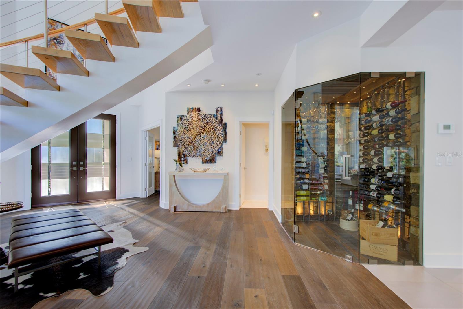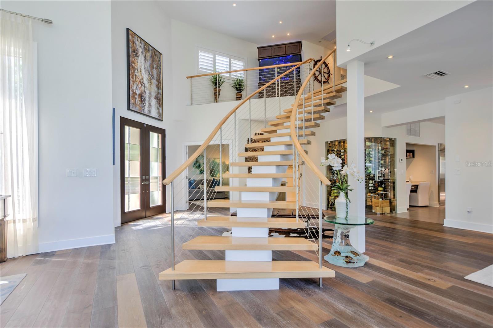 Redução de US $ 199.000 Esta magnífica casa contemporânea à beira -mar está situada nas águas abertas da Tierra Verde. A residência, parecida com uma nova construção, possui cinco quartos e cinco banheiros e meio dentro de seus amplos 4400 pés quadrados aquecidos, todos em um lote excedendo três quartos de um acre. Ao entrar, o hall de entrada leva a uma área de vida/jantar abundante com vistas para a água. Uma escada flutuante e uma adega de vidro em todos os vidro melhoram o fascínio do espaço principal. A cozinha/grande sala continua o tema de impressionantes vistas de água. A cozinha, o deleite de um chef, possui armários de estilo europeu, utensílios de aço inoxidável e um alcance de indução com um sistema de ventilação downdraft. Ele transita perfeitamente para a grande sala e o canto do café da manhã, ambos emoldurando a impressionante piscina infinita, espaço verdejante e, mais uma vez, vistas expansivas da água. O banheiro primário no andar de cima inclui uma área de estar, um quarto espaçoso com vista para a água, armários de entrada personalizados e um banheiro de grife com um chuveiro de entrada zero. Esta suíte também oferece um terraço para saborear o ar fresco e as vistas deslumbrantes. Todos os quartos adicionais no andar de cima são Ensuites. O Grand Backyard organiza uma piscina infinita de grandes dimensões, spa, fogueira e amplo espaço para entretenimento ao ar livre. A Lush Greenery fornece o cenário perfeito para jogos de gramado. Algumas etapas levam ao cais, equipadas com um elevador de 20.000 lb e muita água para o seu iate favorito. A propriedade oferece privacidade sem sacrificar as impressionantes vistas da baía, com 143 pés de orla. Tanto o paredão quanto o dock foram recentemente atualizados. Recursos adicionais são 800 pés quadrados de armazenamento, sistema de filtração de água, deck da piscina de travertino e despensa de grandes dimensões. A localização da casa fica a apenas 30 minutos de carro do Aeroporto Internacional de Tampa e a apenas cinco minutos das praias premiadas de Fort Desoto Park. A maioria dos móveis transmite, exceto o trabalho de arte, móveis de quarto primário, sofá na sala da família e carrinho de ferramentas destacadas na garagem.