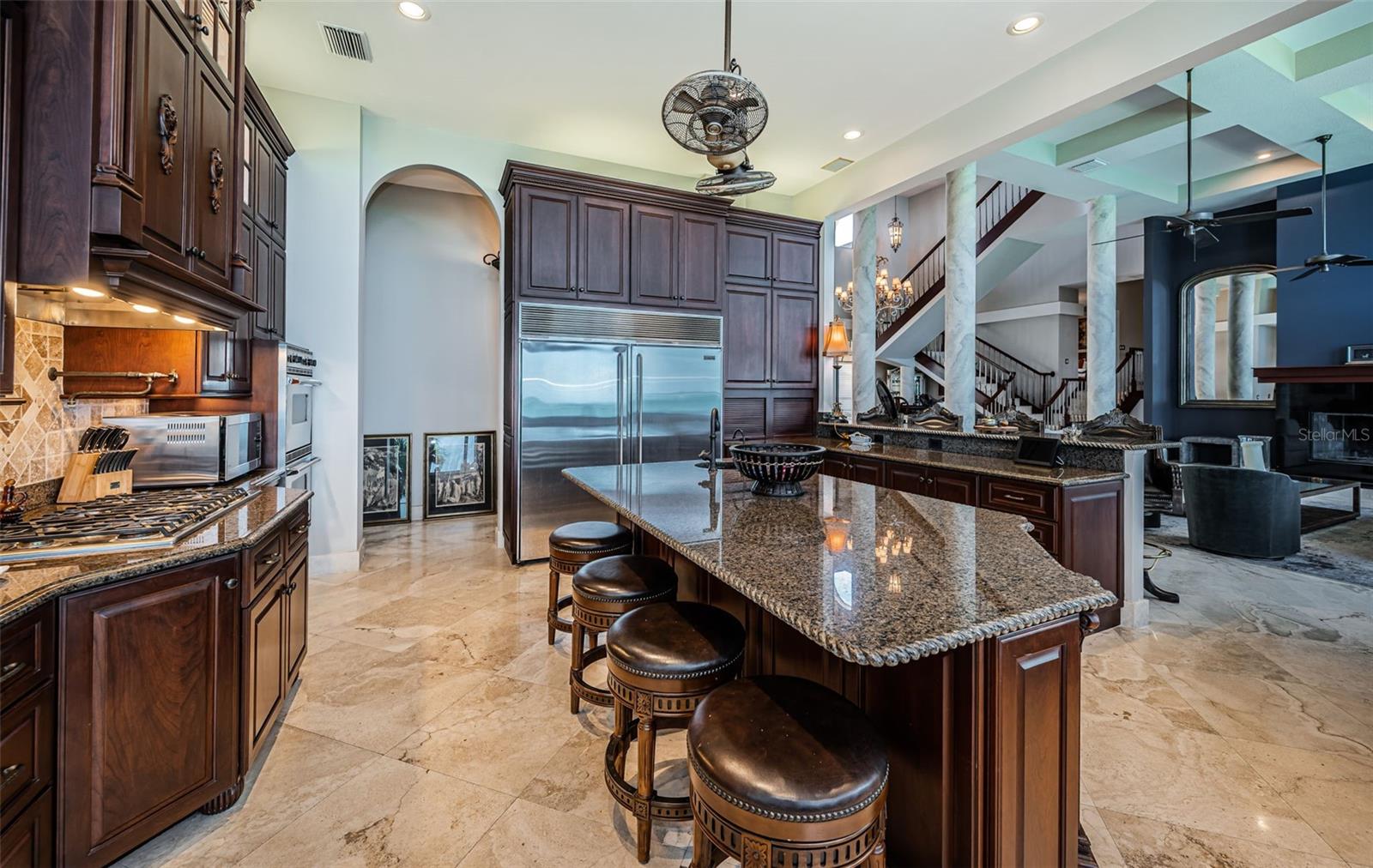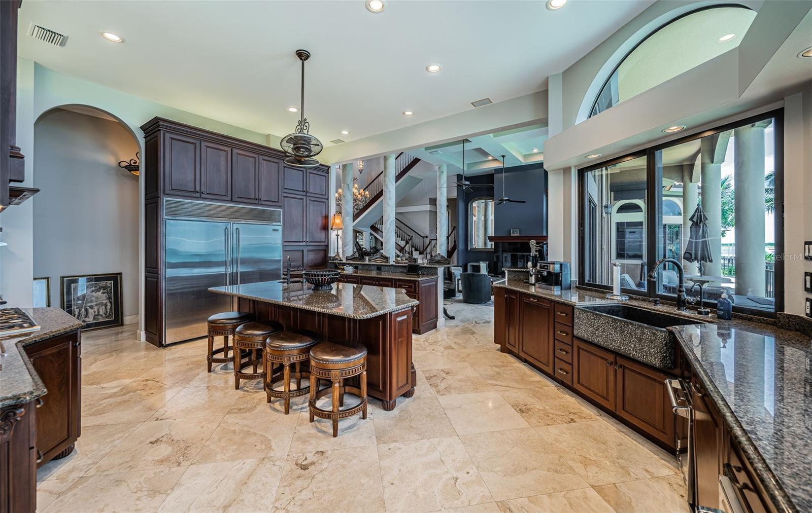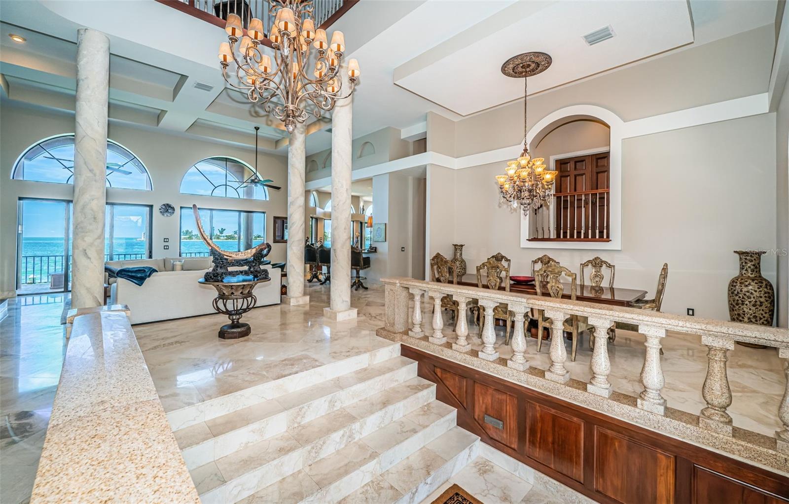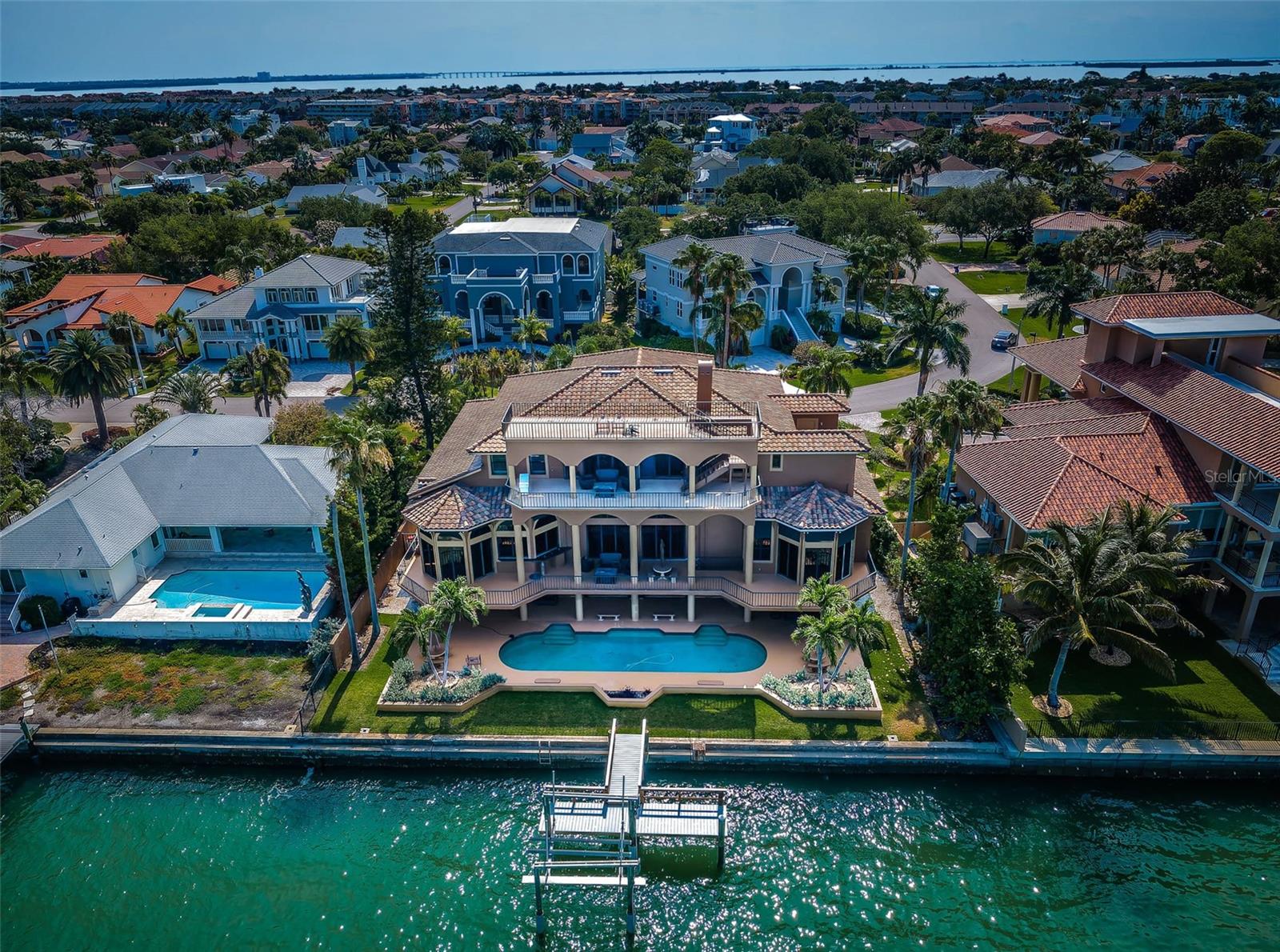 A localização de águas abertas mais raras e espetaculares de Tampa Bay é feita completa por esta magnficent Luxury Estate! Posicionado onde a via hidrográfica intracoastal encontra o Golfo do México, esta planta baixa concebida brilhantemente possui um impressionante 11.555 pés quadrados sob o teto. A Fabulous Brick Paver Circular Drive apresenta o ambiente imponente de uma porta Chachere de 16 pés de altura e sua linda entrada de mármore coberto. Surpreendente hall de altura de 30 pés de altura apresenta uma grande sala grande com seus ricos pisos de mármore de grande forma, colunas imponentes, balaxes/corrimãos de granito, iluminação radiante, distintos teto-trabalho e requintado mogno/cereja acabamentos-todos pessoas que se encaixam em um limite de mogno. Sua área de estar primária, com centro de entretenimento interno/lareira, gosta de embolsar portas de vidro deslizantes que se abrem para a varanda à beira-mar-criando um fantástico ambiente interior de fora. A enorme e suntuosa cozinha do chef gourmet - com lindos armários de cereja personalizados, superfícies de granito, utensílios viking, cozinha a gás, centro de bebidas, bar de café da manhã, centro de preparação para a ilha, despensa de mordomo e mesa de trabalho dedicada - possui visualizações de água brilhantes. Saia para a varanda à beira-mar de 80 pés de largura com assentos cobertos generosos e aprecie sua paisagem marítima. O espaçoso jantar casual à beira -mar é complementado por uma adorável área de jantar formal. Suíte do proprietário da frente do Golfo Privado, com tetos de 12 pés de altura, grande sistema de armário de cerejeira personalizado e luxuoso banho de mimos, abre para uma varanda à beira-mar conhecida por suas noites iluminadas pela lua sobre a água. 2 suítes grandes com banhos grandes e luxuosos, descansam em seus próprios níveis privados. O mezanino/loft massivo de nível superior suporta uma suíte de quarto à beira-mar privada, sala de teatro, banheiro completo com granito, varanda coberta de 260 m² e varanda à beira-mar com 42 pés de largura-perfeita para entretenimento noturno. A partir daqui, vá para um deck de observação de 300 pés quadrados que entrega quilômetros de vistas panorâmicas de tirar o fôlego do Golfo, Shell Key e Pass-A-Grille. O enorme nível inferior é um espaço ideal para jogos/fitness multiuso, com estacionamento de até 9 carros. Voltar, você descobrirá um deck de sala de estar coberto de 80 pés de largura, piscina grande aquecida, doca composta atualizada e elevador de barco com acesso imediato ao Golfo. Todas as persianas de construção em bloco, persianas eletrônicas e dezenas de recursos de valor agregado. Uma propriedade soberbamente construída e uma experiência de vida à beira-mar única com as melhores visualizações de água em Tampa Bay! Todas as dimensões são estimativas, comprador para confirmar.