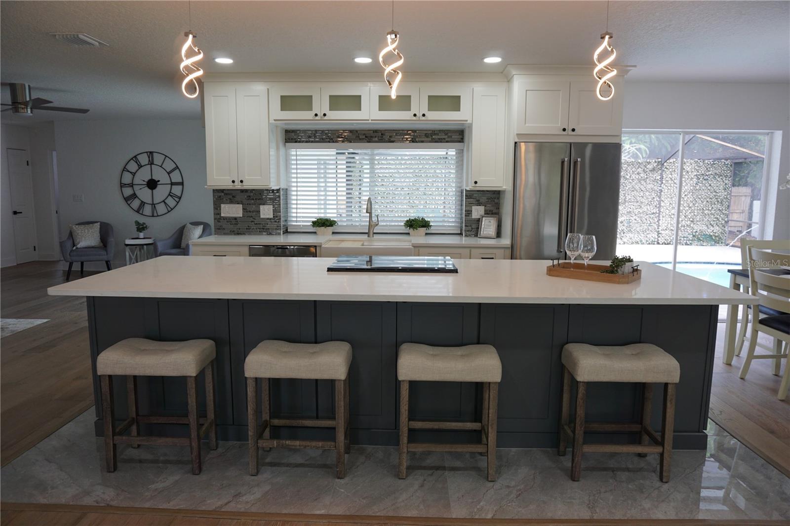 Luxuoso Oásis Tierra Verde - Totalmente Renovado. Experimente o epítome da vida costeira nesta deslumbrante casa de 4 quartos e 2 banheiros totalmente renovada. Com uma localização privilegiada na cobiçada comunidade Tierra Verde, esta residência oferece luxo incomparável e conforto moderno. O coração da casa é uma cozinha de tirar o fôlego com requintadas bancadas italianas Carrera Quartz, uma elegante pia de porcelana e elegantes armários Shaker cinza e branco. Um pacote de eletrodomésticos KitchenAid de última geração, incluindo uma geladeira com porta francesa de aço inoxidável, gaveta de micro-ondas, tampo de vidro Samsung e máquina de lavar louça GE Profile, eleva as experiências culinárias a novos patamares. Ambos os banheiros foram meticulosamente atualizados com luxuosas bancadas Carrera Quartz e pias duplas para um retiro semelhante a um spa. Descubra um interior espaçoso adornado com elegante piso de tábuas de madeira projetada por toda parte. Aproveite a planta aberta banhada por luz natural e aprimorada pela moderna iluminação LED. Os painéis solares instalados oferecem potencial para futuras economias de custos de energia. Um galpão conveniente no quintal oferece amplo espaço de armazenamento para seus itens essenciais ao ar livre. Fique tranquilo sabendo que esta casa está protegida por um telhado de metal e equipada com novos sistemas de HVAC e aquecedor de água quente. Cada detalhe foi cuidadosamente considerado para proporcionar uma experiência de vida agradável e sem preocupações. Mergulhe no melhor estilo de vida da Flórida com sua piscina privativa, perfeita para relaxar e se divertir. Isto é mais do que apenas uma casa; é um santuário costeiro. Não perca esta oportunidade de possuir um imóvel verdadeiramente excepcional.