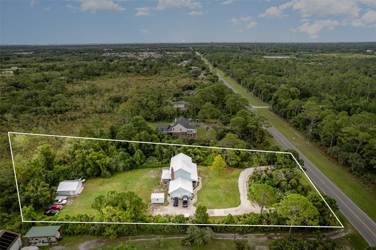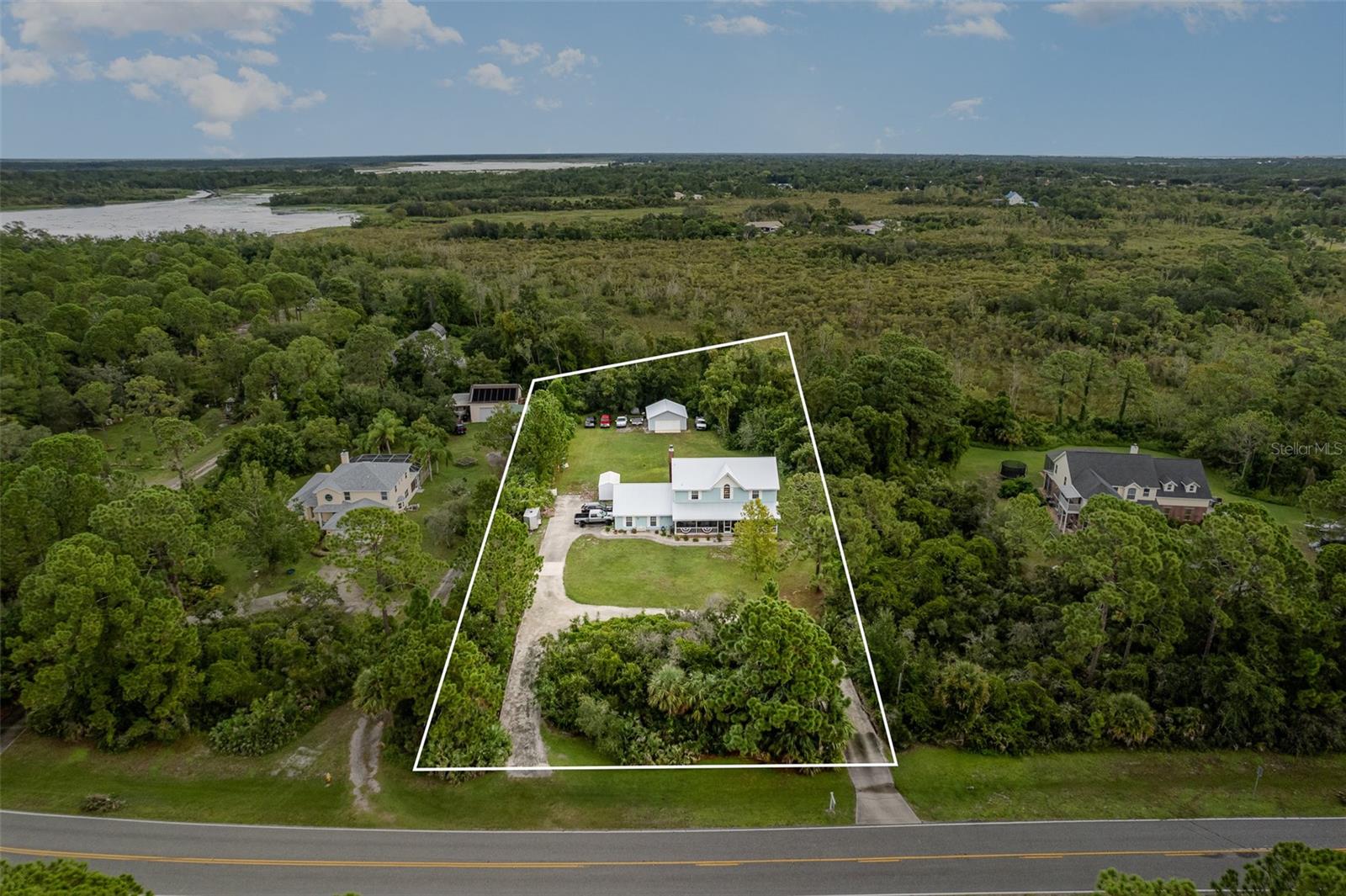 Bem-vindo ao Osprey Point. Localizada nos arredores serenos de Titusville, esta fazenda imaculada de dois andares oferece a combinação perfeita de charme campestre e conveniência moderna. Situada em 1,36 acres, a propriedade possui uma grande varanda frontal com tela, ideal para desfrutar do café da manhã ou do pôr do sol à noite. A espaçosa sala familiar, completa com uma aconchegante lareira de tijolos, oferece um espaço aconchegante e acolhedor para reuniões familiares. As atualizações recentes incluem novos carpetes nos quartos, novas portas francesas elegantes e elegantes bancadas de granito na cozinha. Um telhado de metal durável foi instalado em 2020, e a unidade de ar condicionado do térreo foi substituída em 2023. Luminárias LED com eficiência energética foram adicionadas em toda a casa. A propriedade dispõe de uma garagem ampla para dois carros com novas portas resistentes a furacões, bem como uma garagem individual para dois carros, perfeita para guardar veículos ou equipamentos externos. Um grande deck recém-construído na parte de trás da casa oferece um espaço fantástico para entretenimento Os moradores apreciarão a tranquilidade da extensa área cultivada e a privacidade que ela proporciona, ao mesmo tempo em que estarão a poucos minutos das comodidades da cidade, das atrações de Orlando e do Centro Espacial Kennedy. Os amantes da natureza vão adorar estar a 800 metros do Fox Lake Park, que oferece acesso de barco, instalações do parque, playgrounds, lançamento de caiaque e trilhas naturais e a cavalo.