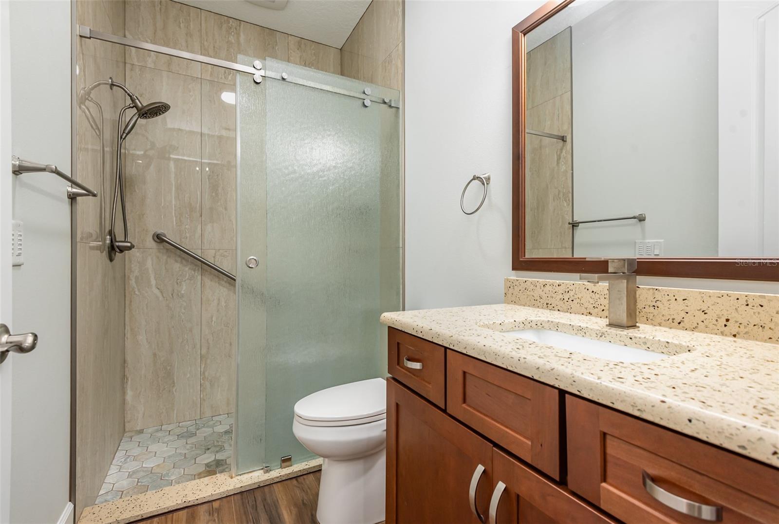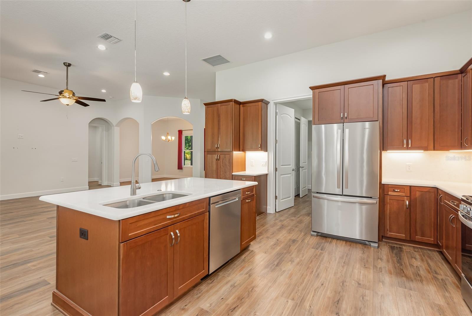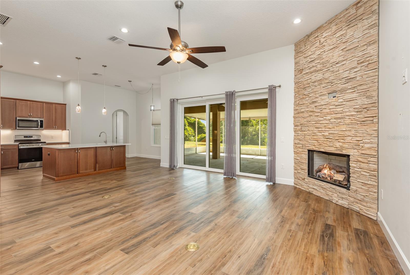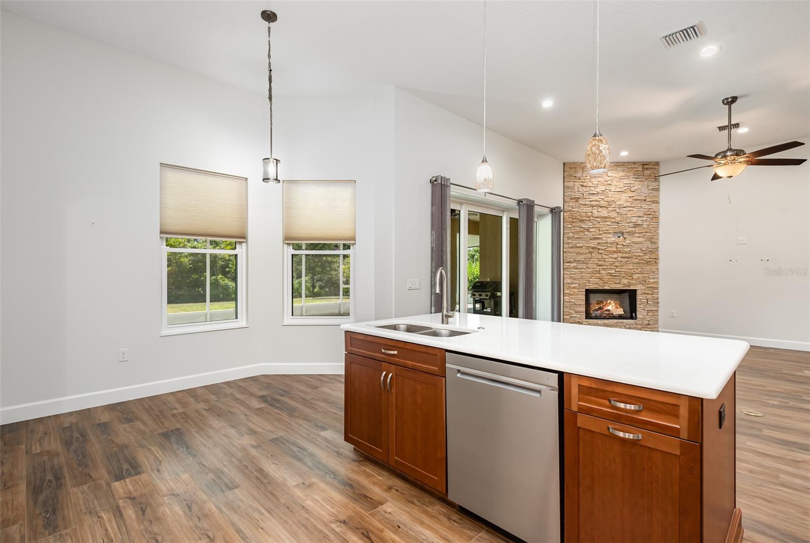 Descubra esta deslumbrante casa de blocos de concreto, construída em 2020, situada em 1 acre com vistas pitorescas do Santuário do Condado de Brevard. Esta residência construída sob medida inclui uma espaçosa suíte de sogros adjacente à enorme garagem para 3 carros. Com 4 quartos, 3 banheiros, a casa oferece amplo armazenamento, incluindo armários para casacos e roupas de cama. A sala de jantar formal e a aconchegante copa oferecem opções gastronômicas versáteis, enquanto a ampla área de estar possui uma lareira a gás para maior calor e ambiente. A cozinha está equipada com armários de madeira de 36'', balcões e backsplash de quartzo, eletrodomésticos em inox, balcão/ilha de pequeno-almoço e despensa. O banheiro principal possui closets para ele e para ela, um amplo box com chuveiro duplo, assentos e barras de apoio, além de pias duplas. Uma lavanderia interna inclui uma pia. A suíte inlaw dispõe de cozinha compacta com fogão, micro-ondas, conexão para geladeira, pia, balcão para café da manhã, sala de estar e banheiro completo com chuveiro embutido acessível para deficientes físicos. A casa também inclui janelas/portas de vidro de impacto e luxuoso piso de pranchas de vinil, com sistema de sprinklers no poço. Ao ar livre, uma vasta varanda nos fundos é perfeita para observar a vida selvagem em Salt Lake WMA, enquanto o espaçoso quintal é adequado para uma oficina, estacionamento para trailers, piscina e muito mais. Esta propriedade oferece uma combinação perfeita de luxo e funcionalidade. Você pode apertar um interruptor quando estiver no banheiro para começar a circular a água quente antes mesmo de abrir a torneira. Tanque de propano enterrado fornece gás para o fogão, lareira e churrasqueira. O banheiro de hóspedes tem uma combinação de banheira/chuveiro e uma porta que dá para o quintal para quando você colocar uma piscina. Tetos altos de 12' na casa principal. Não perca a oportunidade de personalizar esta casa excepcional!