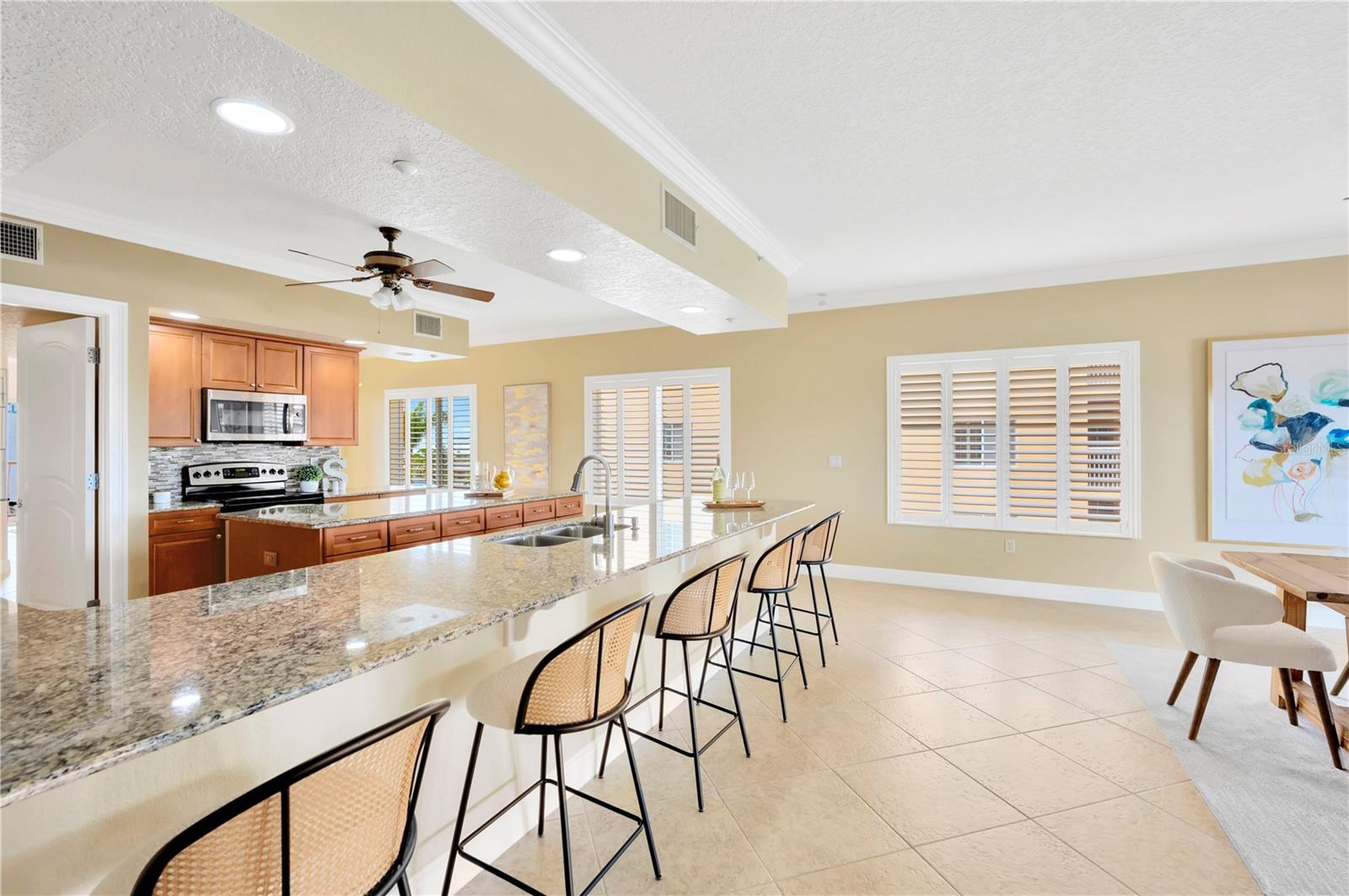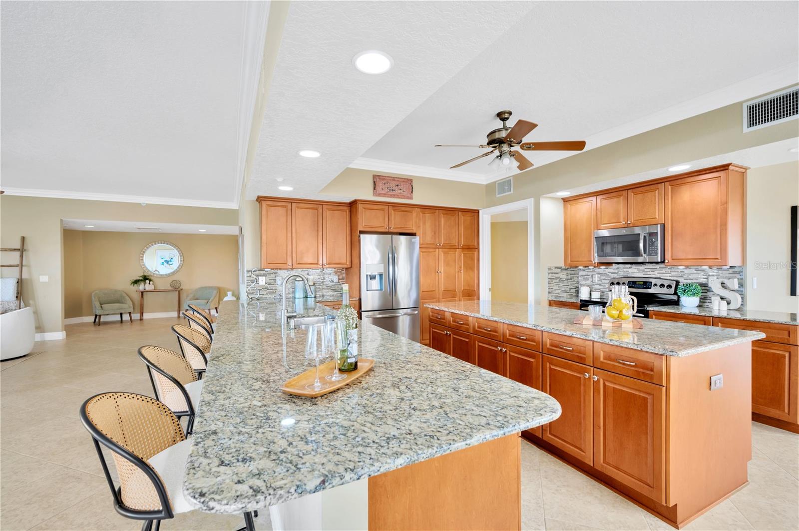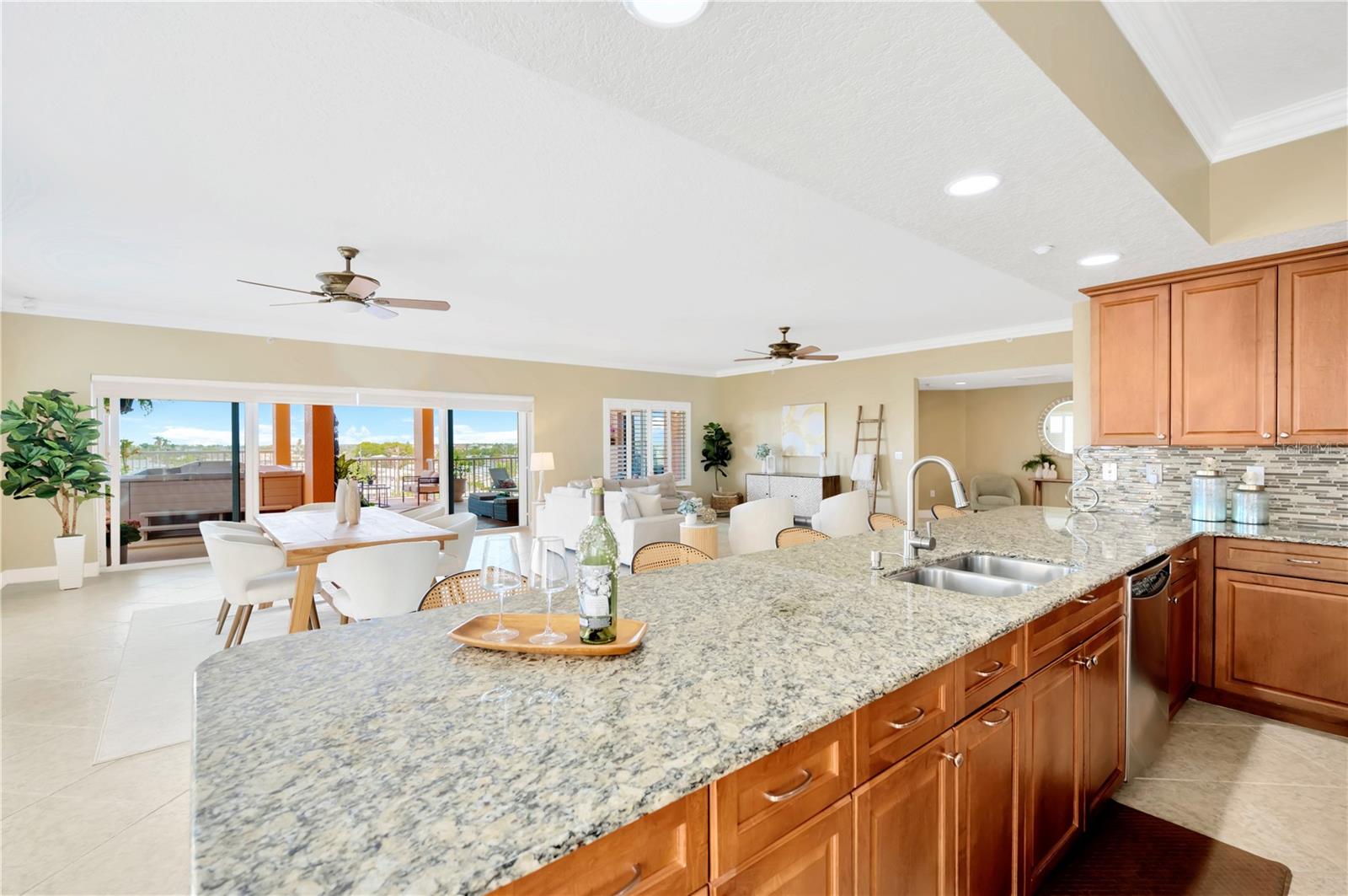 Bem-vindo ao seu pedaço do paraíso em Catalina Grand! Localizado na comunidade à beira-mar de Treasure Island, este condomínio requintado oferece o que há de melhor na vida costeira de luxo. Com pouco menos de 5.000 pés quadrados de vida interna/externa combinada, os destaques incluem 3 quartos, 3,5 banheiros, 2 salas bônus, amplas varandas dianteiras e traseiras, spa de natação, garagem privativa para 2 carros e rampa para barco com escritura com elevador de 10.000 libras. Entre no acolhedor lobby principal, onde o elevador abre diretamente para sua unidade. Entre e prepare-se para ficar hipnotizado pelas vistas amplas até onde a vista alcança. Amplas janelas inundam a área de estar com luz natural em uma planta de conceito aberto, perfeita para entretenimento. As espaçosas áreas de estar internas/externas fluem facilmente para a cozinha gourmet e para a área de jantar. Acabamentos de alta qualidade, incluindo bancadas de granito, eletrodomésticos de aço inoxidável, backsplash de pedra e vidro, armários de madeira com 24 gavetas extraíveis personalizadas, ilha de 25sf e bar de 15 pés elevam a cozinha ao sonho de um chef. Relaxe e descanse na suíte principal que foi projetada para ser um oásis sereno. Aqui, você acordará com o belo nascer do sol e o som suave das aves marinhas voando acima. Quer você tenha desfrutado de um dia relaxante na praia ou de um treino intenso, os chuveiros duplos do banheiro privativo e o chuveiro a vapor com 8 jatos criam uma experiência ultra-relaxante, pois fornecem nuvens de vapor para a melhor experiência de banho. O banheiro principal também possui uma luxuosa banheira de imersão, pia dupla e vaso sanitário com combinação de vaso sanitário/bidê Toto com controle remoto. Seus convidados se sentirão em casa nos quartos de hóspedes bem equipados, cada um com banheiro privativo, closet e vistas deslumbrantes da praia e das extensas águas do Golfo. O quarto traseiro também possui uma entrada separada para privacidade e conveniência. Cada quarto de hóspedes e a área de jantar formal têm acesso direto a uma varanda de mais de 200 pés quadrados que tem a melhor vista dos fogos de artifício da Ilha do Tesouro, das ondas suaves do Golfo e do pôr do sol deslumbrante que ilumina o céu. O verdadeiro tesouro da casa é a ampla varanda de 850 pés quadrados, onde as possibilidades são infinitas. Oferece sombra, sol, entretenimento e tudo o que você possa imaginar. É verdadeiramente o local perfeito para refeições ao ar livre, relaxar ao sol ou simplesmente apreciar a deslumbrante paisagem costeira. Saia e sinta a suave brisa do mar enquanto observa golfinhos e peixes-boi nadando abaixo. Seja para entretenimento ou simplesmente aproveitando seu oásis particular, o spa de natação para 10 pessoas oferece relaxamento e rejuvenescimento completos quando você quiser. As características adicionais incluem um bar separado para café/bebidas, lavanderia grande com pia e vários armários de armazenamento. As atualizações incluem sancas, venezianas, persianas duplas, CAT5, sistema de filtragem de água para toda a casa, controles de luz Lutron, termostato inteligente, som surround integrado, sistemas de armários personalizados, ventiladores de teto e muito mais. A comunidade é excepcionalmente mantida e inclui entrada segura no edifício, uma piscina cintilante à beira-mar, paisagismo exuberante e amplo estacionamento para hóspedes. Convenientemente localizada perto de lojas, restaurantes e entretenimento, esta casa oferece o que há de melhor em vida costeira. Não perca esta rara oportunidade de possuir um pedaço do paraíso em uma área frequentemente chamada de Sunshine City, com uma média de 361 dias de sol por ano! Agende hoje mesmo um tour privado para começar a viver o estilo de vida praiano que você sempre sonhou! Característica do quarto: Armário de linho no banheiro (quarto principal).