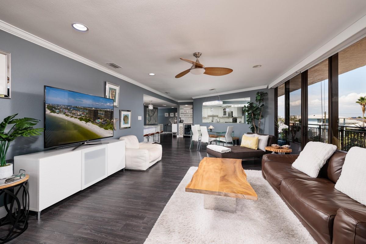 Entre em um retiro à beira-mar totalmente mobiliado e pronto para uso no Mansions by the Sea, na bela Treasure Island, Flórida. A Unidade 301 é uma unidade de canto rara e altamente cobiçada que oferece duas amplas paredes de controles deslizantes, apresentando vistas deslumbrantes do Golfo do México e da Intracoastal Waterway. Os controles deslizantes também se abrem para ter vista para a piscina cintilante e a praia imaculada, com persianas com controle remoto proporcionando funcionalidade sem esforço. A unidade possui mais de 23 metros de varandas envolventes contínuas, permitindo que você mergulhe diariamente nas vistas e nos sons da vida à beira-mar. No interior, você ficará cativado pelo interior lindamente atualizado desta casa de dois quartos e dois banheiros, que possui 1.200 pés quadrados de área de estar espaçosa e confortável. A sala de estar, a sala de jantar e a cozinha de conceito aberto fluem perfeitamente, criando um espaço acolhedor repleto de vistas espetaculares. A cozinha é uma delícia luxuosa, equipada com elegantes armários brancos, uma grande ilha com capacidade para quatro pessoas e eletrodomésticos de aço inoxidável de última geração. Um prático bar com adega refrigerada realça a sofisticação do espaço. O generoso quarto principal oferece acesso à varanda e vistas deslumbrantes para o mar, com banheiro privativo que oferece um retiro tranquilo, completo com uma relaxante banheira de hidromassagem - perfeita para relaxar após um dia ao sol. Além disso, a lavanderia interna da unidade é prática e conveniente. Mansions by the Sea oferece comodidades impressionantes, incluindo acesso direto à praia, uma linda piscina, academia, sala de jogos, clubhouse, quadras de tênis, quadras de pickleball e muito mais. A gestão no local aumenta o apelo da comunidade. Além disso, com subsídios de aluguer de 30 dias, esta propriedade oferece a flexibilidade de ser utilizada tanto como uma escapadela pessoal como como uma oportunidade de investimento. Agende sua exibição privada hoje e seja bem-vindo ao lar!