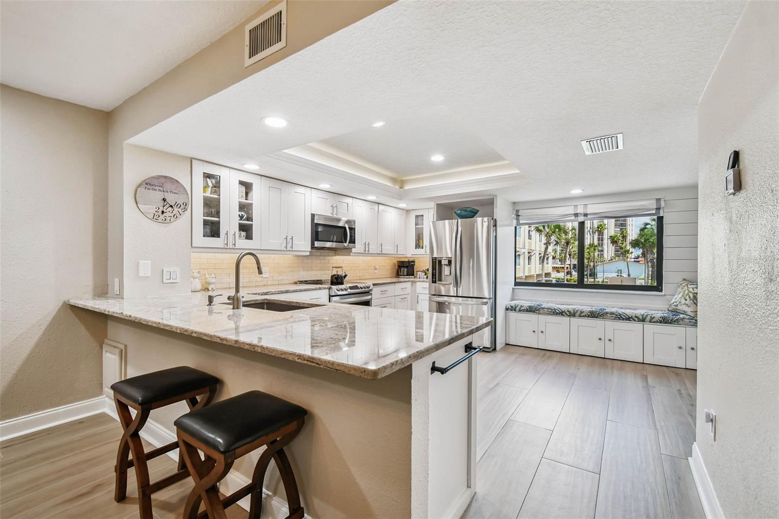 Townhome/condomínio à beira -mar - Aldeias da Ilha Paradise, deslumbrante moradia à beira -mar, oferecendo marina completa e vistas intracoastais! A área de estar de conceito aberto possui tetos altos, lareira com rosto de pedra, iluminação atualizada e portas de vidro deslizantes que levam a uma varanda privada para golfinhos e assistir ao pôr do sol. A cozinha inclui bancadas de granito, armários de agitadores, utensílios de aço inoxidável, despensa, estantes embutidas e assentos de banquetes encantadores, com iluminação de destaque sob armários. No andar de cima, as portas de entrada em estilo francês se abrem para a espaçosa suíte primária, que possui tetos de cedro abobadados, armários personalizados, piso de bambu e banheira semelhante a um spa com banheira e chuveiro de walk-in. Impacto portas de vidro deslizante com impacto e tratamentos para o obturador da plantação, dobre o lado para maximizar a luz e o cenário naturais. As vistas da água do seu deck privado com vista para a área do porto e da marina oferecem um espaço relaxante para capturar o pôr do sol. A suíte de hóspedes do segundo quarto inclui um banho completo, área de estar pitoresca, armários de parede a parede, tratamentos de janelas e prateleiras de sotaque. Lavanderia, armazenamento e acesso do sótão Complete o nível superior. O nível mais baixo oferece uma sala de bônus/covil, garagem de um carro grande e pátio para vistas de água tropical em close up do intercoastal. Village of Paradise Island, uma comunidade vibrante de orla, projetada para todas as gerações. Passeie no seu carrinho de golfe, traga seus animais de estimação e desfrute da vida em estilo resort em casa. Oferece duas piscinas espaçosas com cabanas sombreadas, uma doca de pesca e um lançamento privado para caiaques e pedalinhos. Os entusiastas do barco têm acesso a 26 deslizamentos de águas profundas protegidas que acomodam iates e veleiros de até 45 '. Os SLIPs são arrendados exclusivamente aos residentes, com uma lista de espera curta, com apenas US $ 4/pés, incluindo água e eletricidade. Apenas uma curta caminhada ou passeio de bicicleta até Treasure Island Beach. O Treasure Bay Golf and Tennis Recreation Center fica ao lado e atualmente sendo reformado. Mudar-se pronto-seu estilo de vida à beira-mar aguarda! ** Novo HVAC 2024, aquecedor de água quente 2024, painel elétrico 2023 ** Animais maiores Ok ** O HOA inclui água, esgoto, lixo, reciclagem, internet e cabo básico, seguro (cobre externo, telhados, unidades A/c, áreas comuns) Reparos e manutenção (teto externo, tinta, solo, gutadores, lanchonetes).