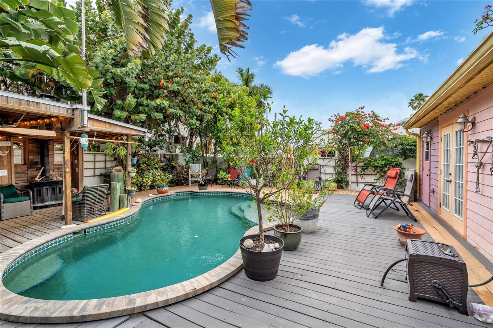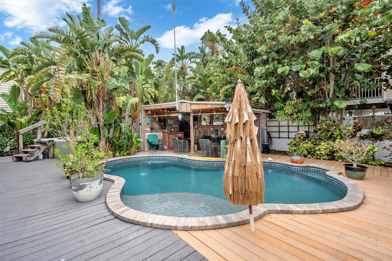 Bem-vindo ao seu oásis pessoal de conforto e estilo situado no bairro idílico de Sunset Beach! Este clássico bangalô de praia, conhecido como a 5ª casa construída na Ilha do Tesouro, exala charme e oferece uma fusão perfeita de funcionalidade e estilo praiano. Entre e deixe-se cativar pelo convidativo layout de conceito aberto, cuidadosamente projetado para promover uma sensação de união e entretenimento sem esforço por dentro e por fora. Embora listado como uma casa de 2 quartos, o "escritório" pode ser usado como quarto de hóspedes/3º quarto. Totalmente renovada em 2008, esta casa possui impressionantes tetos e paredes de madeira Cypress, bem como piso de porcelanato por toda parte. A cozinha possui lindos armários de madeira feitos sob medida e eletrodomésticos KitchenAid Pro Series de última geração, adicionando um toque de elegância aos seus empreendimentos culinários. Prepare-se para se surpreender ao entrar no paraíso do seu próprio quintal. O grande deck, a piscina de água salgada, o spa relaxante e o convidativo bar ao ar livre conhecido como "Soggy Dollar" criam um cenário idílico para criar lembranças queridas. Se você procura um mergulho refrescante, uma tarde tranquila à beira da piscina ou uma noite de entretenimento com seus entes queridos, este oásis no quintal atende a todos os seus desejos. Delicie-se com a fuga serena que este bangalô cativante oferece das demandas da vida cotidiana. Experimente o epítome da vida costeira ao combinar perfeitamente espaços internos e externos, confundindo os limites entre a natureza e a casa. Abrace o fascínio desta propriedade notável e descubra as infinitas possibilidades que esperam por você neste cenário pitoresco, localizado a apenas meio quarteirão da praia deslumbrante e da Intracoastal Waterway. Além disso, uma rampa pública para barcos está convenientemente localizada a apenas um quarteirão de distância, atendendo às suas aventuras náuticas.
