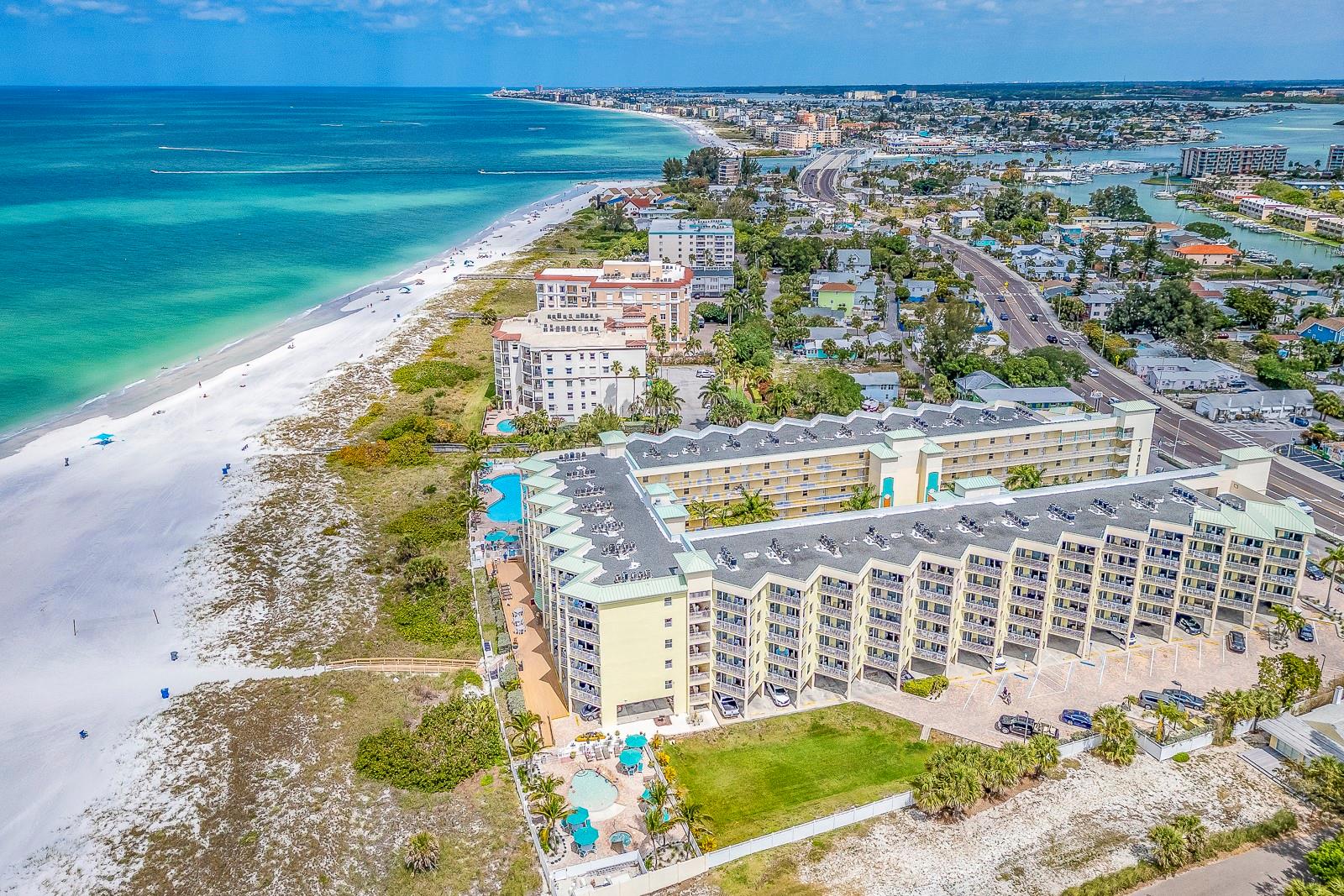 Quer diversificar sua carteira de investimentos? Este é o único! Perfeitamente situado na bela Ilha do Tesouro, este condomínio à beira-mar de 2 quartos e 2 banheiros está localizado em Sunset Vistas, um resort gerador de renda bem conservado! Destaque-se entre as demais unidades com Móveis e Decoração Costeira Personalizados. Esta unidade é oferecida totalmente mobiliada e pronta para uso. Renda de 2023 próxima a US$ 75 mil e o proprietário usou vários dias de aluguel de primeira linha. Sunset Vistas permite uma gestão autogerida, fora do local à sua escolha, ou uma gestão completa no local, permitindo alugueres de curta duração. O resort oferece bar Tiki, café e academia no local, 2 spas, grande piscina aquecida e piscina infantil separada. É claro que os pés na areia da renomada Treasure Island Florida geram renda enquanto você relaxa na praia. Os proprietários podem ficar 90 dias completos por ano!