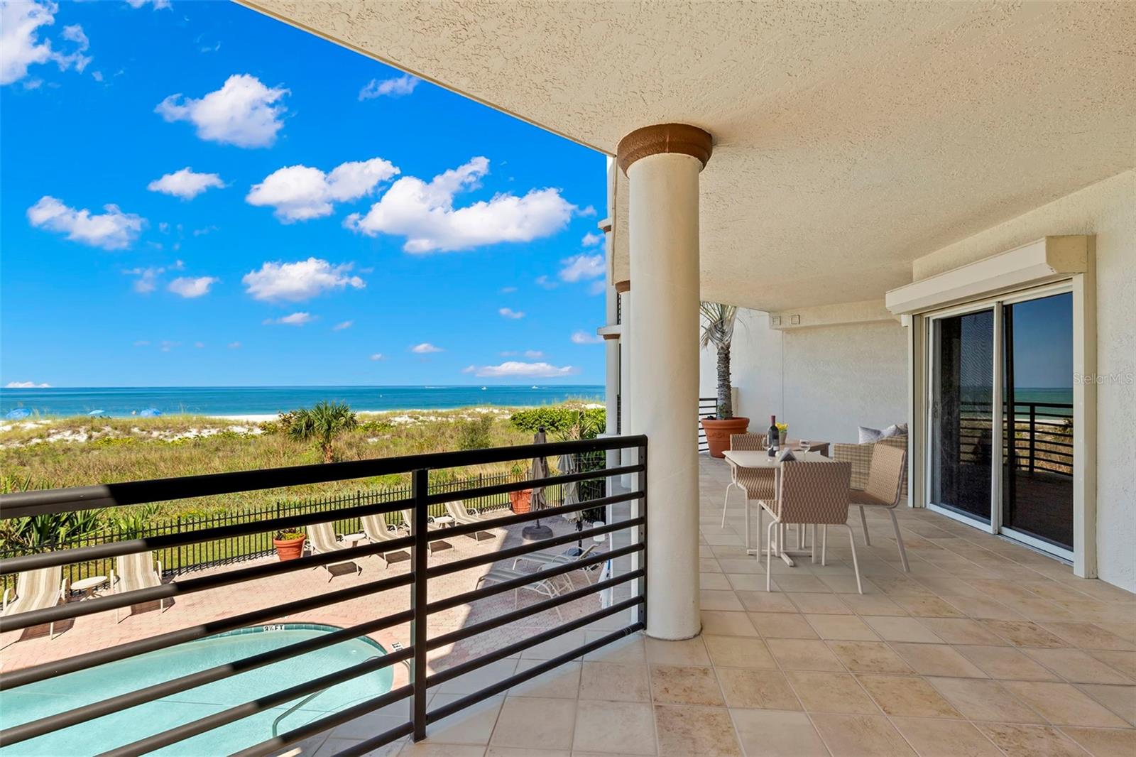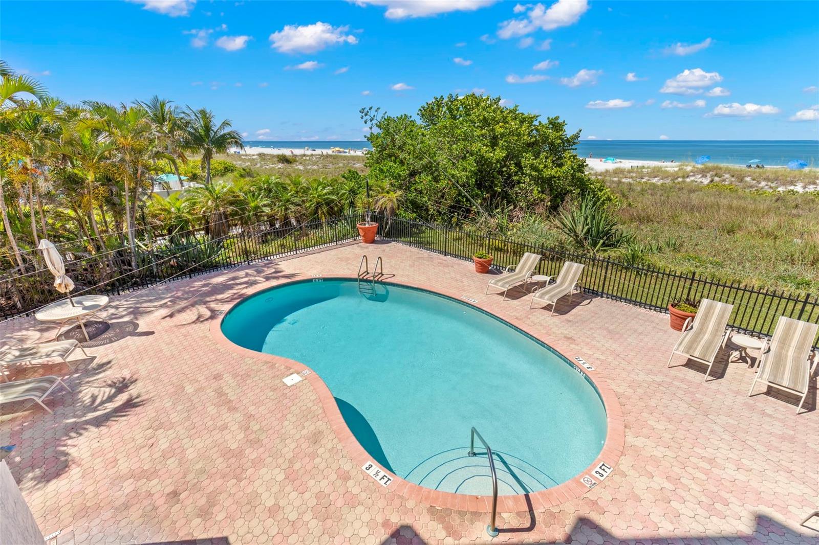 Uma ou mais fotos foram virtualmente encenadas. Paraíso, tranquilidade e elegância absoluta aguardam nesta residência em frente ao golfo, “The Marquesa”. Esta comunidade de edifícios de 17 unidades em estilo boutique está situada exclusivamente nas imaculadas praias de areia branca e açucarada da Ilha do Tesouro. O condomínio oferece um lobby seguro nesta unidade de canto sul do primeiro andar com sua própria entrada no pátio privado. A residência vem com garagem pessoal para um carro e acomoda uma abundância de vagas de estacionamento adicionais para seus convidados. Vistas panorâmicas abundam nesta planta espaçosa e aberta, com 2.659 pés quadrados de área útil projetada para o comprador mais exigente. Diversão impecável neste condomínio com grandes áreas de estar/jantar com tetos de 10' e janelas adicionais para contemplar o golfo brilhante e as vistas beijadas pela areia! Magnífica cozinha com eletrodomésticos Kitchen Aid mais recentes em aço inoxidável e balcão para assentos adicionais. O majestoso quarto principal fora da área de estar proclama o que há de mais vistas incríveis do golfo com banheiro privativo equipado com pia dupla, dois closets, sanitários duplos, banheira de hidromassagem e chuveiro separado. Imagine acordar com o som suave das ondas quebrando na costa. Seus convidados ou familiares irão apreciar seu próprio espaço separado com dois quartos muito grandes com closets e banheiros privativos para sua privacidade. Ar condicionado Trane mais recente instalado. Aproveite a convidativa piscina privada aquecida ou faça uma curta caminhada pela ponte pedonal de acesso à praia no lado sul do edifício. Marquesa, uma verdadeira joia de praia localizada na Ilha do Tesouro, é conhecida por suas águas cristalinas, praias de areia açucarada, pôr do sol extraordinário, passeios de barco, pesca, restaurantes e lojas. Fácil acesso ao centro de São Petersburgo, ao Aeroporto Internacional de Tampa e ao Aeroporto Internacional de São Petersburgo/Clearwater. Desfrute de um estilo de vida costeiro excepcional neste oásis luxuoso e único.