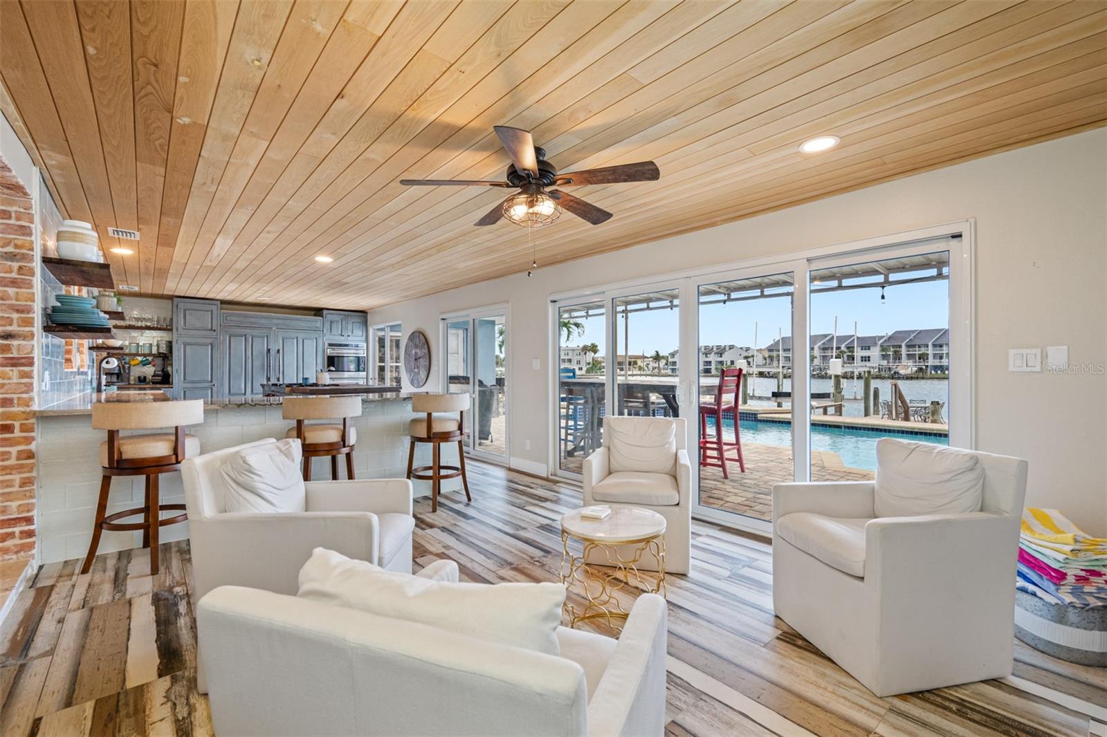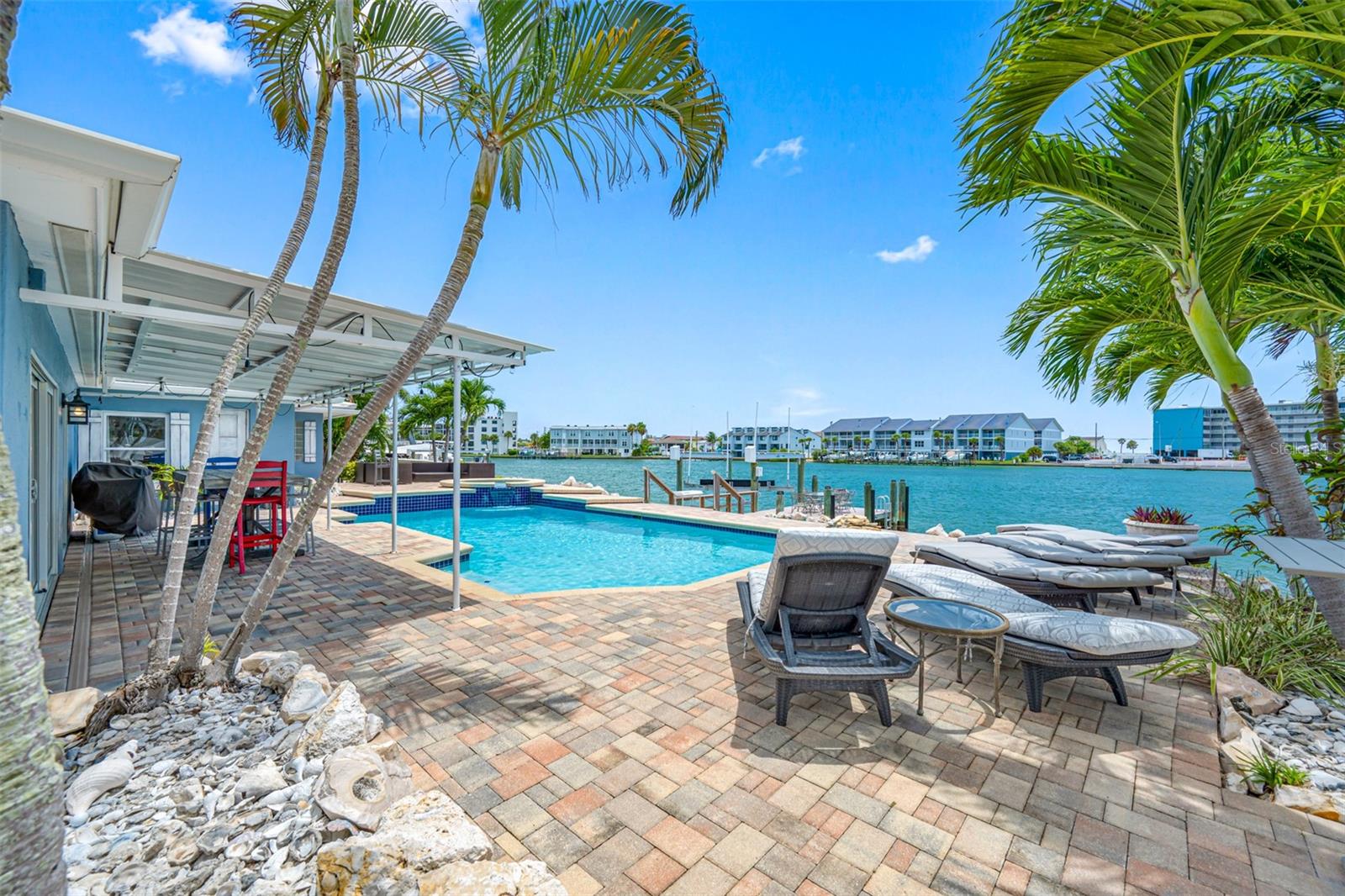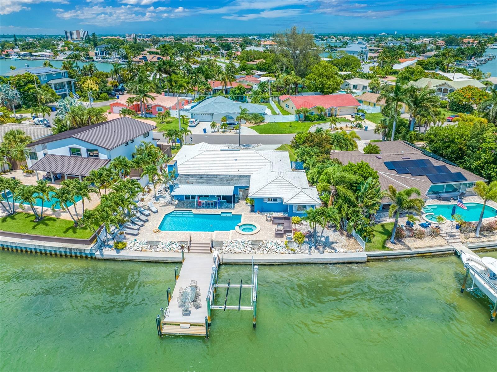 Bem-vindo à casa dos seus sonhos à beira-mar, localizada na muito procurada comunidade de Paradise Island. Com 25 metros de orla marítima, esta propriedade única e eclética se destaca das típicas casas pré-fabricadas, oferecendo um ambiente praiano único e inúmeros recursos de luxo. 3 quartos, 3 banheiros, escritório exclusivo/escritório/espaço artístico perfeito para trabalhar em casa. A cozinha do Gourmet Chefs é única. Feito com uma abordagem de designer, tem todas as atualizações de luxo que você pode imaginar, balcões de granito, grande ilha/bar, prateleiras abertas, pia de casa de fazenda, Butcher Block Island, eletrodomésticos de última geração, incluindo geladeiras e freezers Sub-Zero, linha Wolf, grelha , gaveta de aquecimento e máquina de lavar louça dupla Fisher & Paykel, cafeteria, refrigerador de vinho e despensa. Sala de estar espaçosa e aconchegante com iluminação embutida e espaço para 3 TVs grandes para a melhor experiência de entretenimento. Entre no seu oásis ao ar livre à beira-mar, completo com piscina de água salgada e jacuzzi, tudo cercado por uma paisagem tropical exuberante. Este é o lugar perfeito para relaxar com a família e amigos. A doca e deck multinível o tornam ideal para entretenimento. A grande doca com elevador de 13.000 libras é perfeita para os entusiastas da navegação. Esta casa extraordinária foi projetada para aqueles que apreciam as coisas boas da vida e desfrutam do pôr do sol noturno com os amigos em um cenário deslumbrante. Não perca a oportunidade de possuir este pedaço do paraíso.