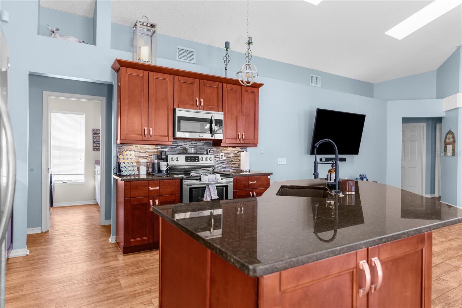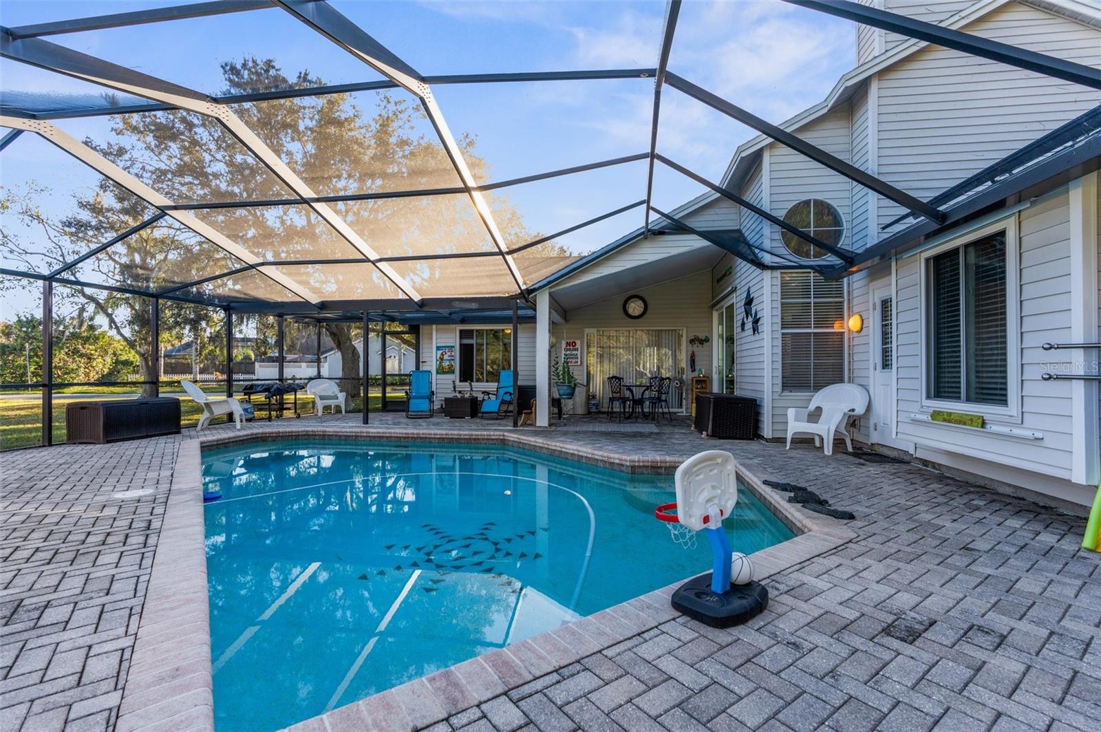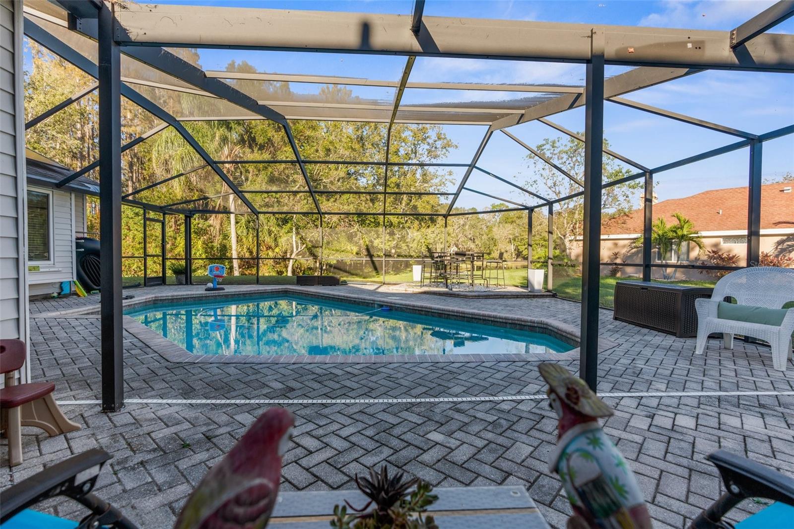 Bem-vindo ao lar! Descubra o charme desta bela casa de 4 quartos, 3 banheiros e garagem para 2 carros, situada no coração da adorável comunidade Wyndtree de Trinity. Situada em mais de 1/3 acre, esta propriedade possui um quintal sereno que se abre para um terreno de conservação, oferecendo vistas tranquilas de um lago e a oportunidade de avistar veados, lontras, garças e outros animais selvagens. Esta casa apresenta uma planta aberta convidativa, ideal para entretenimento e vida cotidiana. Ao entrar, você encontrará uma cozinha espaçosa que é o sonho de um chef, completa com bancadas de granito, eletrodomésticos de aço inoxidável, forno de convecção, uma ilha com balcão para café da manhã, uma aconchegante copa e uma grande despensa. Esta área flui perfeitamente para uma sala familiar iluminada, adornada com três claraboias, uma parede de janelas e uma porta deslizante que leva a uma generosa varanda coberta e uma piscina enorme. Esta casa é movida a energia solar, oferecendo energia solar ecológica e sustentável, sem conta de luz mensal - em média ~ US$ 35 por mês!! A luxuosa suíte do proprietário inclui um amplo closet e um banheiro privativo com box amplo, pias duplas com azulejos atualizados e banheira de imersão. Em toda a casa, você encontrará atualizações modernas, incluindo piso antiderrapante, pias, torneiras, espelhos emoldurados e acessórios e ventiladores elegantes. O quintal é um oásis privado, cercado por uma paisagem tropical, tornando-o o refúgio perfeito para relaxar e brincar - ideal para todas as idades, famílias e animais de estimação. Convenientemente localizada perto de lojas, restaurantes, instalações médicas, YMCA, campos de golfe e escolas de primeira linha, esta casa também fica a apenas 30 minutos das melhores praias e parques da região. Não perca a chance de ver esta joia - agende sua exibição hoje mesmo!