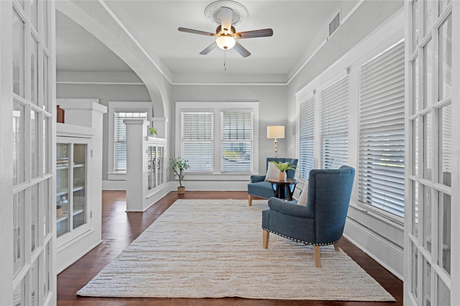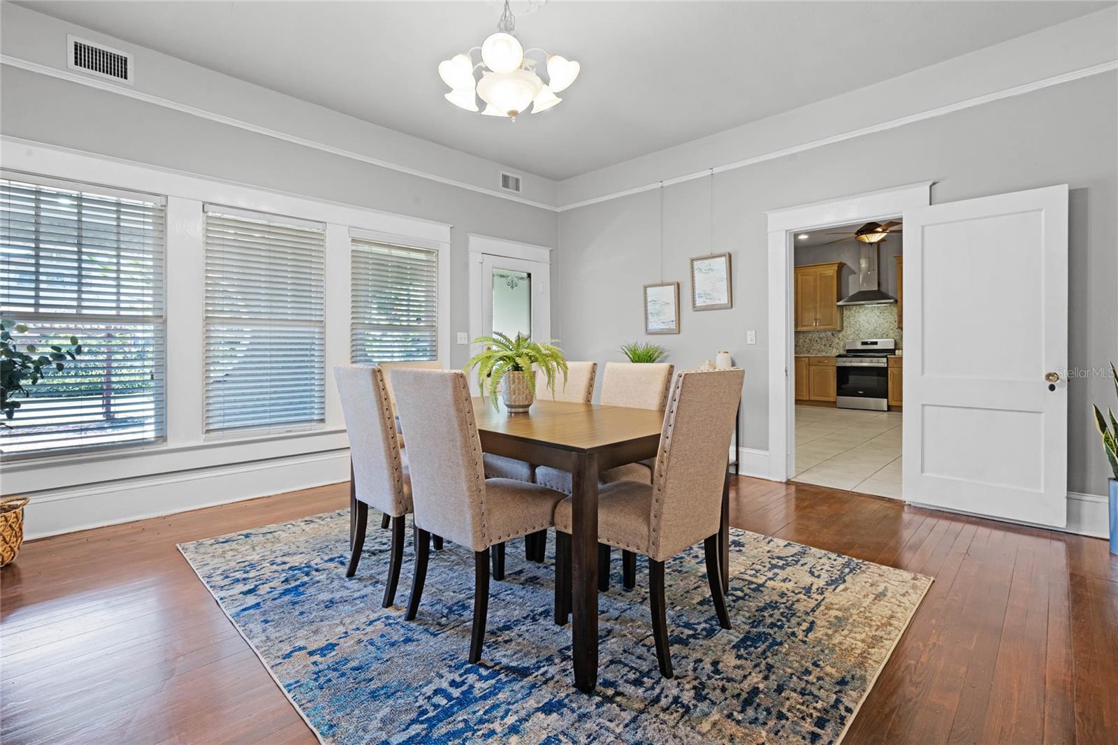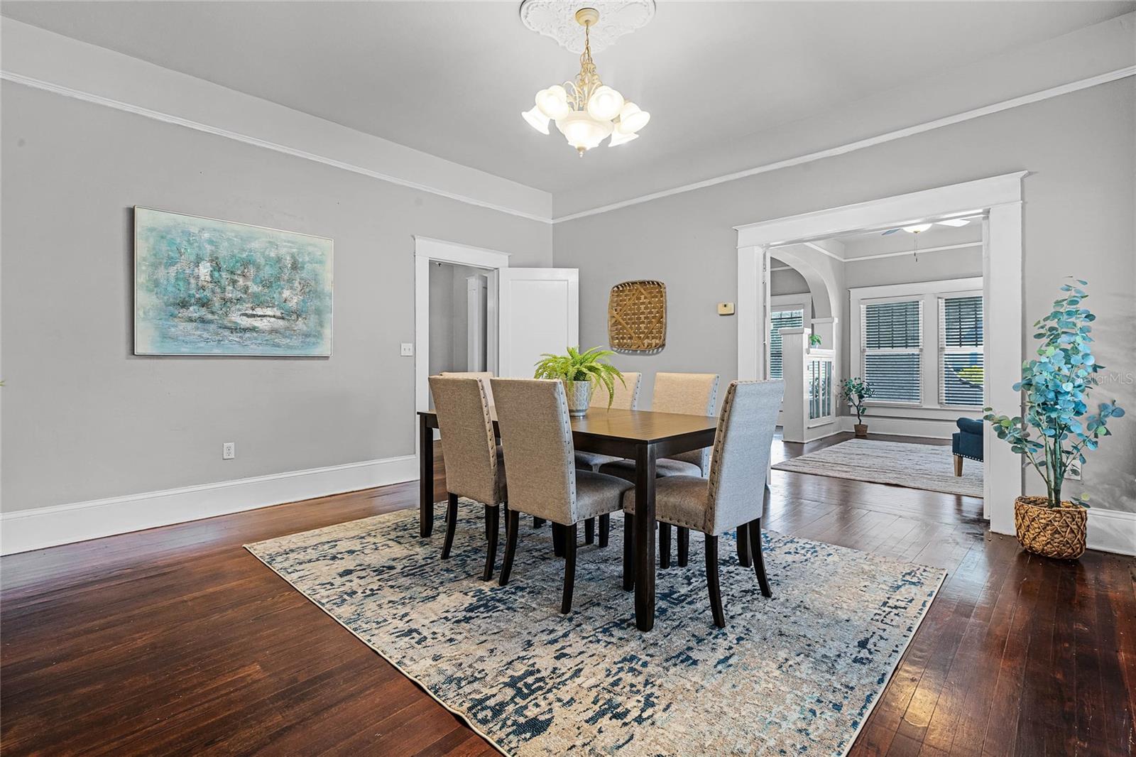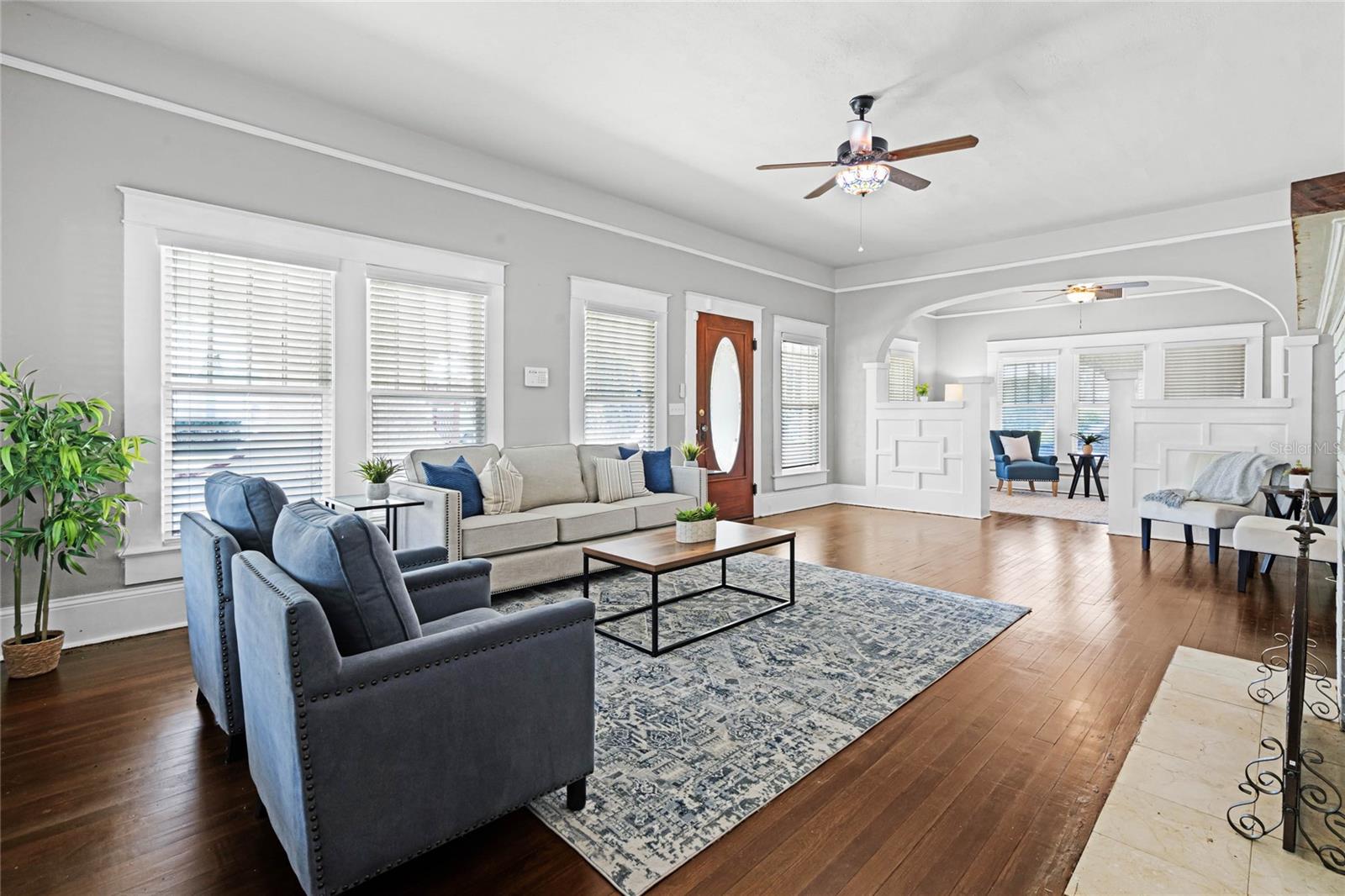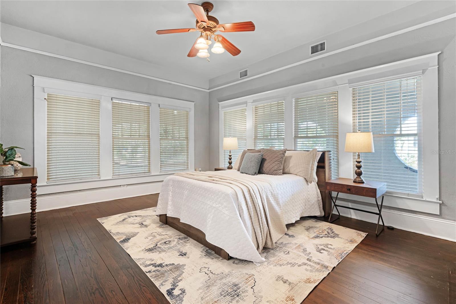 MELHORIA DE PREÇO: Esta casa, nas horas douradas da noite, chama por você... Sim, é imaculadamente mantida e sim, é linda a qualquer hora do dia. Independentemente disso, você simplesmente não pode perder a oportunidade de experimentar esta casa quando o sol começar a cair no céu. Traga seu relógio de bolso, mint julip e volte para uma época mais simples para esta exibição! Esta casa de artesão de 1920 impecavelmente preservada fica em um cobiçado LOTE DE CANTO e exala charme histórico. A varanda coberta envolvente (com vários balanços) oferece um refúgio arejado e sombreado do sol da Flórida. Dentro da porta da frente, você encontrará a combinação perfeita de detalhes históricos e comodidades modernas, desde pisos de madeira e lareira original até tetos altos, arcos, portas com painéis, maçanetas de vidro e uma abundância de marcenaria personalizada. Você (e sua seguradora) apreciarão que o encanamento e a parte elétrica foram atualizados de acordo com o código. A cozinha atualizada apresenta bancadas de quartzo atemporais com backsplash de laje, armários de 42 polegadas, eletrodomésticos de aço inoxidável (fogão a gás) e copa. Há muito espaço para sua ilha personalizada! Tanto a sala de jantar formal quanto a sala de estar oferecem acesso à enorme varanda envolvente para entretenimento. No final do corredor, o lindo quarto principal no térreo possui sete janelas e inclui banheiro privativo com banheira. Você se perderá na metragem quadrada do andar de cima, que oferece 5 quartos espaçosos e mais 2 banheiros completos (1 banheira com pés, 1 chuveiro). No andar de baixo, há também um escritório/escritório dedicado que pode se tornar outro quarto. No exterior, você encontrará um pórtico para o carro, e os hóspedes passam por uma das 2 treliças do jardim antes de chegar à varanda da frente. Existem muitos canteiros de flores paisagísticos e a propriedade é ladeada por árvores imponentes para muita privacidade e sombra. Umatilla é uma comunidade repleta de casas históricas e também de alguns pequenos lagos. Você estará a menos de 800 metros de escolas e parques, com inúmeras opções de compras e restaurantes a uma curta distância de carro. Esta cidade acessível está localizada a poucos quilômetros ao norte do Lago Yale e do Lago Eustis, parte da famosa cadeia de lagos da Flórida Central. Menos de 1 hora da praia também!