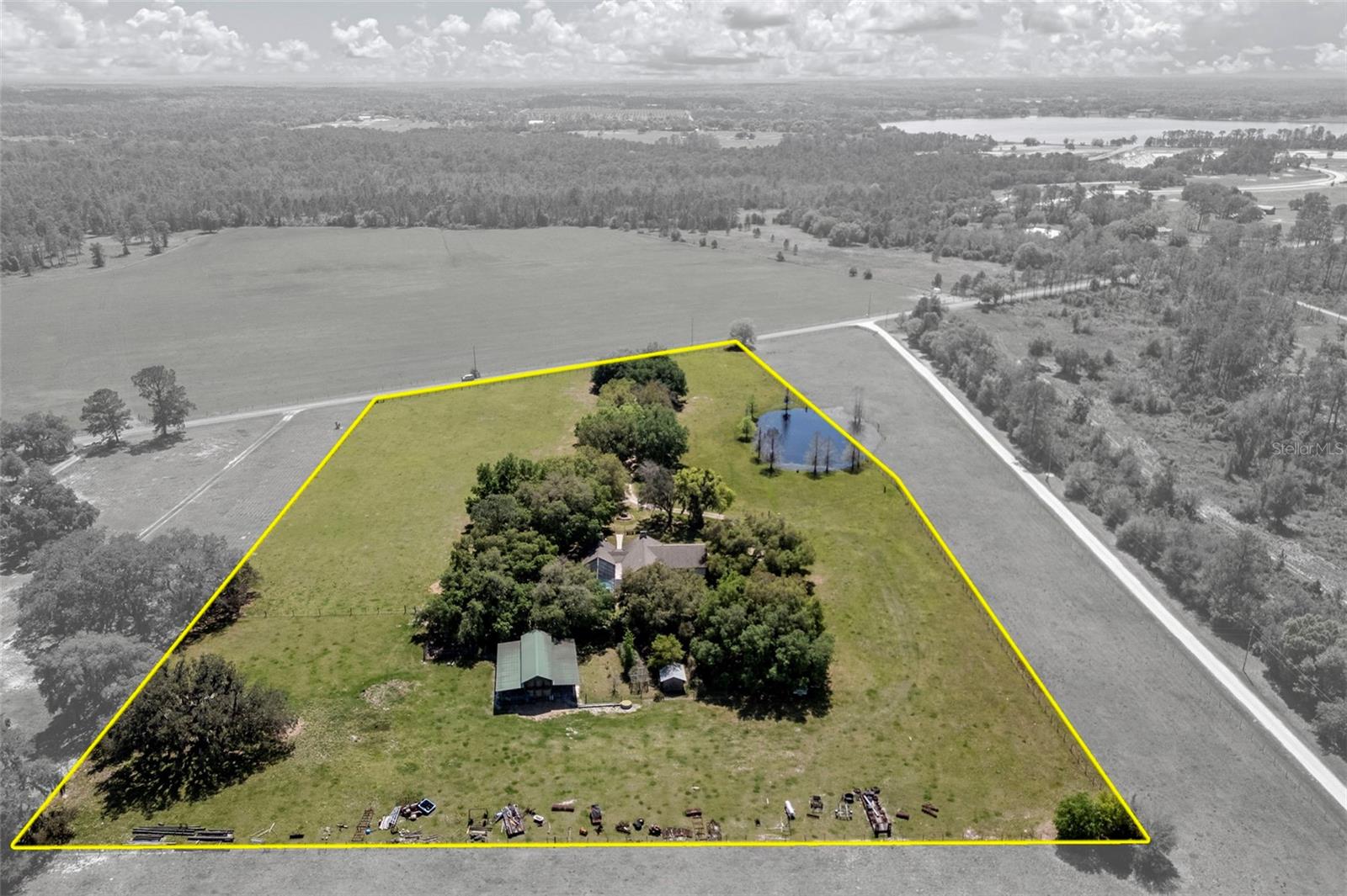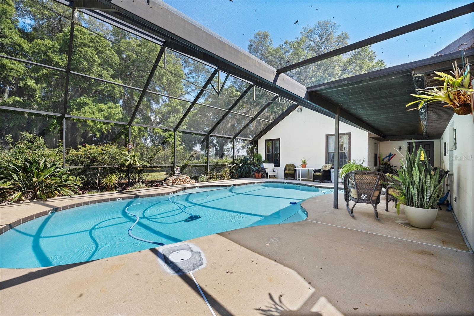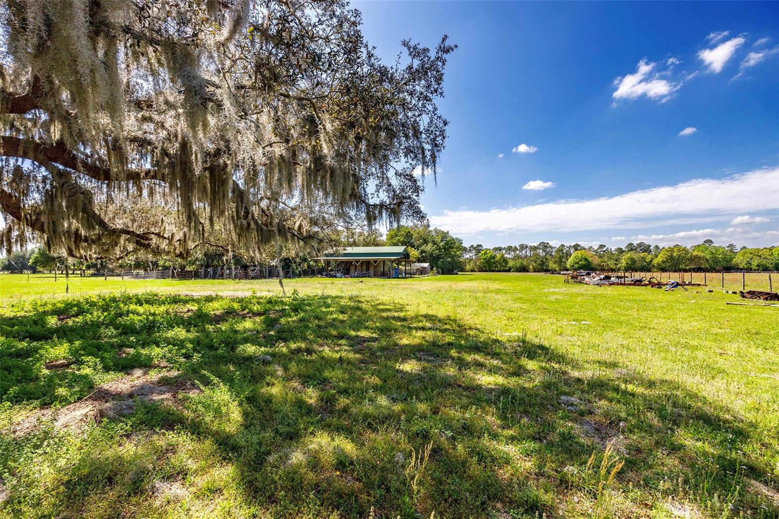 A vida na antiga Flórida é a melhor! 9,25 acres cercados para gado, cavalos, etc., com lagoa e celeiro ABAIXO DA AVALIAÇÃO. Uma longa entrada de automóveis com dossel de carvalho abre caminho para a casa de 4/3 da frente de pedra com paredes de cipreste Pecky e uma lareira de pedra na sala de família, além de uma segunda lareira de pedra na sala de estar., Piscina fechada com tela subterrânea com nova bomba de piscina Tem vista para os carvalhos maduros do quintal. A casa fica em 1 acre, tornando esta propriedade de 10,25 acres. Novo telhado em 2019, nova bomba de piscina, nova bomba séptica, novo campo de drenagem, bomba séptica, novo AC, tudo nos últimos 2 anos. A casa tem um 2º quarto com banheiro privativo que tem entrada privativa e pode ser usada como suíte para sogros ou suíte de hóspedes perfeita. Venha dar uma olhada e faça-nos uma oferta!!
