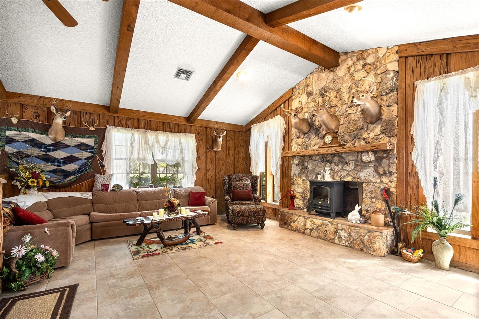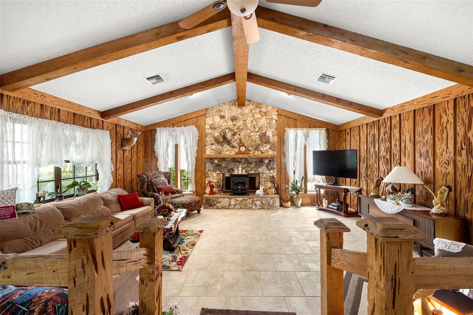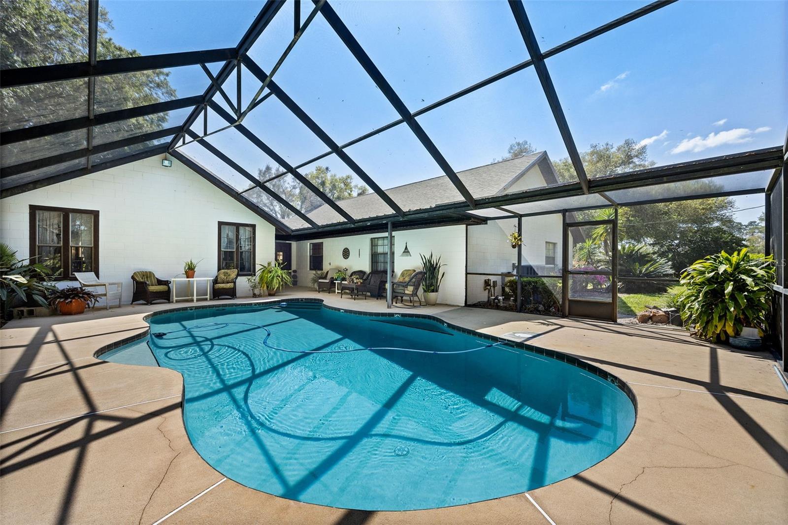 A vida na antiga Flórida é a melhor! 9,25 acres cercados para gado, cavalos, etc., com lagoa e celeiro ABAIXO DA AVALIAÇÃO. Uma longa entrada de automóveis com dossel de carvalho abre caminho para a casa de 4/3 da frente de pedra com paredes de cipreste Pecky e uma lareira de pedra na sala de família, além de uma segunda lareira de pedra na sala de estar., Piscina fechada com tela subterrânea com nova bomba de piscina Tem vista para os carvalhos maduros do quintal. A casa fica em 1 acre, tornando esta propriedade de 10,25 acres. Novo telhado em 2019, nova bomba de piscina, nova bomba séptica, novo campo de drenagem, bomba séptica, novo AC, tudo nos últimos 2 anos. A casa tem um 2º quarto com banheiro privativo que tem entrada privativa e pode ser usada como suíte para sogros ou suíte de hóspedes perfeita. Venha dar uma olhada e faça-nos uma oferta!!