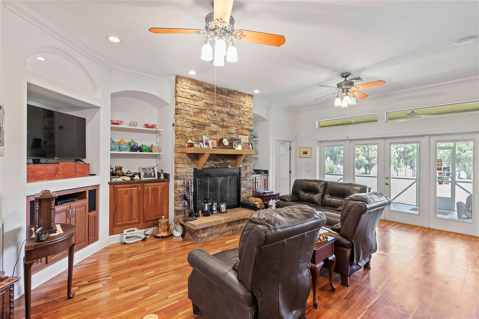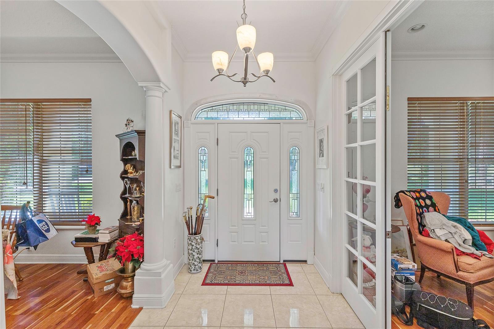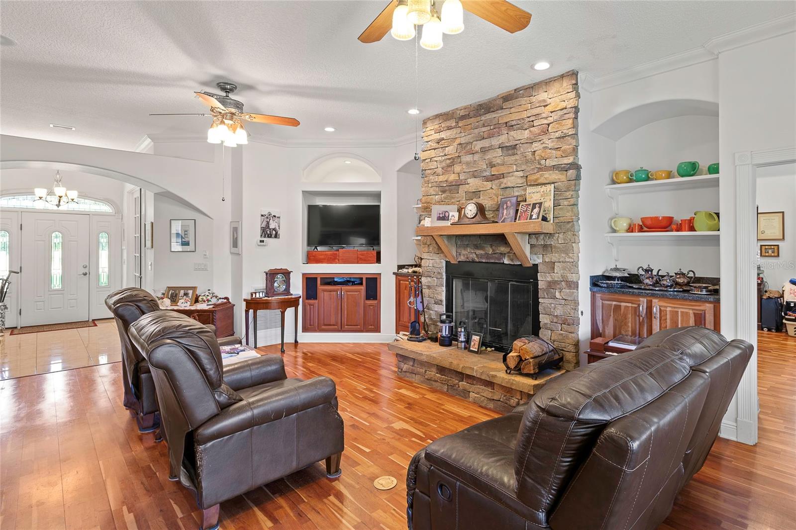 Bem-vindo à casa dos seus sonhos! Situada em mais de 2 acres à beira-mar ao longo das águas límpidas e cristalinas do Lago Crescent de 90 acres, alimentado por nascentes, esta obra-prima projetada por um arquiteto e construída sob medida oferece mais de 5.000 pés quadrados de espaço luxuoso. Ao entrar nesta deslumbrante residência de dois andares em blocos de concreto/tábua Hardee de 4 quartos e 3,5 banheiros, você será saudado pela elegância dos tetos de 3 metros e pela grandiosidade dos tetos de bandeja no quarto principal e na sala de jantar. Molduras de coroa, arcos arquitetônicos e colunas enfeitam toda a casa, complementados pelo rico piso de cerejeira. A espaçosa sala, com lareira a lenha e a gás com revestimento de tijolos personalizados, convida a noites aconchegantes com a família e amigos. A cozinha extragrande personalizada é uma delícia para o chef, ostentando uma ilha central, armários de cerejeira, ladrilhos e uma charmosa sala de café da manhã. A varanda dos fundos oferece uma cozinha de verão completa com fogão a gás, pia, geladeira, triturador de lixo, micro-ondas e bancadas Corian - perfeitas para entretenimento ao ar livre. Retire-se para a ampla suíte master, que inclui dois closets forrados de cedro, um luxuoso banheiro com vaso sanitário separado, bidê, banheira de hidromassagem, chuveiro e pias duplas. Os quartos adicionais oferecem amplo espaço e conforto. Uma sala bônus exclusiva no andar de cima, projetada especificamente para um escritório doméstico, com lavabo, cozinha de estúdio, geladeira, armários de madeira e quatro águas-furtadas/closets. Este espaço versátil também pode ser transformado em caverna, cinema ou qualquer outra opção que você desejar. Esta casa está equipada com janelas isoladas contra furacões/tempestades PGT, duas unidades de ar condicionado, dois aquecedores de água quente (um a gás e um elétrico), um sistema de alarme e um sistema de irrigação. A propriedade também inclui dois celeiros totalmente em aço e um celeiro de dois compartimentos com iluminação elétrica, de água e de segurança. A garagem aquecida/resfriada para três carros com prateleiras e bancadas embutidas agrega comodidade e funcionalidade. Este retiro isolado oferece o equilíbrio perfeito entre tranquilidade rural e acessibilidade às comodidades urbanas. Passe seus dias passeando de barco, pescando, praticando jet ski, paddleboarding, caiaque ou simplesmente aproveitando o sol no Lago Crescent. Termine o dia cozinhando na sua cozinha de verão e relaxando na sua magnífica casa personalizada. Os proprietários não pouparam despesas na criação desta residência extraordinária, com inúmeras características personalizadas. Venha e experimente as vistas deslumbrantes do lago e o pôr do sol espetacular - depois de visitar, você nunca mais vai querer sair. Bem-vindo ao lar!