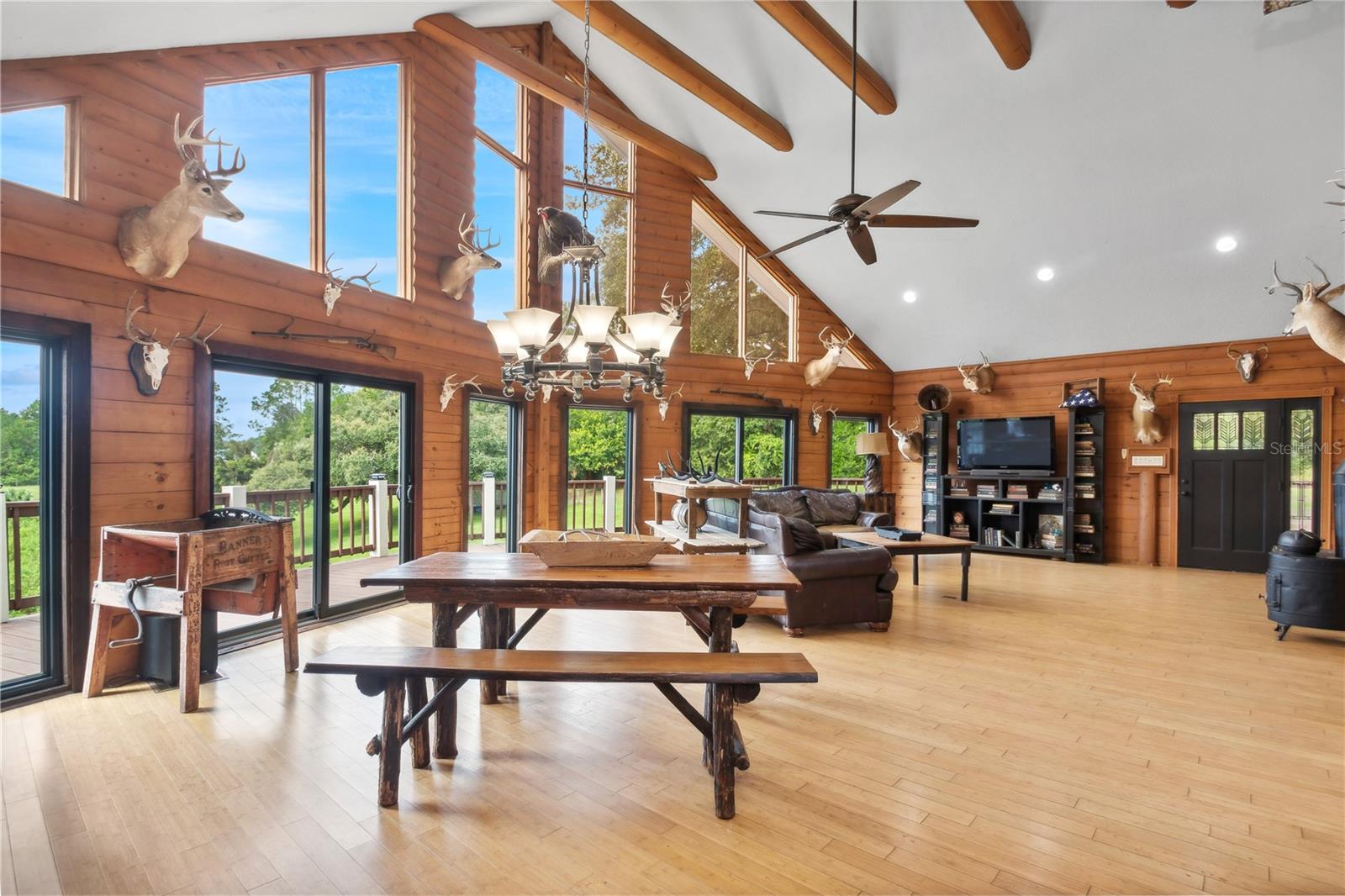Perto da floresta Ocala para caçar, pescar e andar a cavalo incrível! A TRAIMILHA CHAVILHA DE TROBRAÇÃO DE 3 HISTÓRIOS CONSTRUÍDIOS CONSTRUÍDIOS COM DOCKS SITALIZADOS AMENTOS DE 3 ACRES com vista cênica à beira -mar. Lindamente feito com todas as comodidades! 4800 pés quadrados aquecidos com 4 quartos, 3 banheiros completos. Múltipla sistema de aquecimento e refrigeração com 2 unidades. O piso é uma mistura de ladrilhos de cerâmica e linda madeira de bambu. Janelas térmicas de Anderson e iluminação embutida em todos os lugares. O piso principal tem 2 quartos, banho com lavanderia, sala grande e ilha construída personalizada. O acesso ao embrulho em torno do deck é acessível através de novas portas deslizantes personalizadas da grande sala. A cozinha está equipada com armários de madeira com gavetas de fechamento próprio, fogão a gás, fornos elétricos duplos, sob a iluminação do balcão e muito mais. A suíte master de 700 pés quadrados com loft fica no 3º andar, com vista para o deslumbrante piso principal e tem um banheiro com um grande chuveiro, banheira de hidromassagem, duas pias e clarabóia. O porão de Walk Out tem uma ótima sala, cozinha compacta, banheiro completo e quarto grande. Deixe sua imaginação correr solta com os 2 enormes quartos de bônus lá embaixo! Pode ser uma suíte de sogro, renda de aluguel, alojamento de caça/pesca ou apenas espaço para suas atividades familiares grandes!