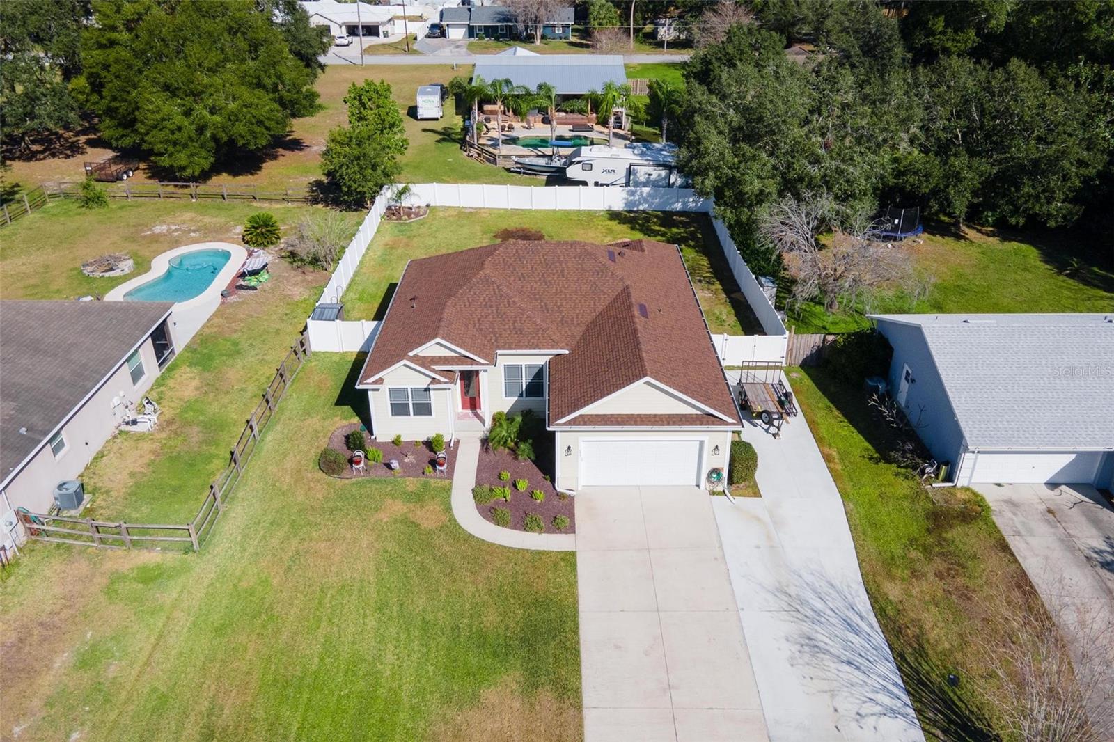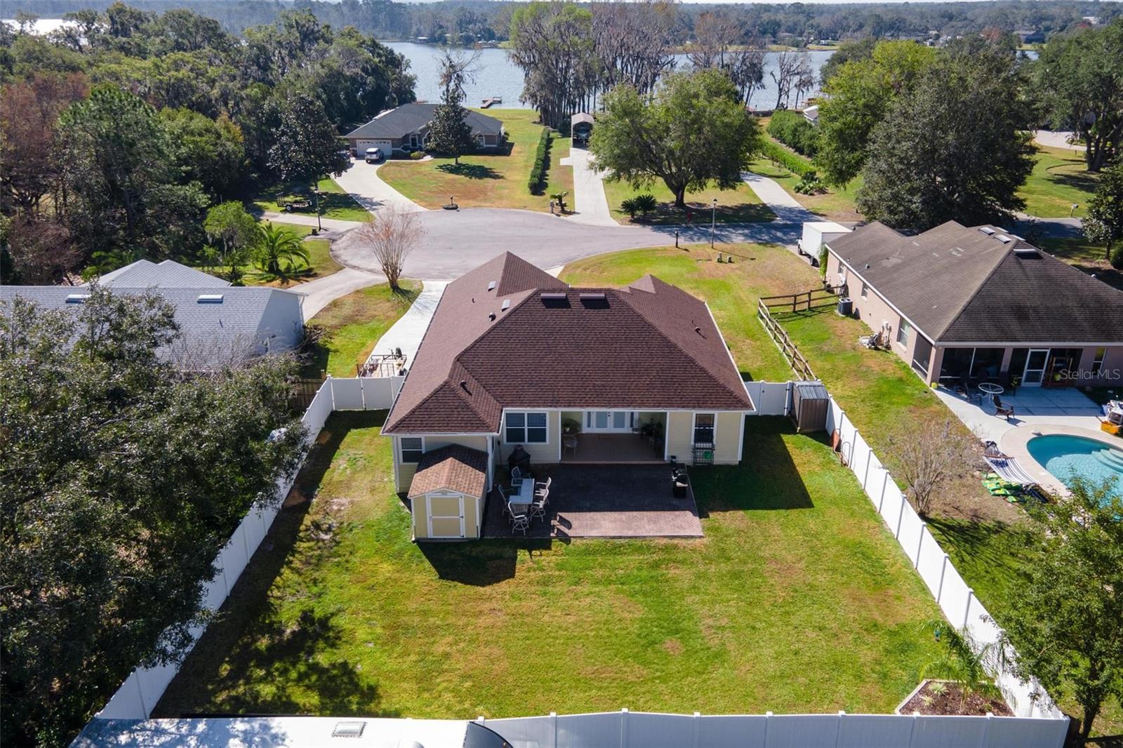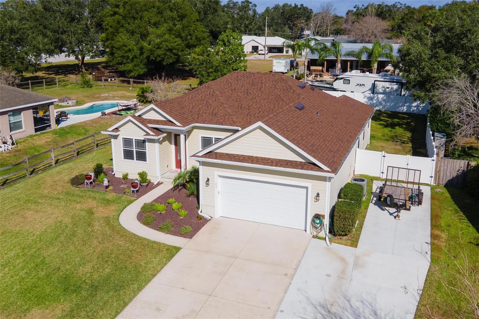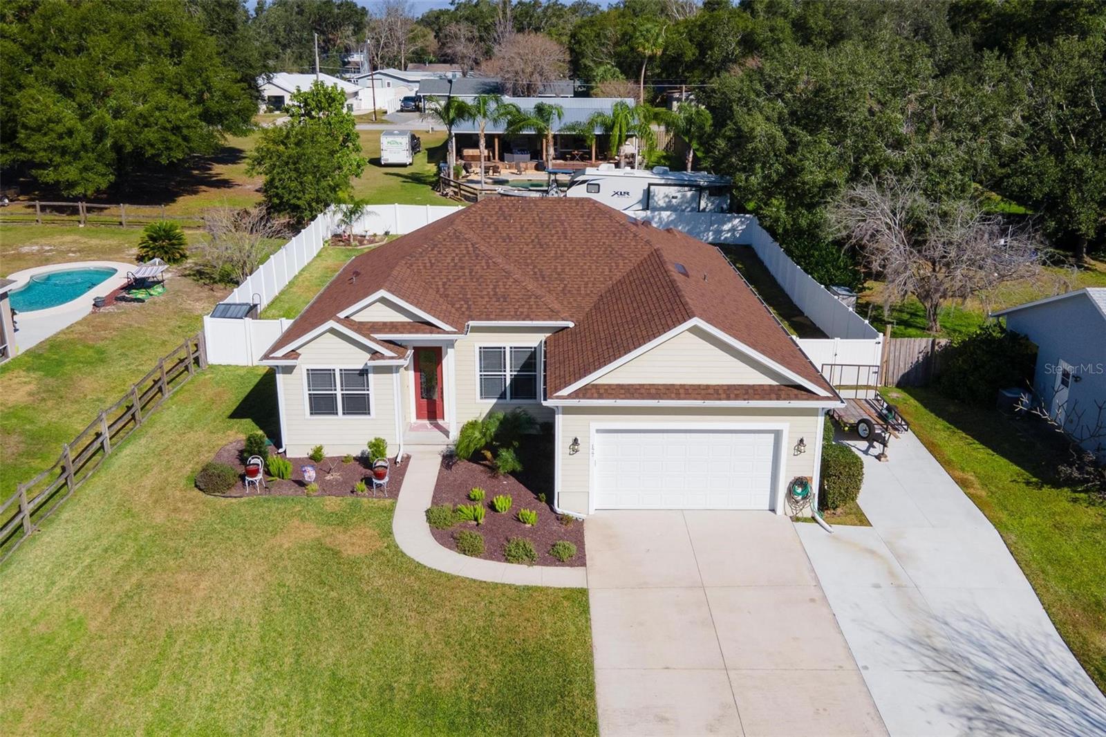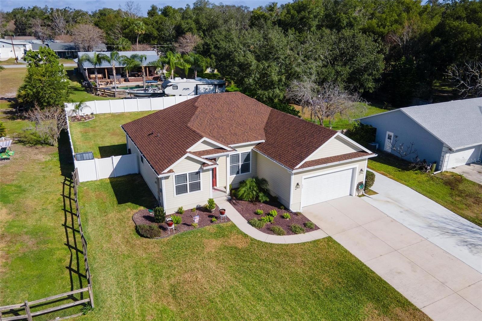 Faça esta bela casa em um plano dividido em um bairro procurado e procurado e bem hoje! Sem HOA, uma vista adorável do lago Umatilla e um quintal lindamente paisagístico, esta casa oferece estilo e conforto. O interior espaçoso possui tetos altos com elegantes molduras de coroa dupla e tetos de bandeja em toda a planta piso de conceito aberto. O teto do Cypress Patio e a iluminação atualizada adicionam um toque extra de sofisticação. As portas francesas personalizadas levam da sala a um pátio coberto estendido, que foi pavimentado para um charme adicional. A cozinha possui armários de madeira personalizados e aparelhos mais novos, enquanto o recanto do café da manhã inclui assentos embutidos com mesa e armazenamento. O recém-cercado quintal com cercado em vinil oferece amplo espaço para relaxantes e divertidos. As atualizações recentes incluem um novo aquecedor de água quente, um novo sistema HVAC e um novo telhado (instalado em agosto de 2023). Recursos adicionais incluem dois novos galpões, concreto extra derramado em 2024 para acomodar o estacionamento para um barco ou RV e câmeras de segurança para tranquilidade. Esta casa está convenientemente localizada perto de escolas, compras, restaurantes e a floresta nacional Ocala