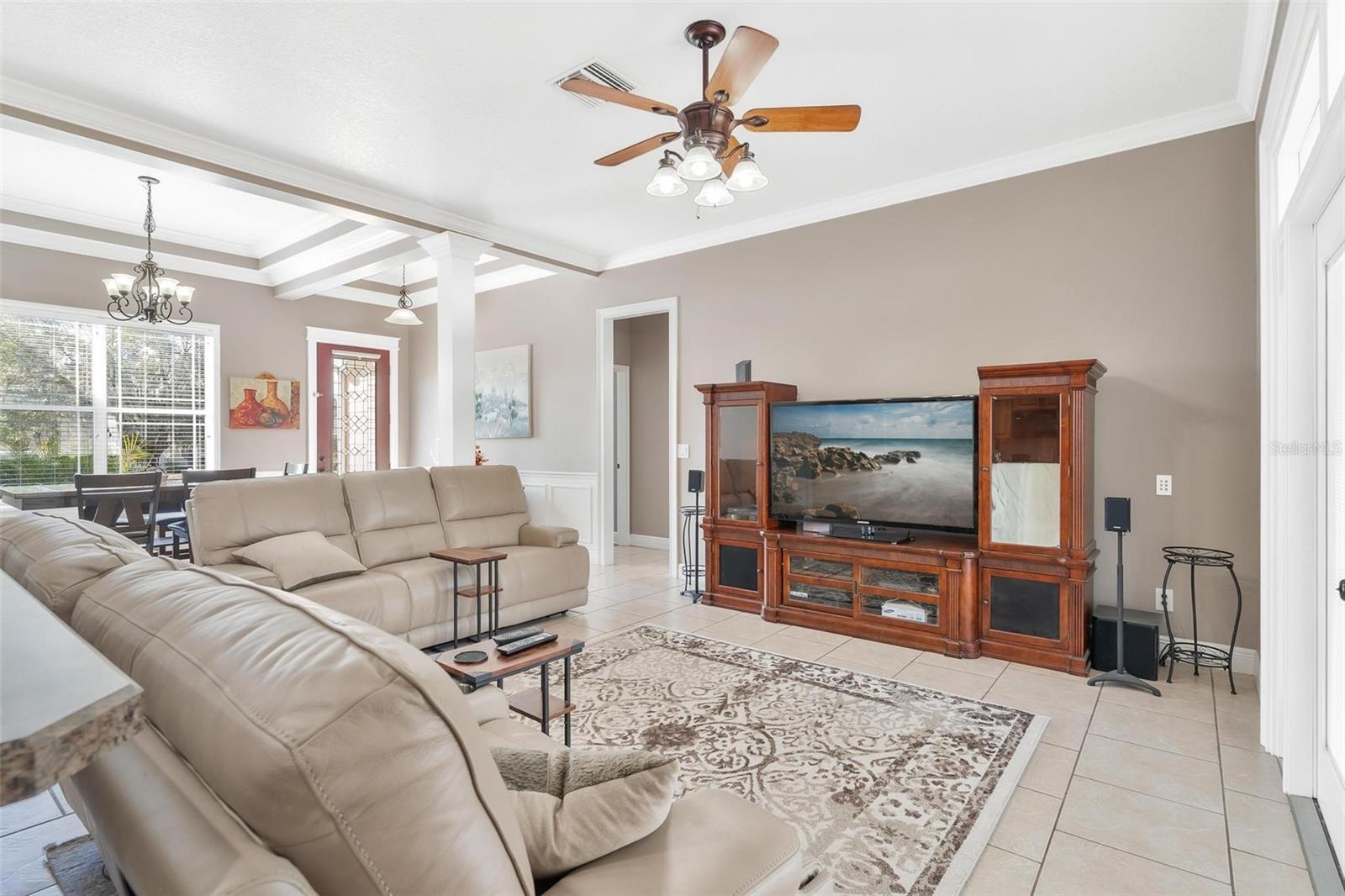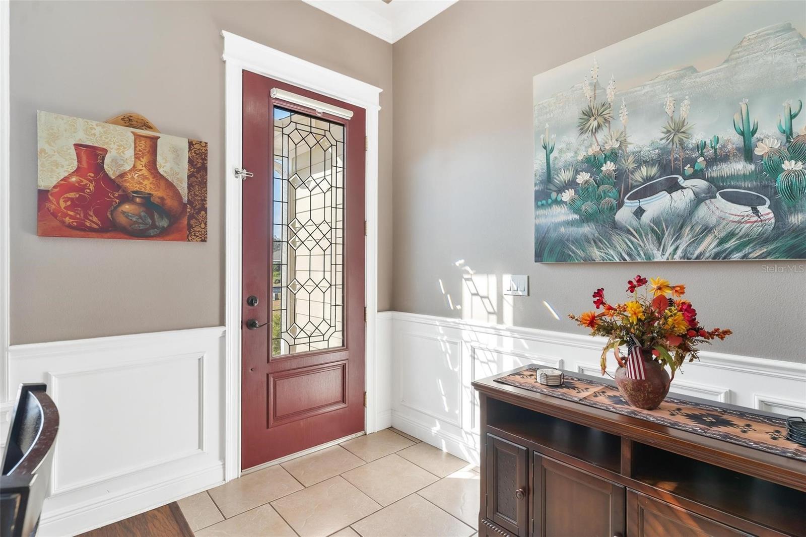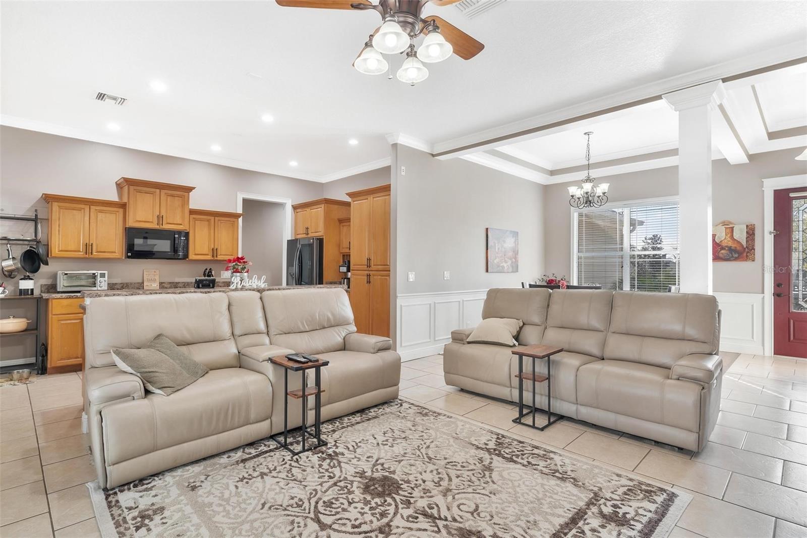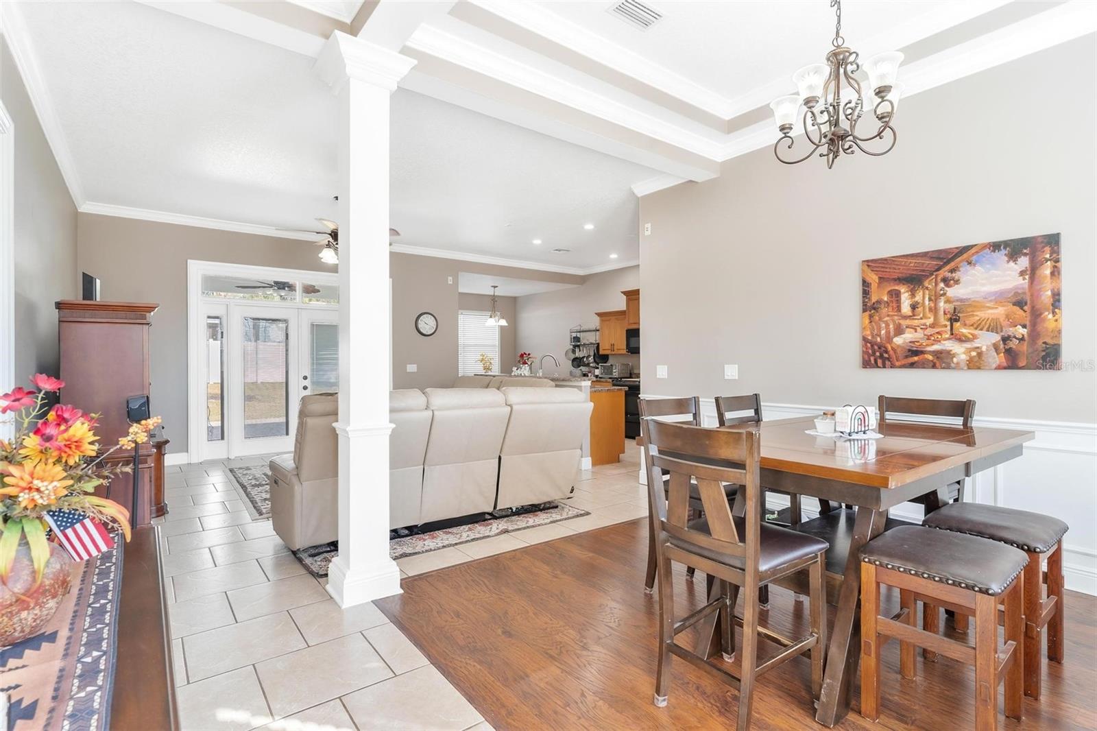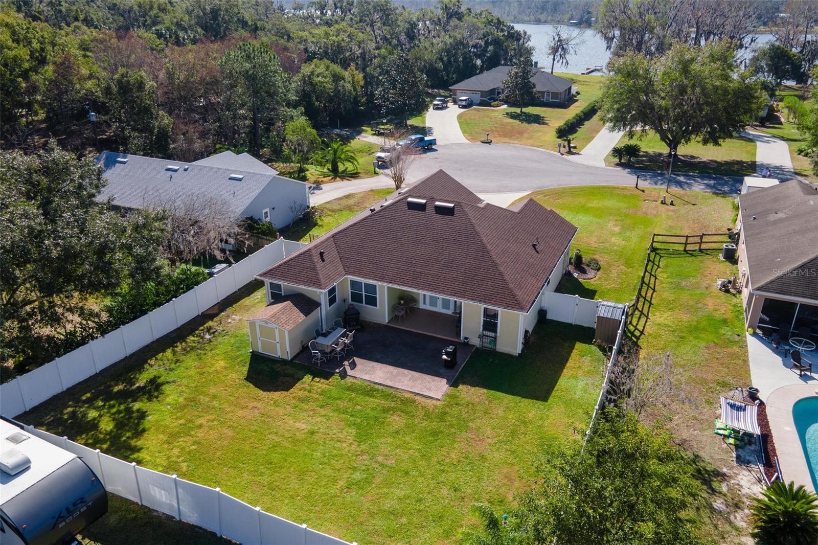 Faça esta bela casa em um plano dividido em um bairro procurado e procurado e bem hoje! Sem HOA, uma vista adorável do lago Umatilla e um quintal lindamente paisagístico, esta casa oferece estilo e conforto. O interior espaçoso possui tetos altos com elegantes molduras de coroa dupla e tetos de bandeja em toda a planta piso de conceito aberto. O teto do Cypress Patio e a iluminação atualizada adicionam um toque extra de sofisticação. As portas francesas personalizadas levam da sala a um pátio coberto estendido, que foi pavimentado para um charme adicional. A cozinha possui armários de madeira personalizados e aparelhos mais novos, enquanto o recanto do café da manhã inclui assentos embutidos com mesa e armazenamento. O recém-cercado quintal com cercado em vinil oferece amplo espaço para relaxantes e divertidos. As atualizações recentes incluem um novo aquecedor de água quente, um novo sistema HVAC e um novo telhado (instalado em agosto de 2023). Recursos adicionais incluem dois novos galpões, concreto extra derramado em 2024 para acomodar o estacionamento para um barco ou RV e câmeras de segurança para tranquilidade. Esta casa está convenientemente localizada perto de escolas, compras, restaurantes e a floresta nacional Ocala